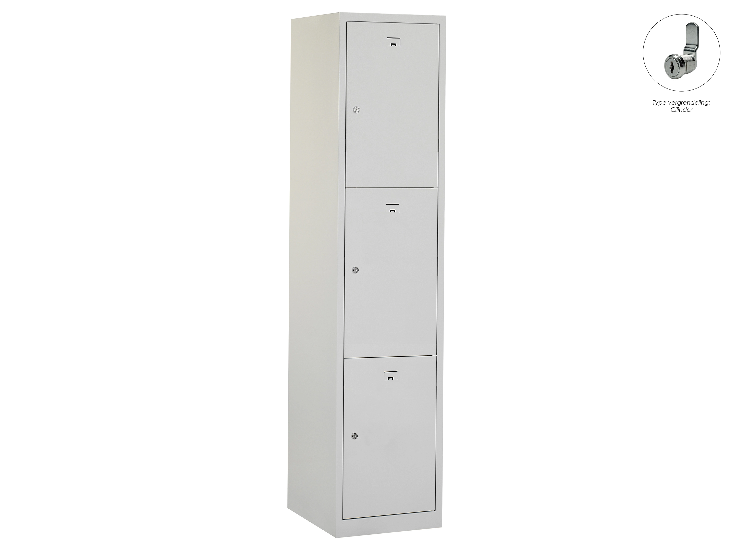 Locker NH - 1 kolom, 3 deuren, 180x30x50 cm, grijs/grijs, cilinder