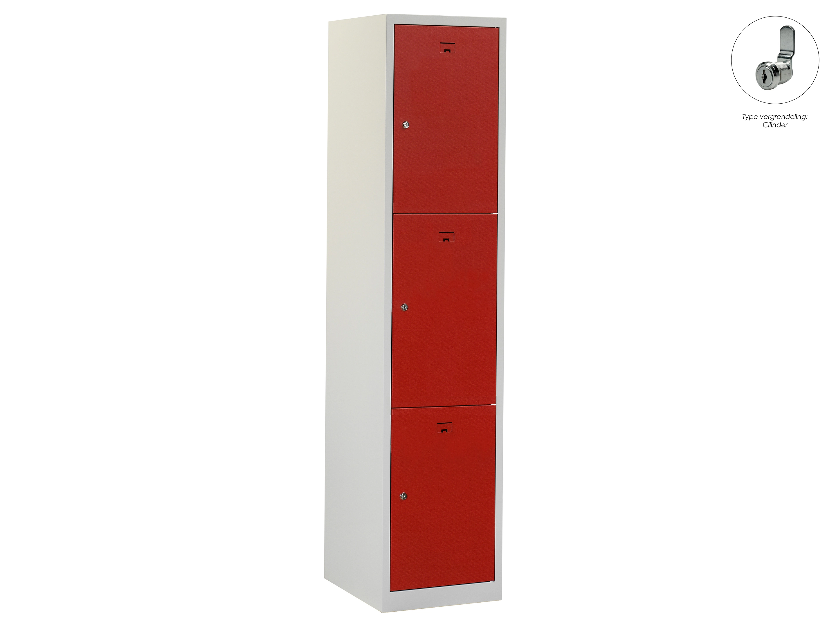 Locker NH - 1 kolom, 3 deuren, 180x30x50 cm, grijs/rood, cilinder