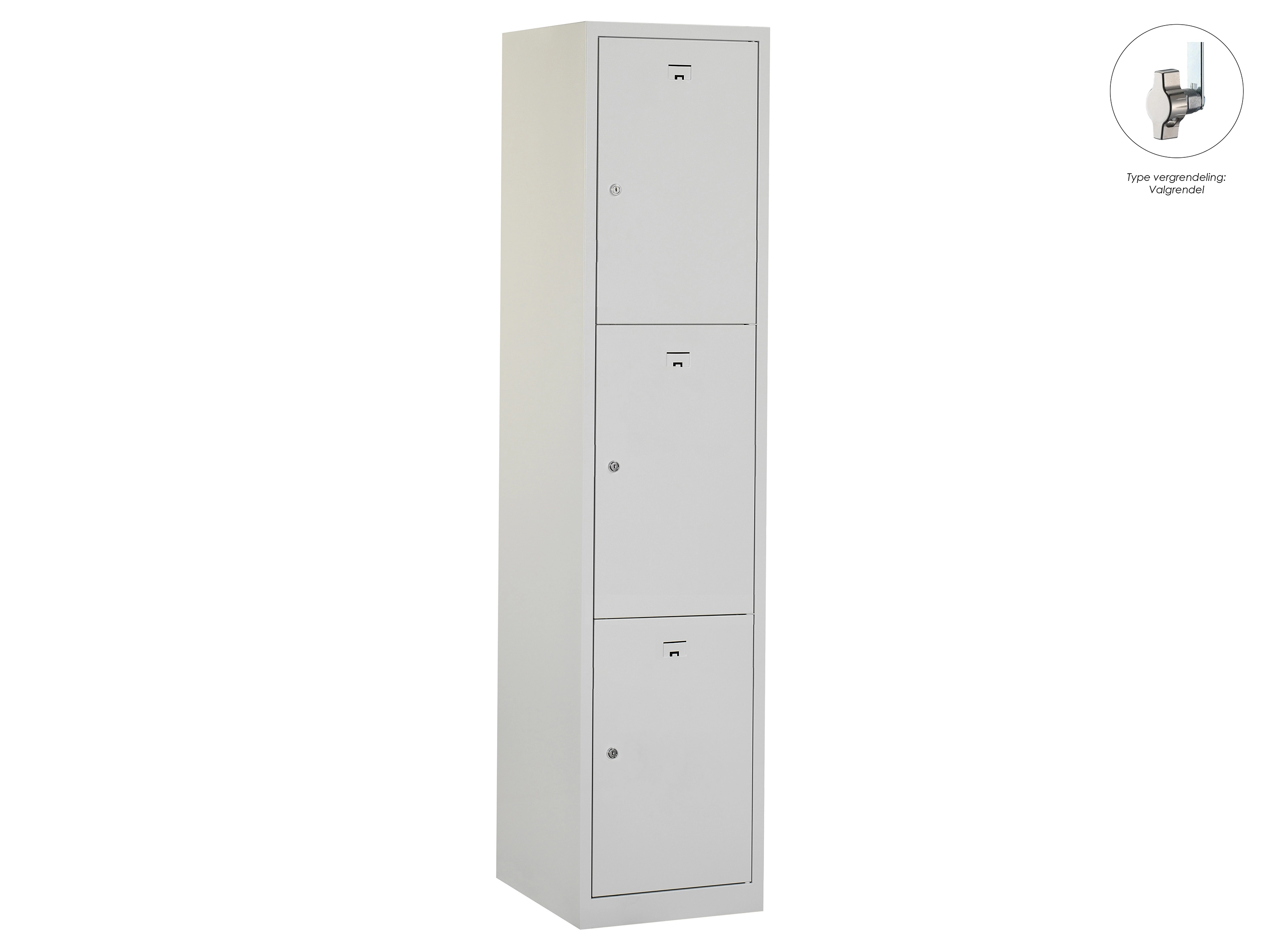 Locker NH - 1 kolom, 3 deuren, 180x30x50 cm, grijs/grijs, valgrendel