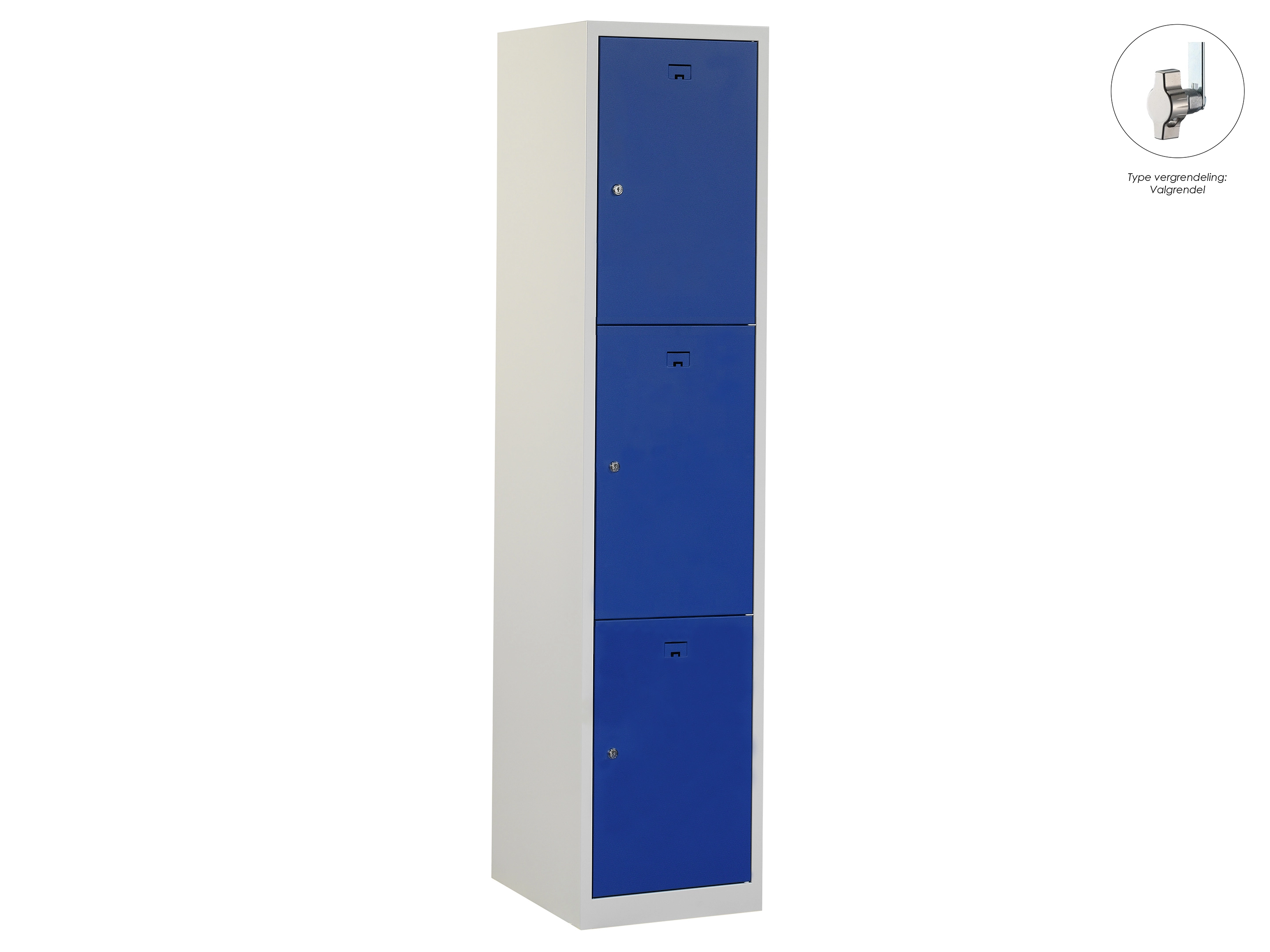 Locker NH - 1 kolom, 3 deuren, 180x40x50 cm, grijs/blauw, valgrendel