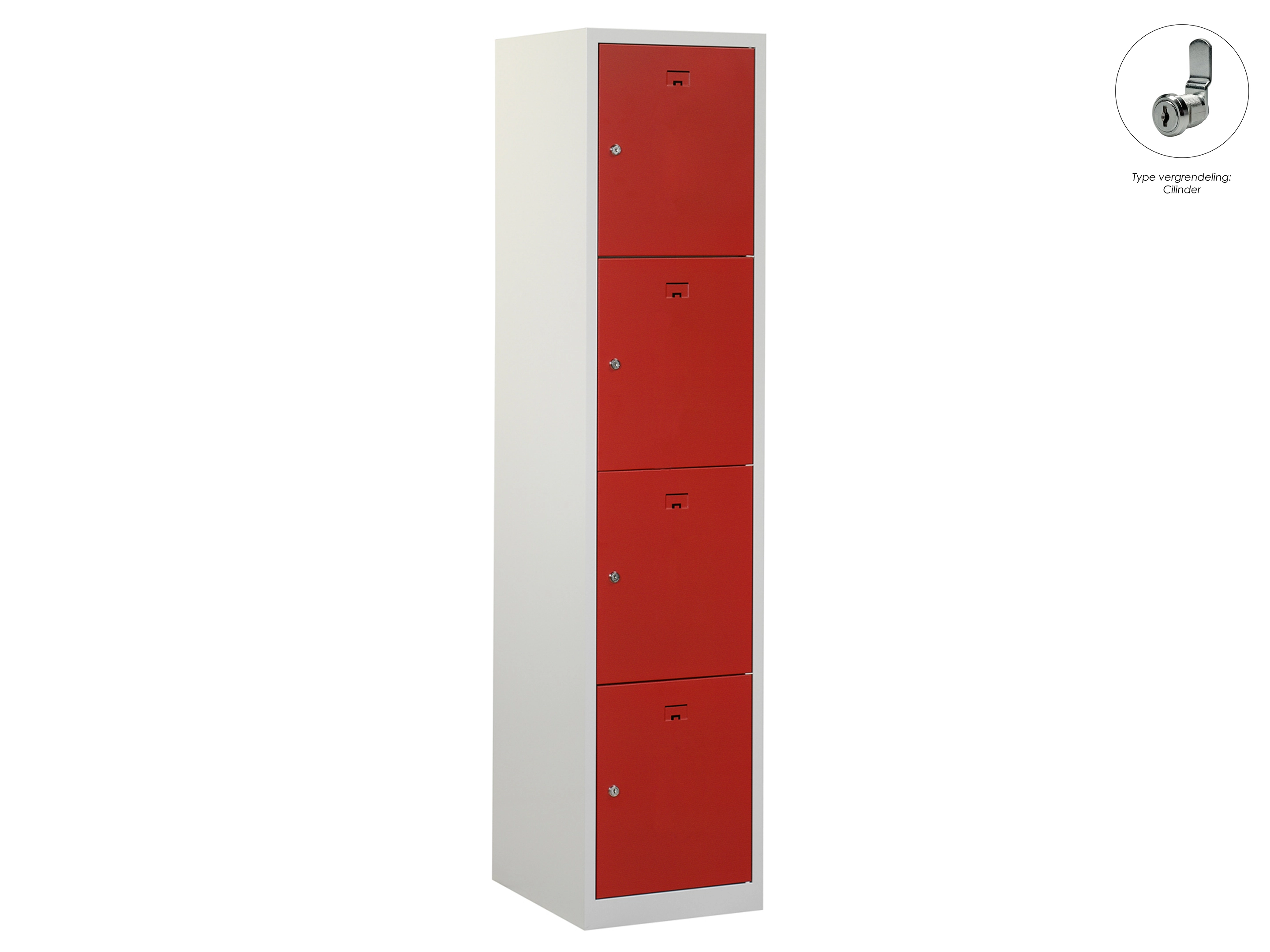 Locker NH - 1 kolom, 4 deuren, 180x30x50 cm, grijs/rood, cilinder