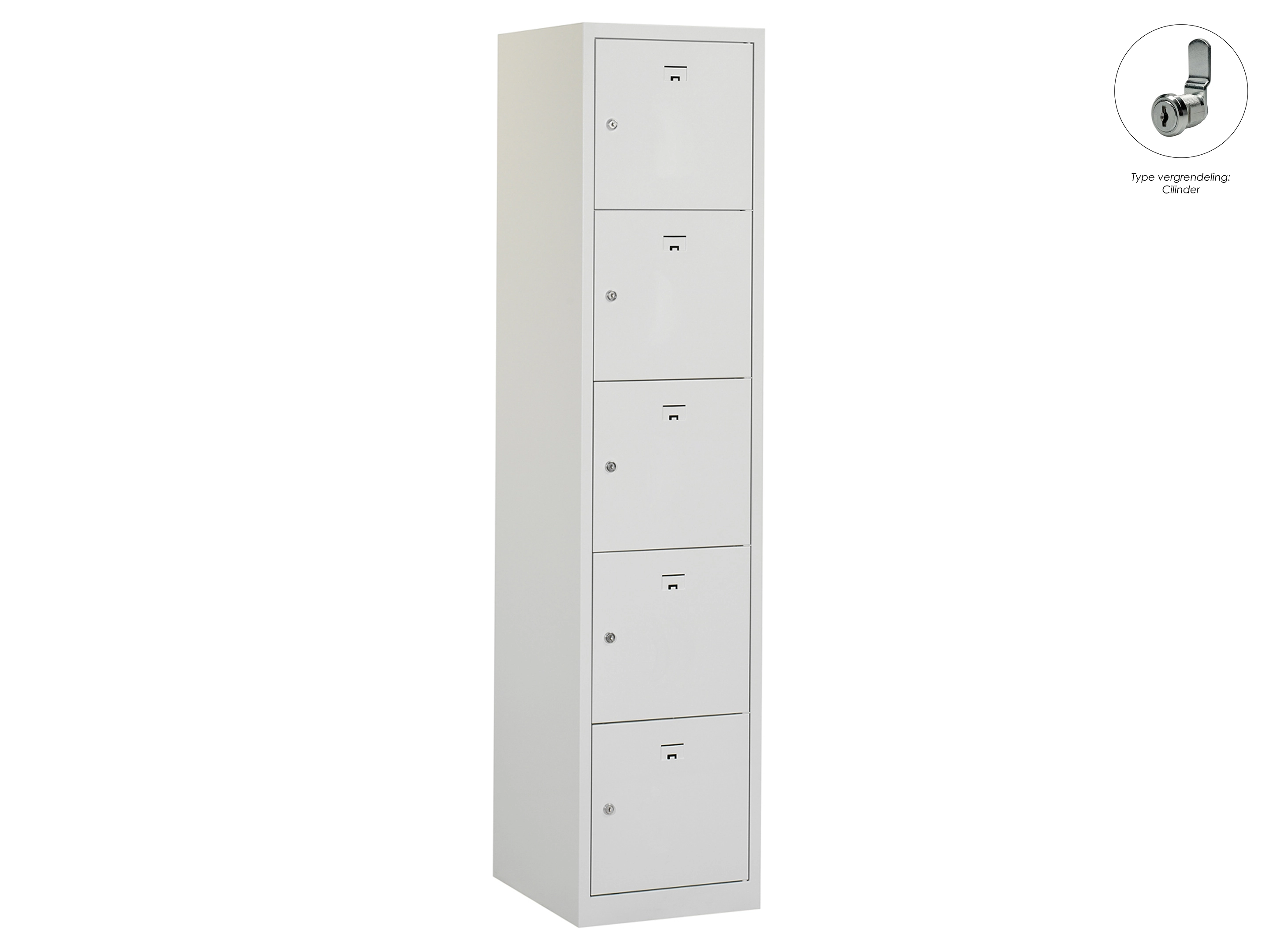 Locker NH - 1 kolom, 5 deuren, 180x30x50 cm, grijs/grijs, cilinder