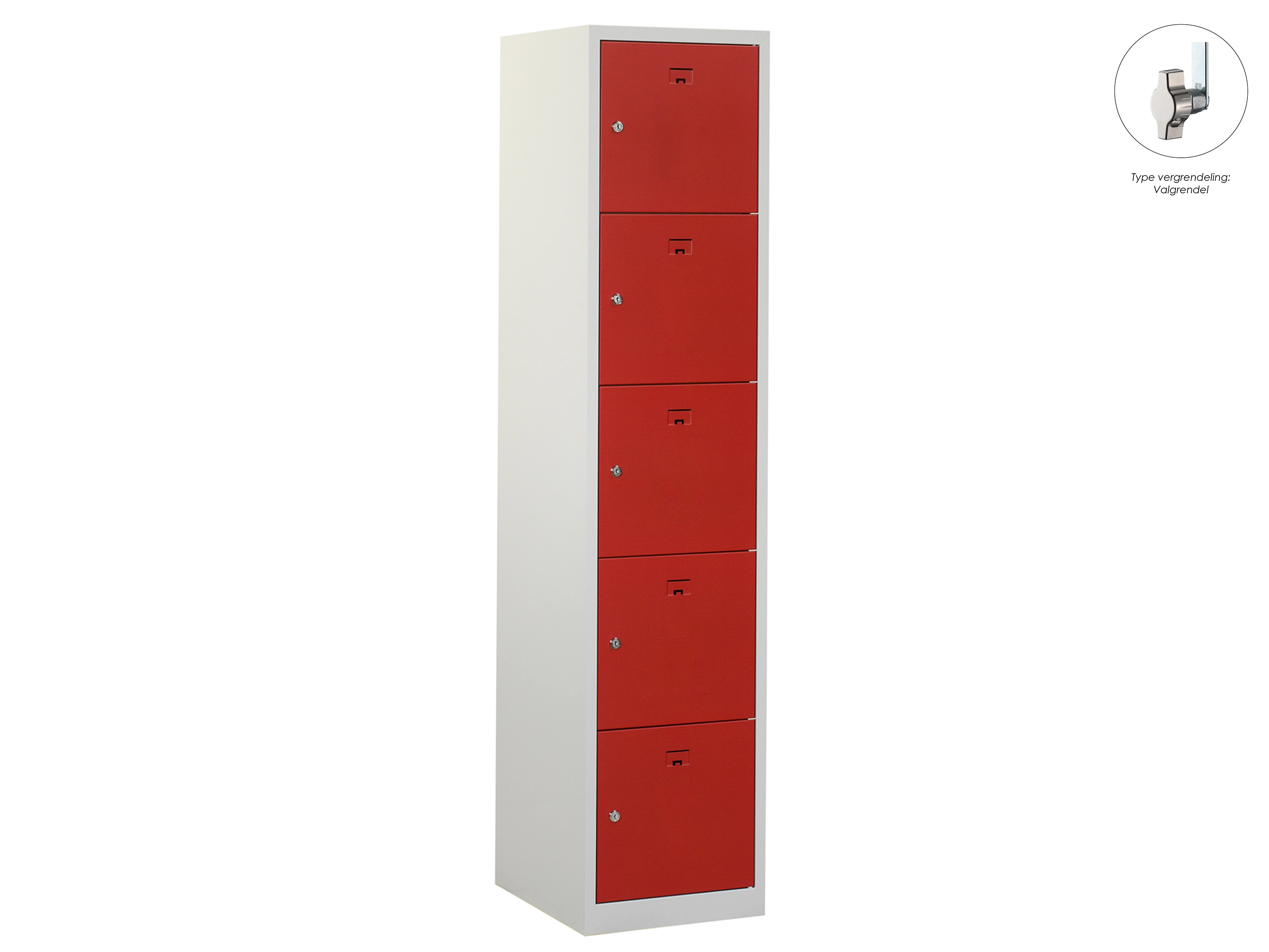 Locker NH - 1 kolom, 5 deuren, 180x30x50 cm, grijs/rood, valgrendel