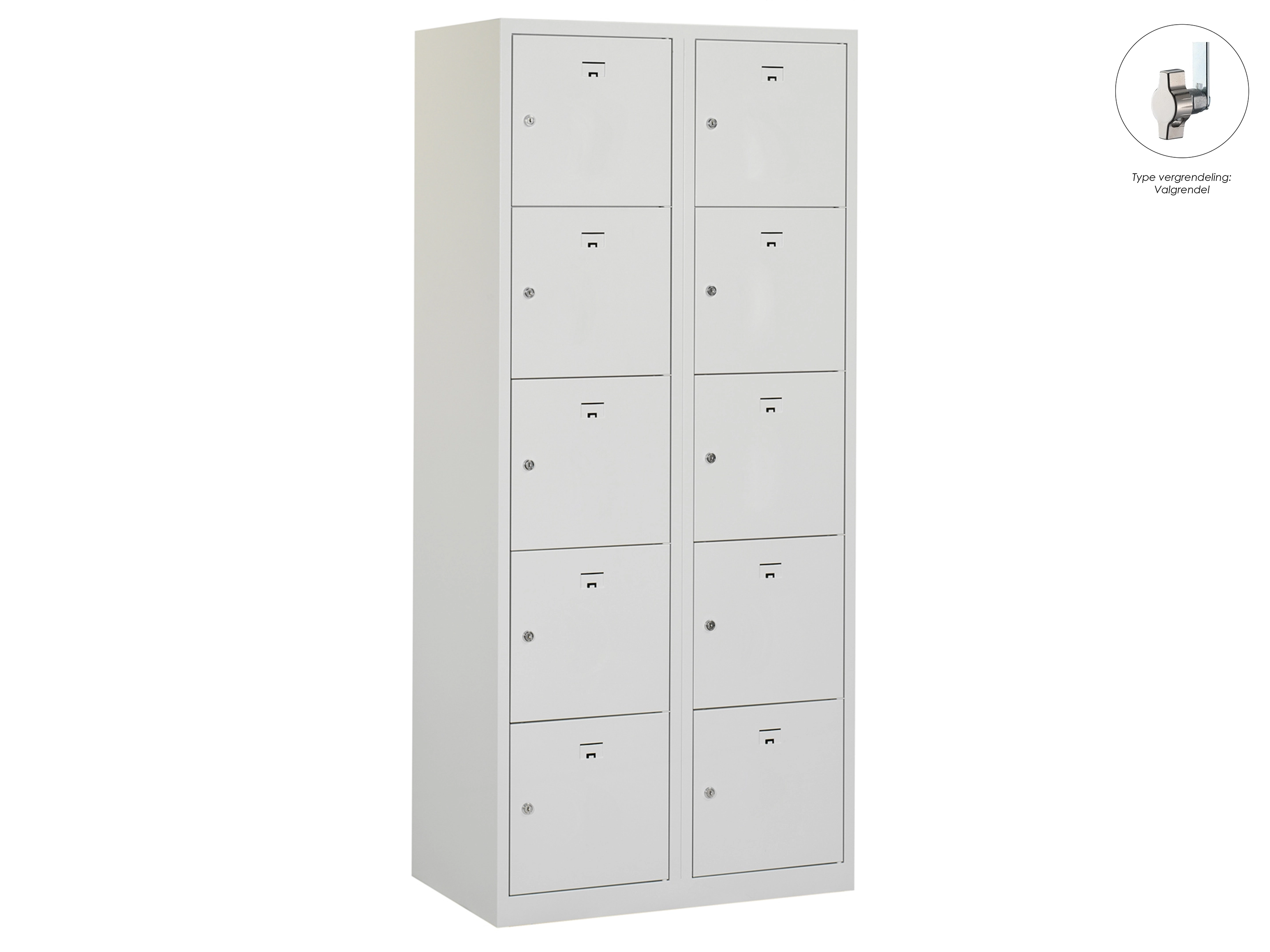 Locker NH - 2 kolomen, 10 deuren, 180x80x50 cm, grijs/grijs, valgrendel