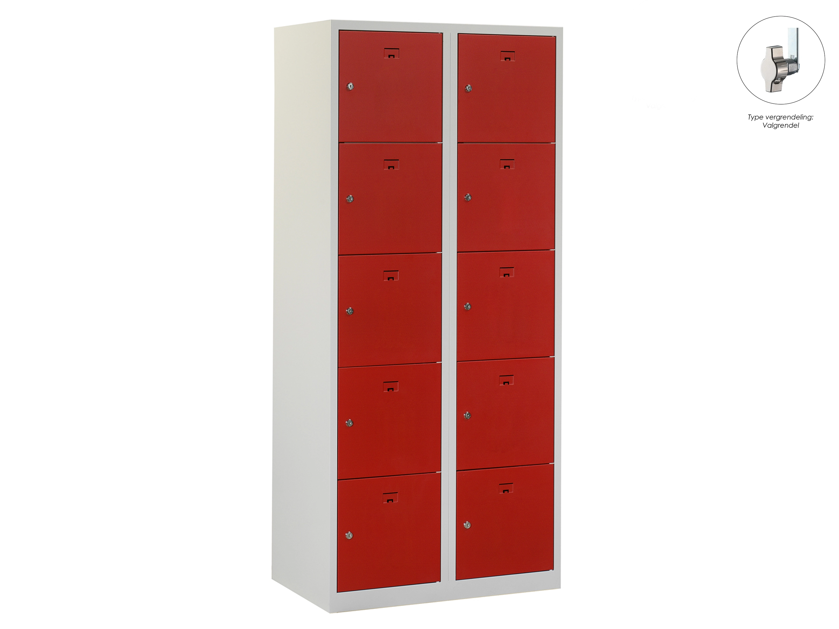 Locker NH - 2 kolomen, 10 deuren, 180x80x50 cm, grijs/rood, valgrendel