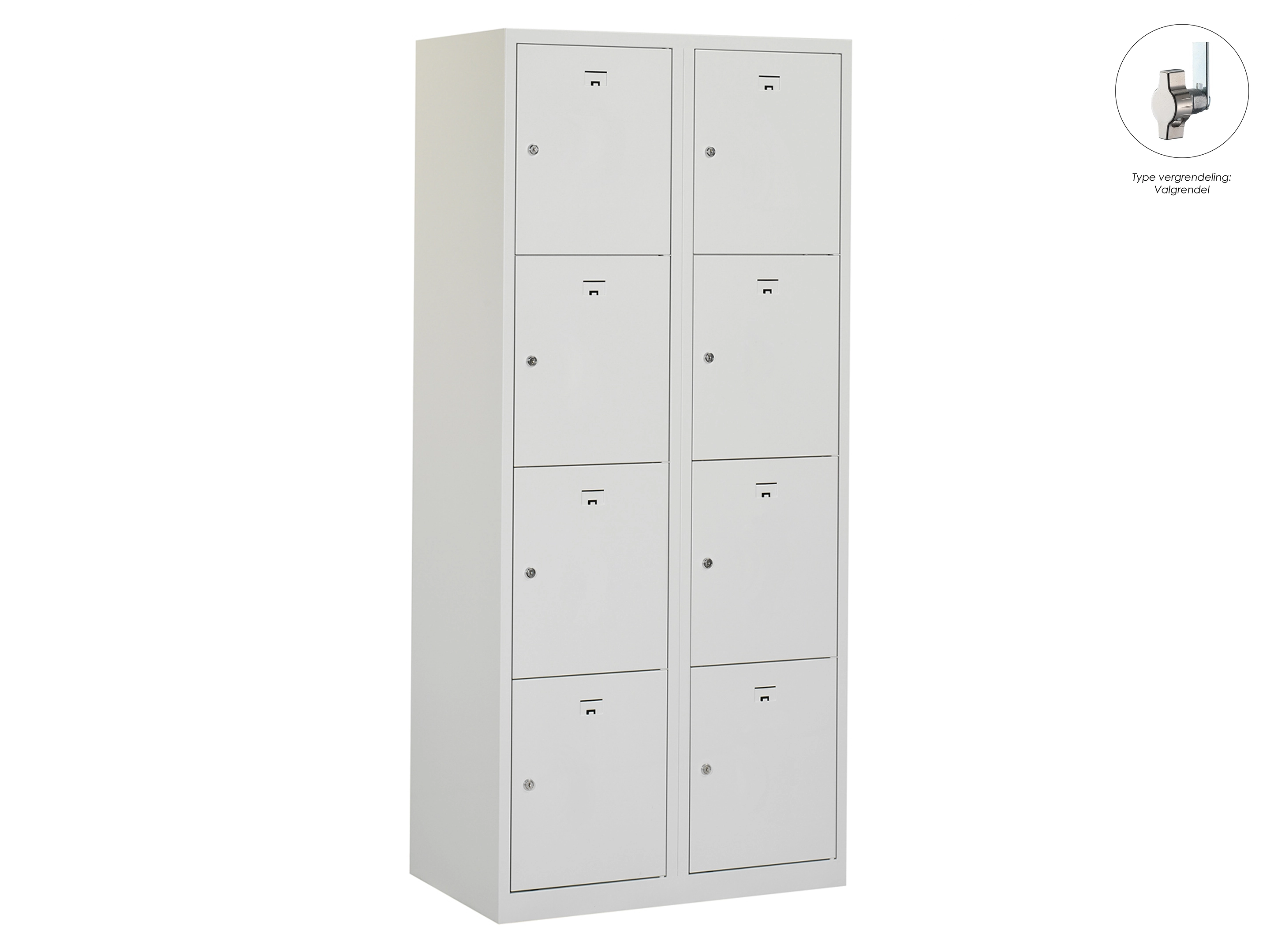 Locker NH - 2 kolomen, 8 deuren, 180x80x50 cm, grijs/grijs, valgrendel