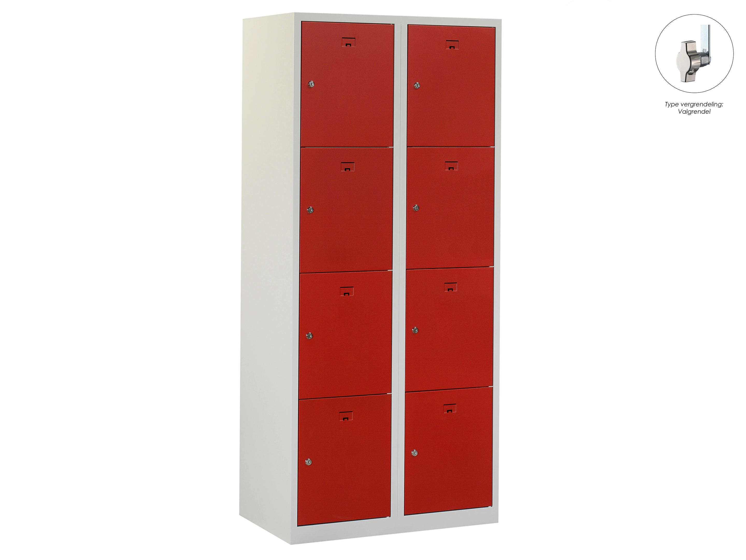 Locker NH - 2 kolomen, 8 deuren, 180x80x50 cm, grijs/rood, valgrendel