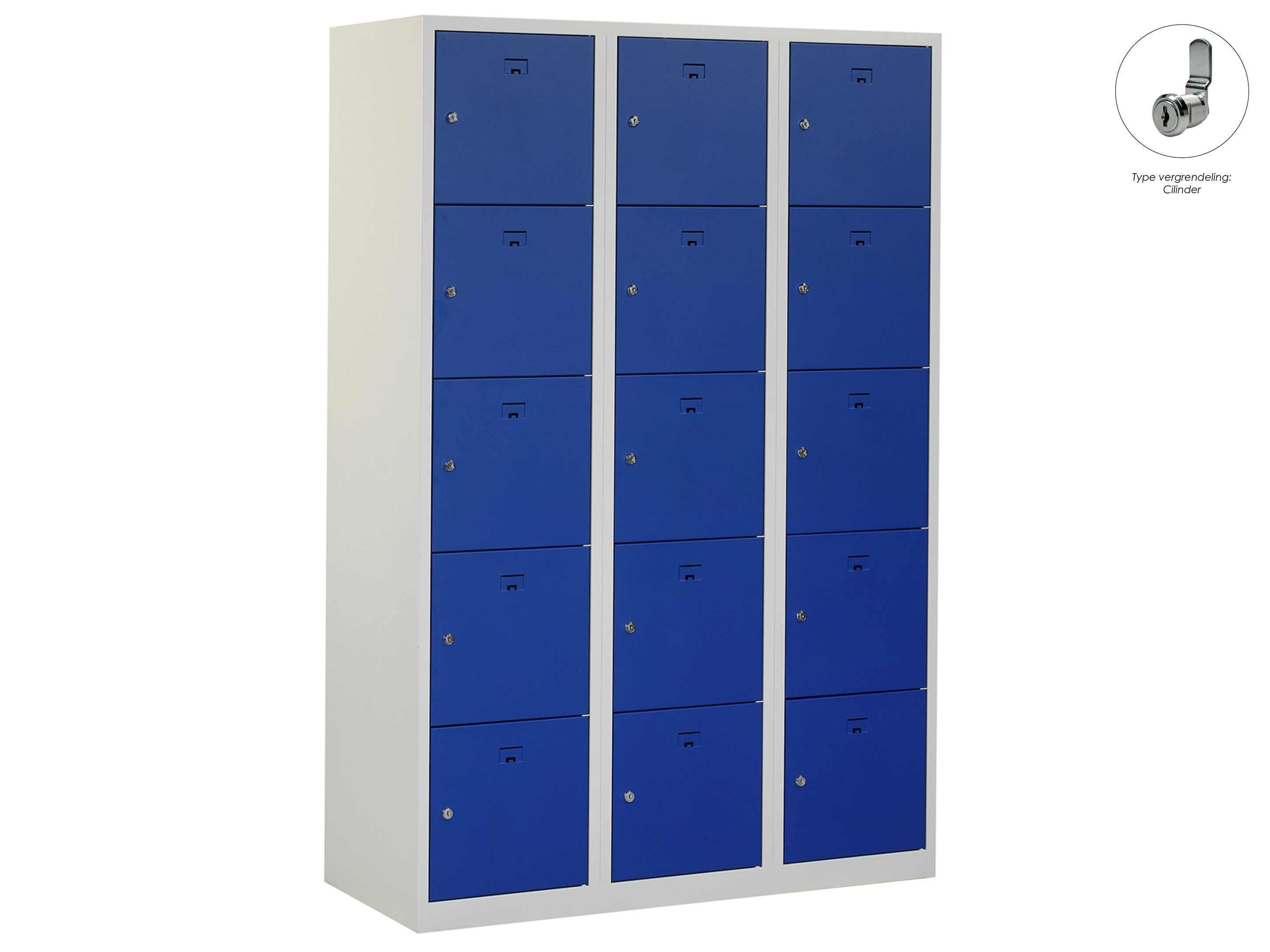 Locker NH - 3 kolomen, 15 deuren, 180x120x50 cm, grijs/blauw, cilinder