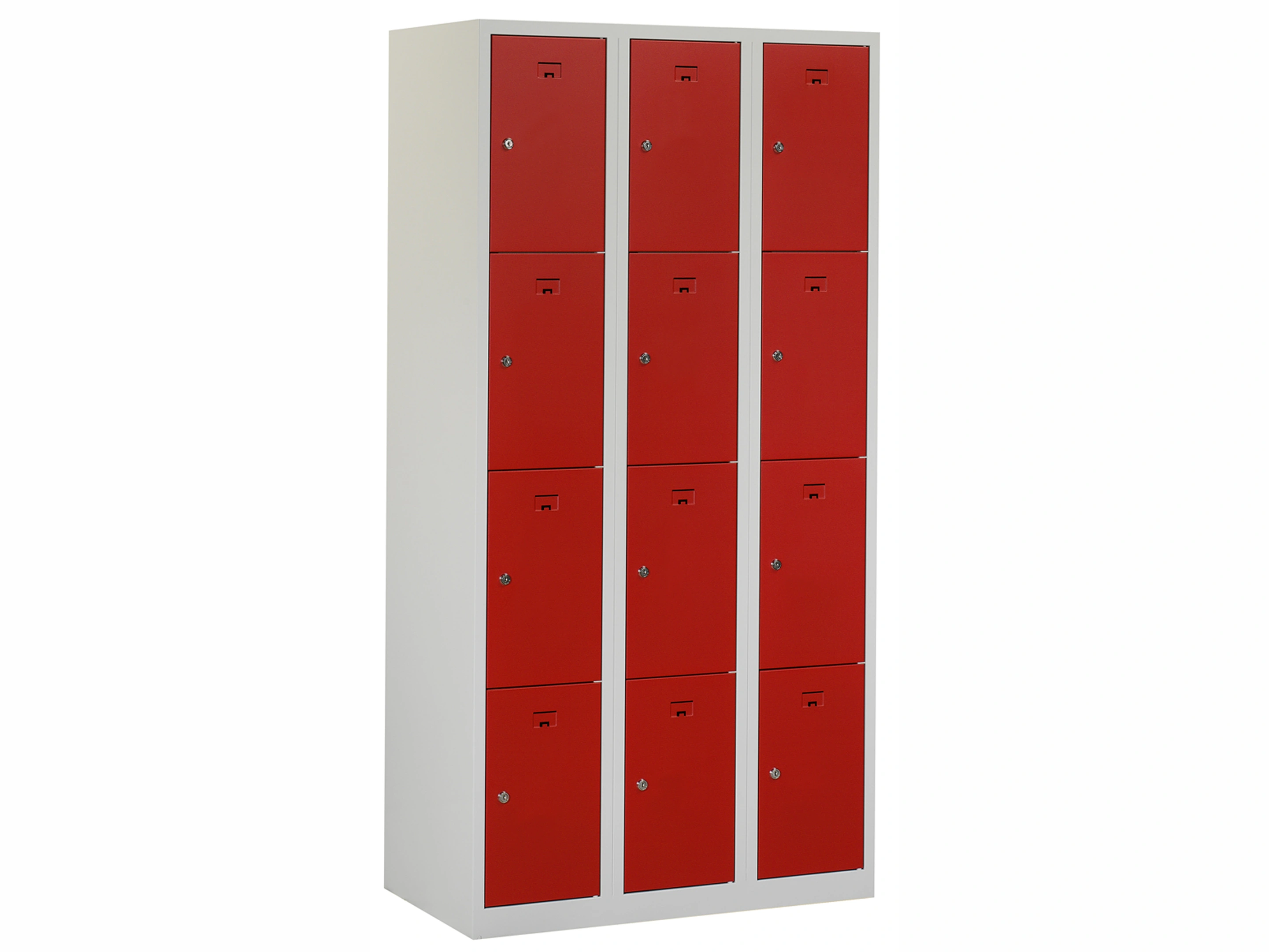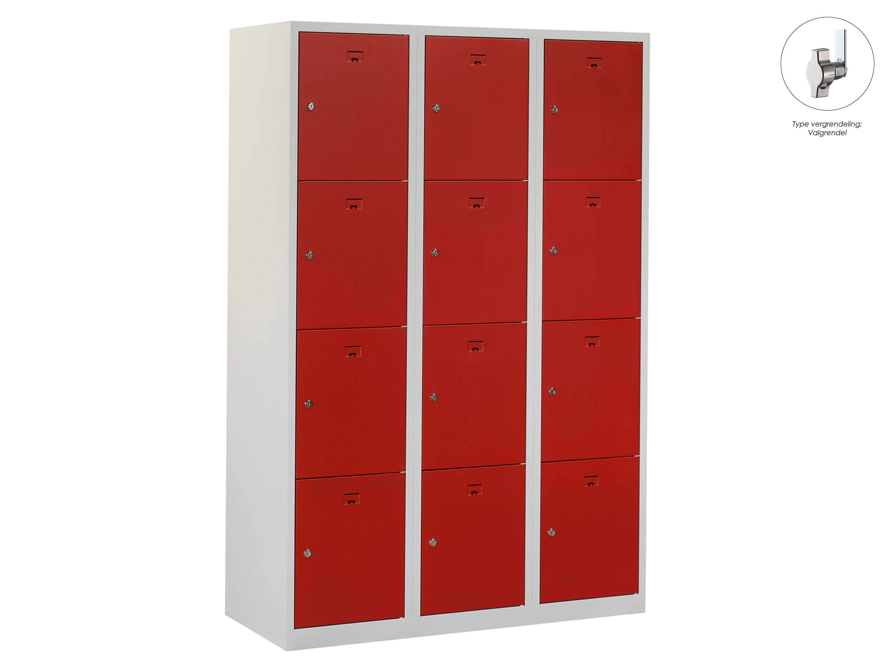 Locker PH - 3 kolomen, 12 deuren, 180x120x50 cm, grijs/rood, valgrendel