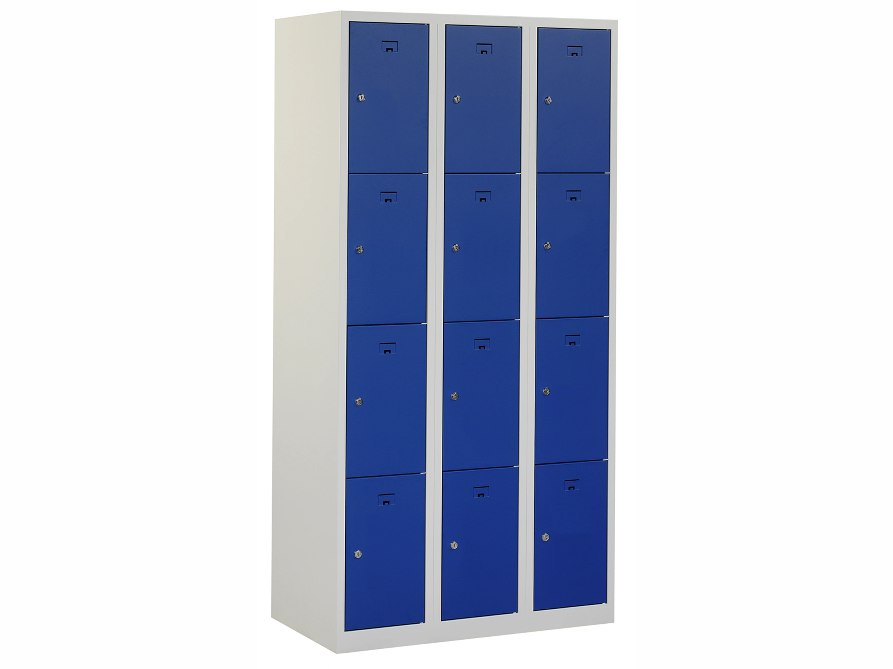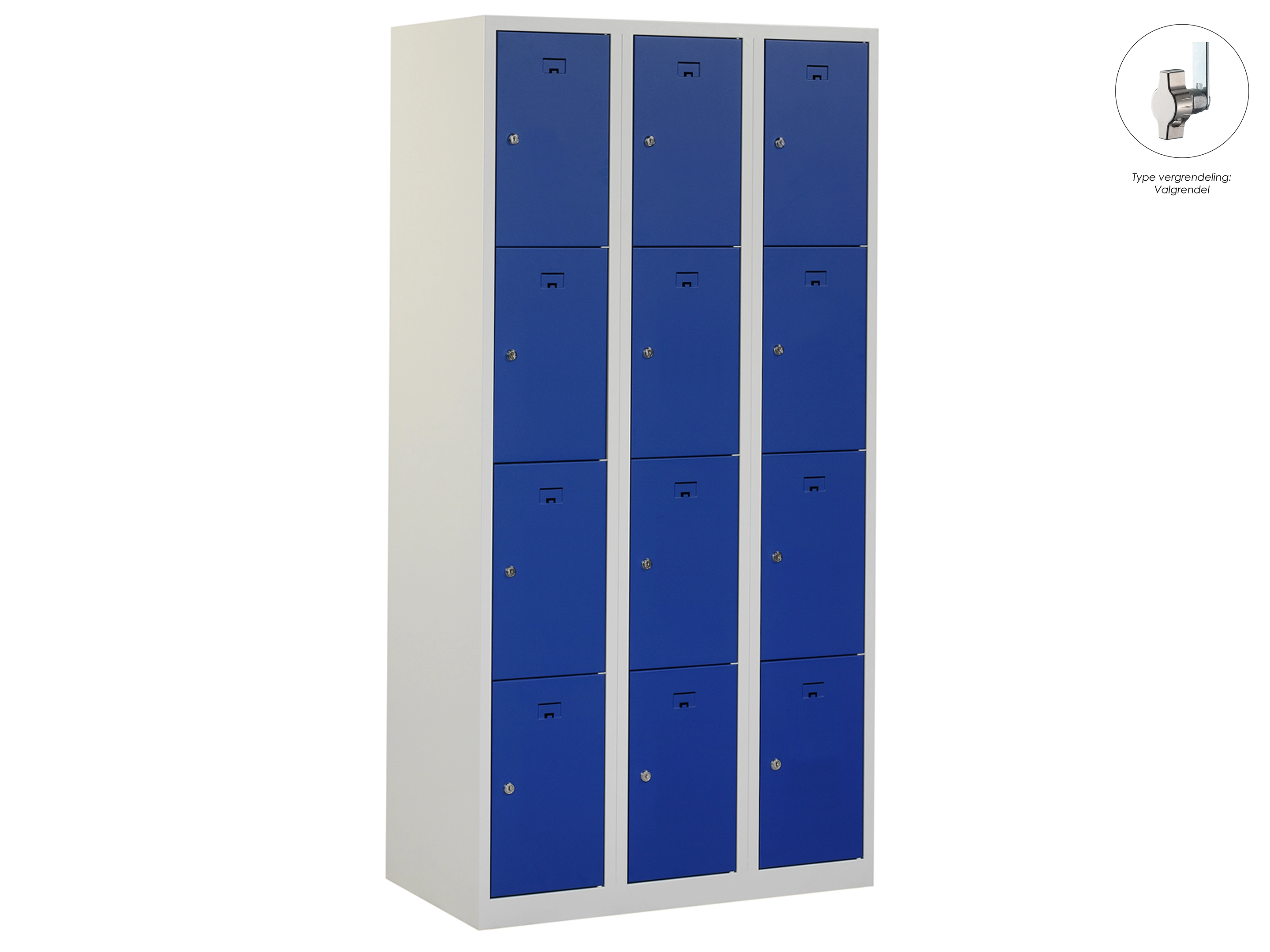 Locker PH - 3 kolomen, 12 deuren, 180x120x50 cm, grijs/blauw, valgrendel