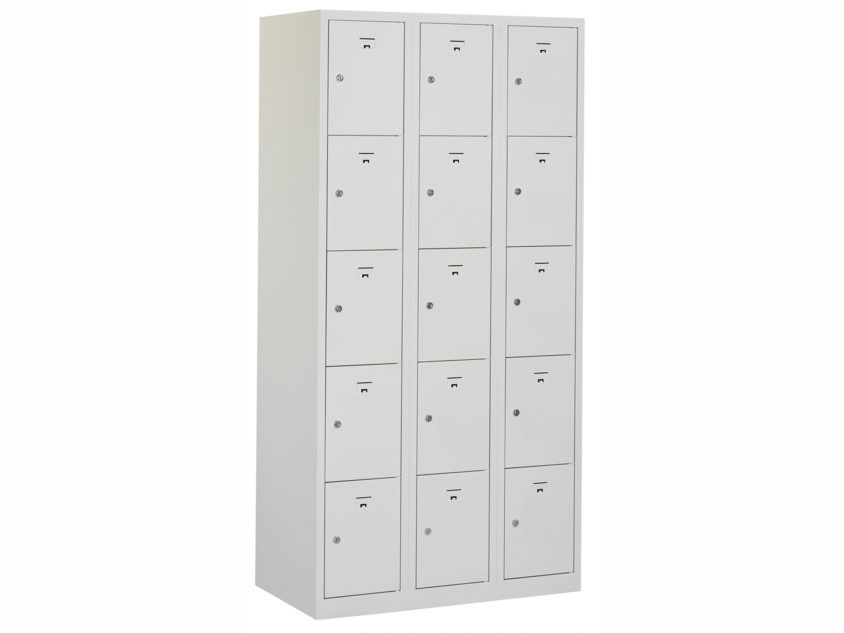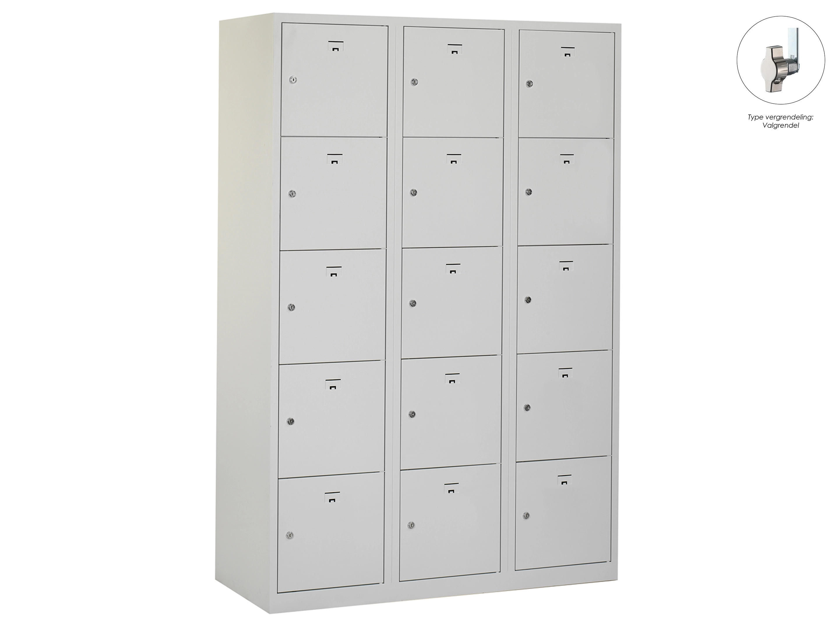 Locker PH - 3 kolomen, 15 deuren, 180x120x50 cm, grijs/grijs, valgrendel
