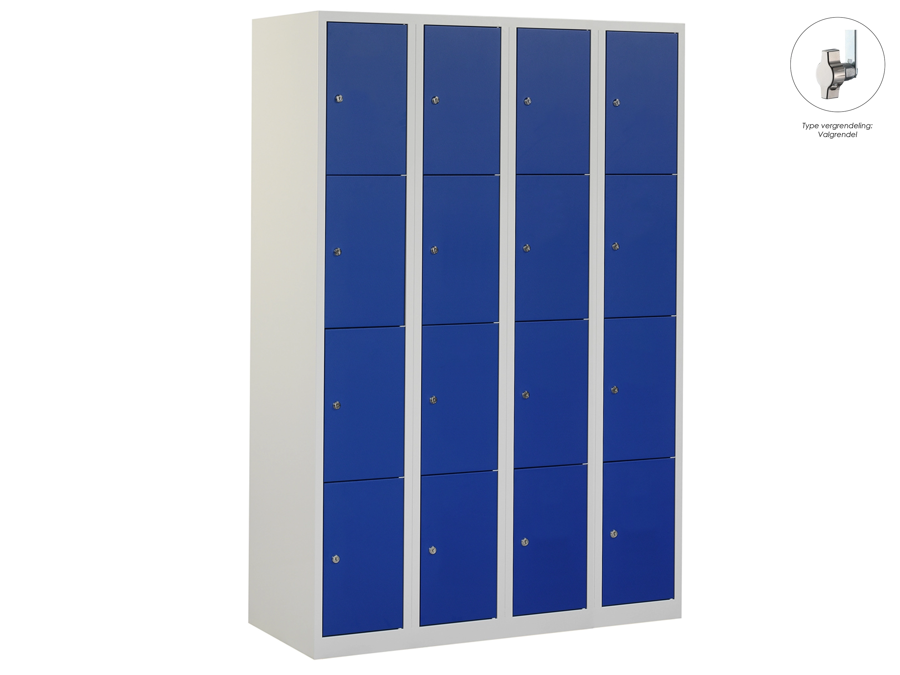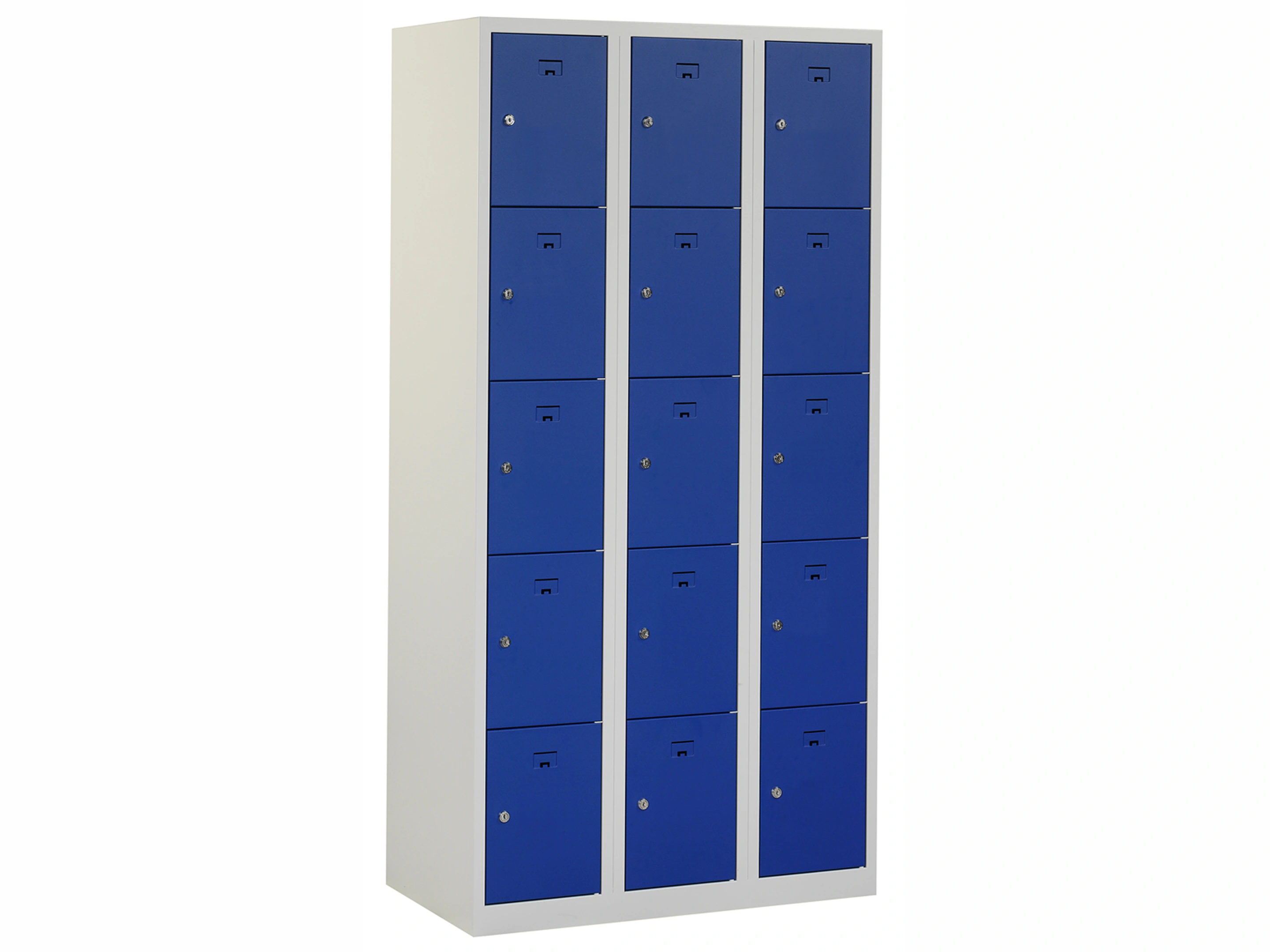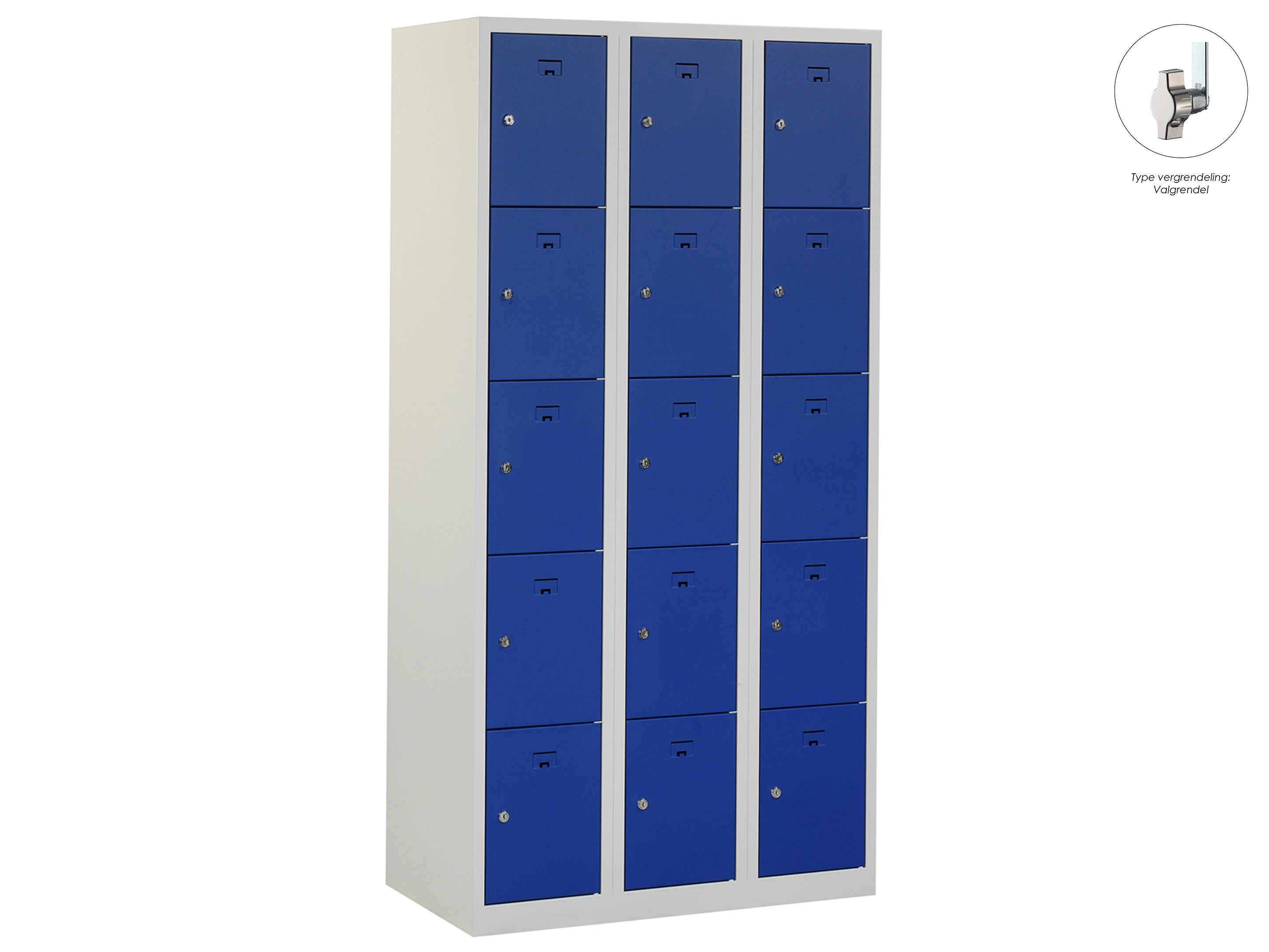 Locker PH - 3 kolomen, 15 deuren, 180x120x50 cm, grijs/blauw, valgrendel