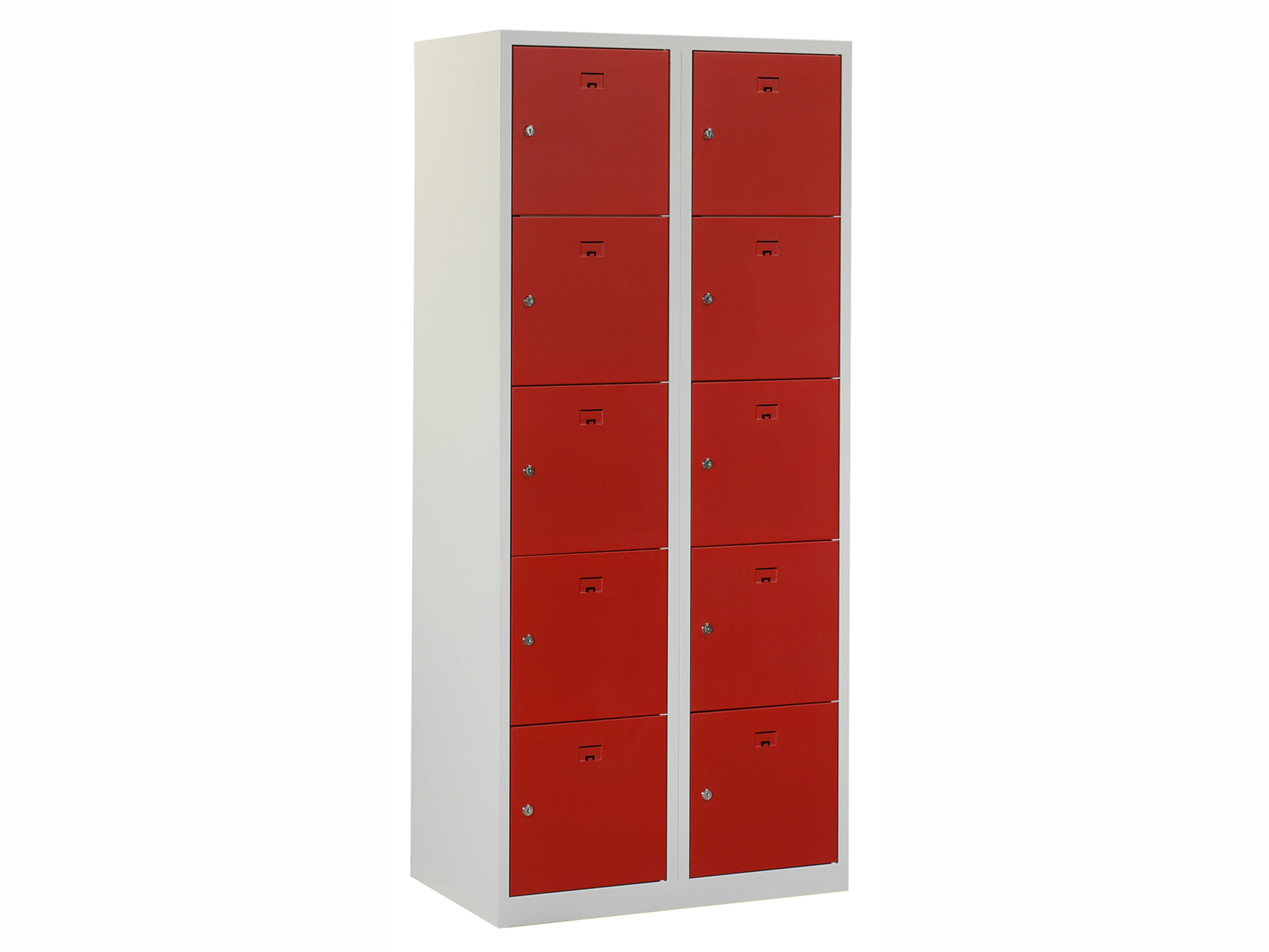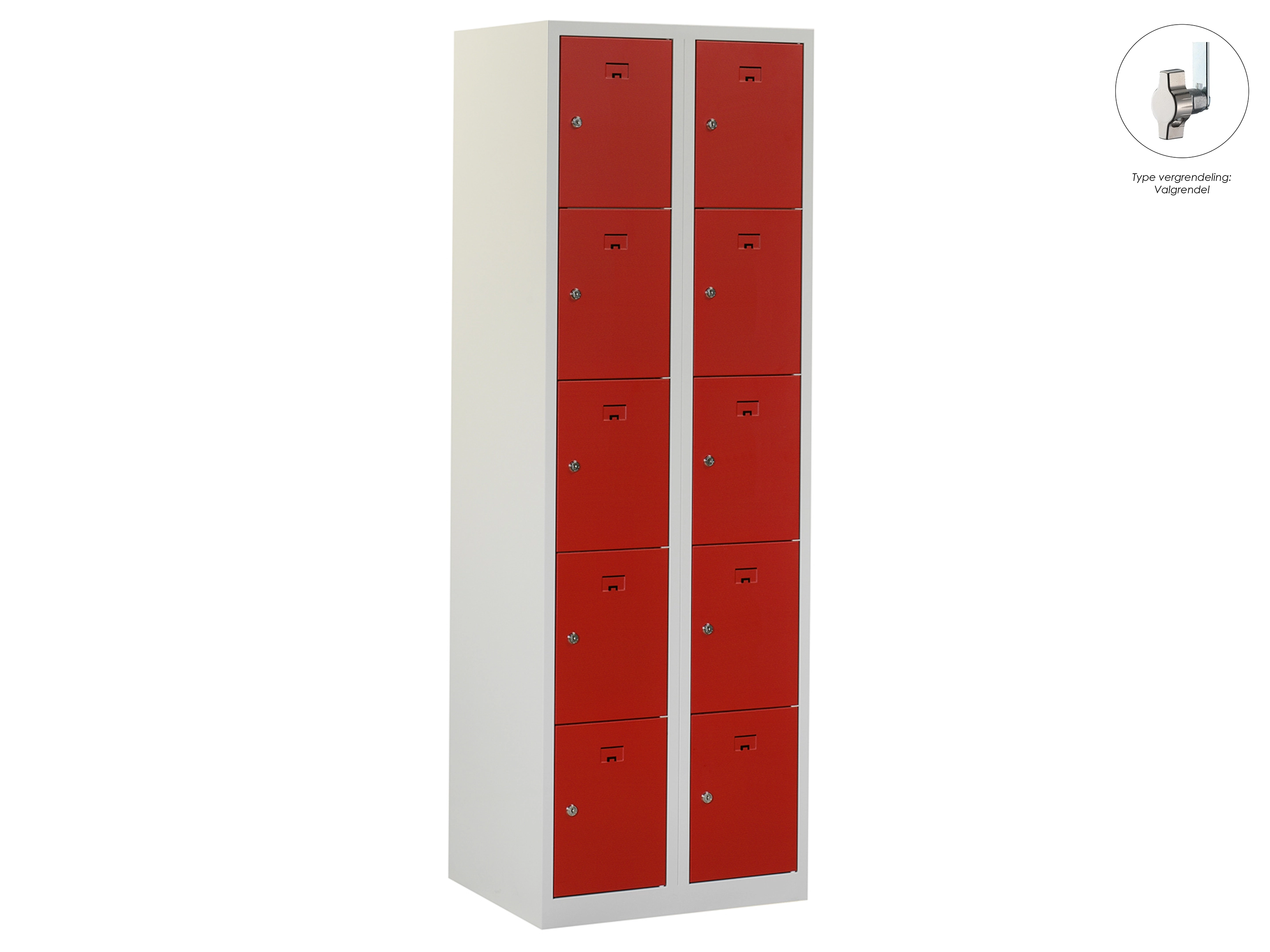 Locker PH - 2 kolomen, 10 deuren, 180x80x50 cm, grijs/rood, valgrendel