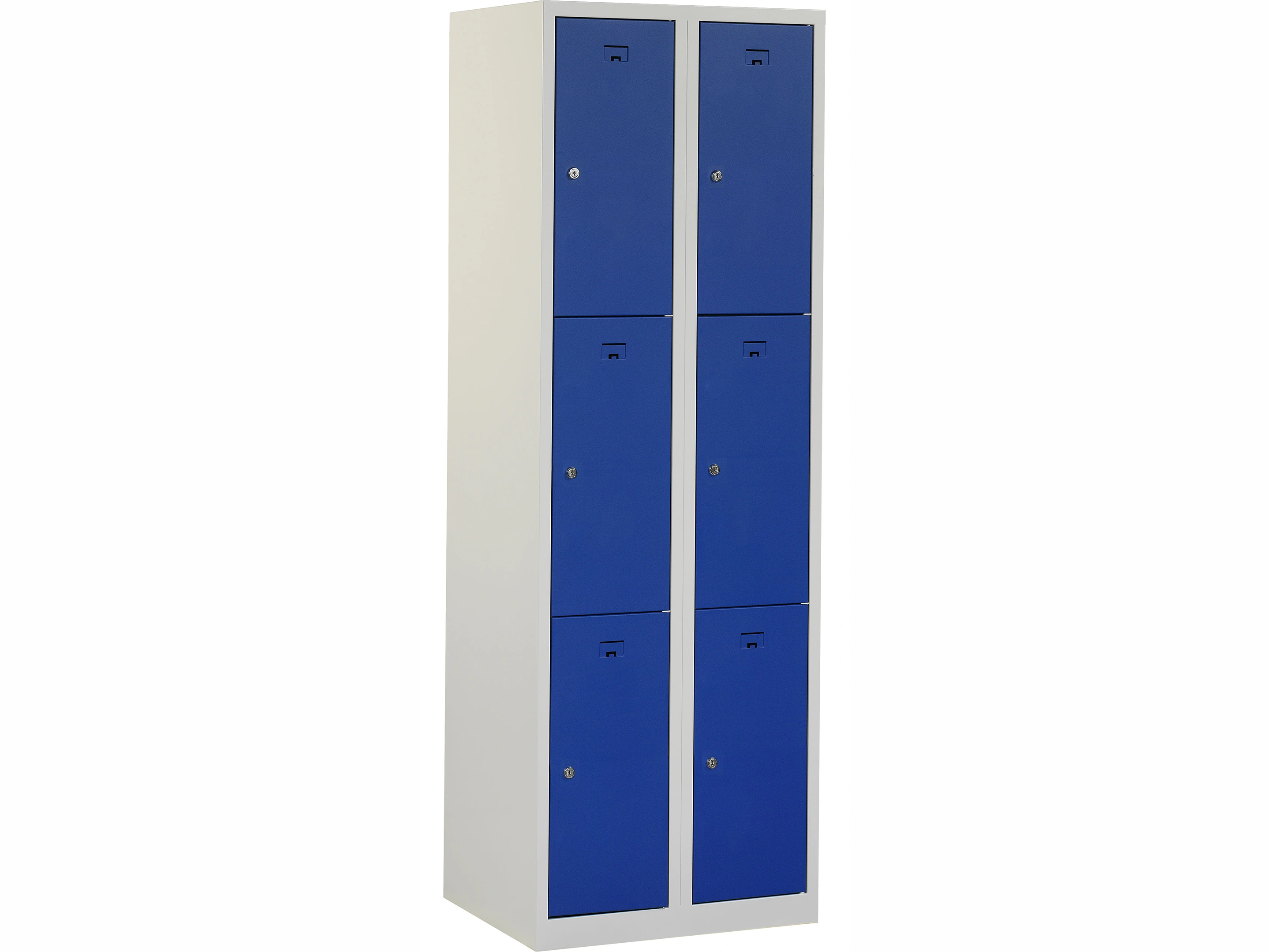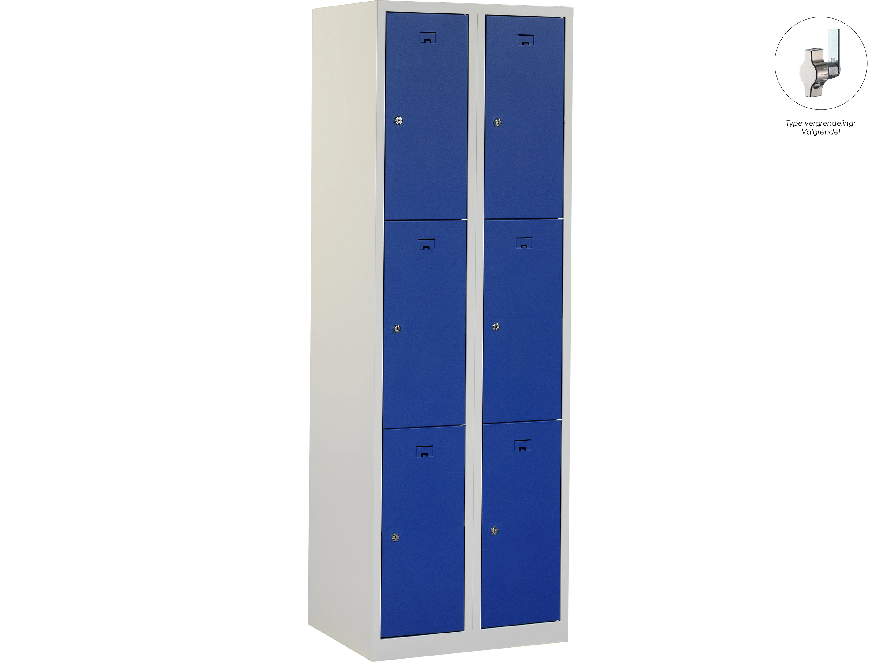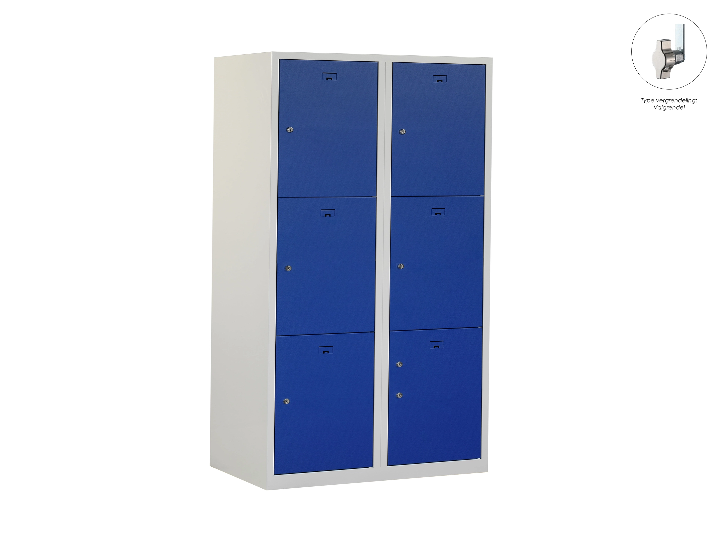 Locker PH - 2 kolomen, 6 deuren, 180x60x50 cm, grijs/blauw, valgrendel