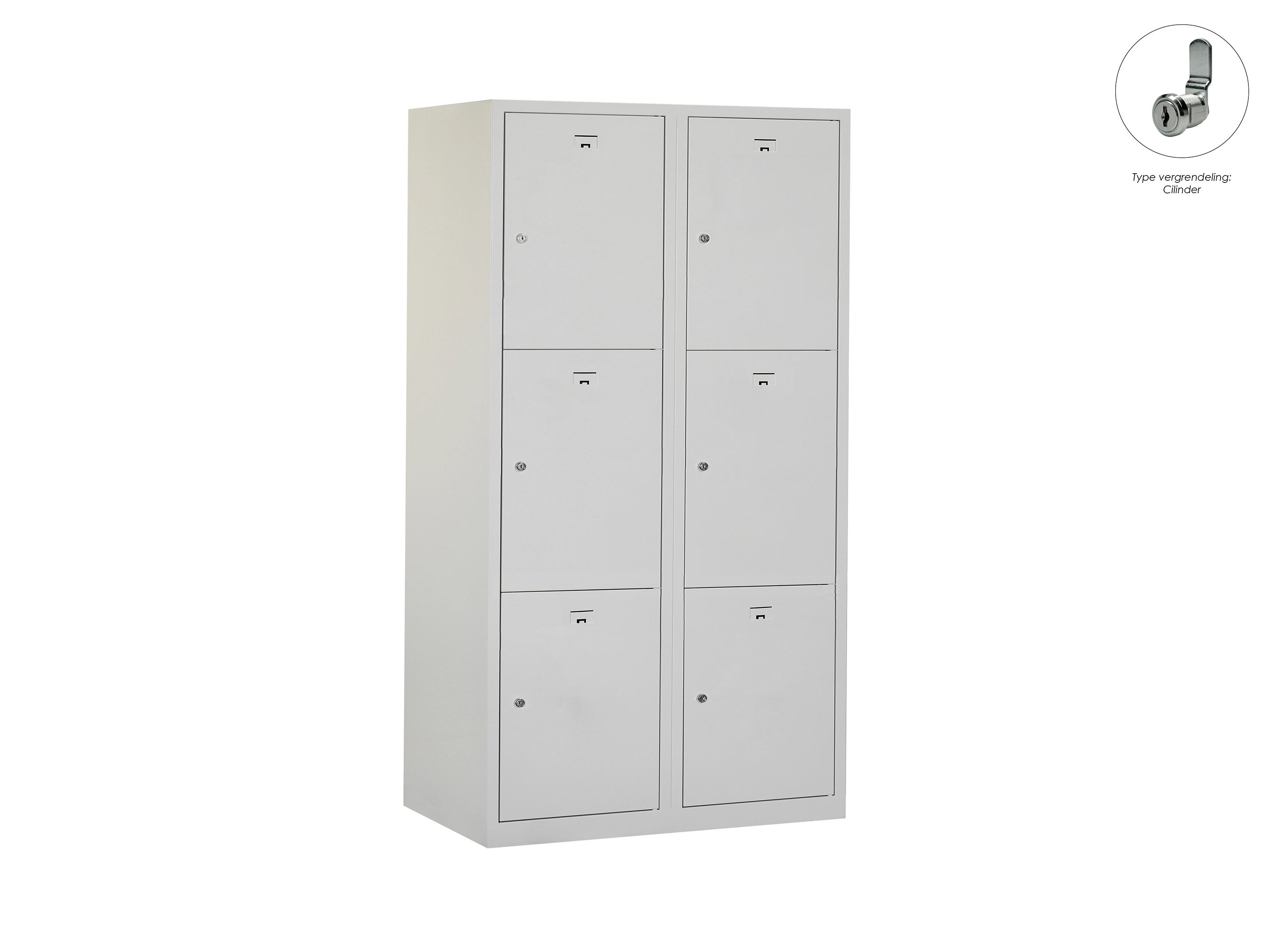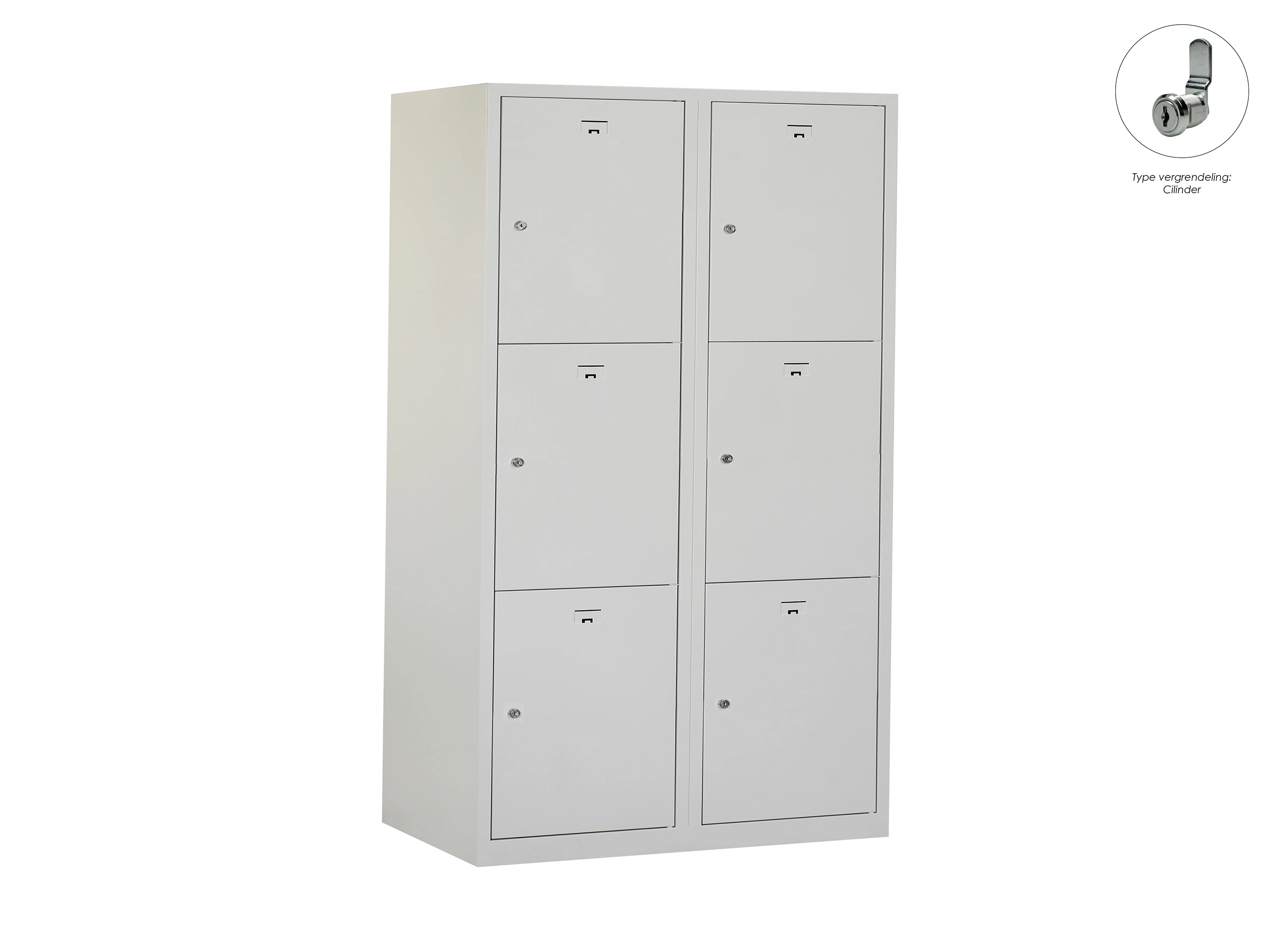 Locker PH - 2 kolomen, 6 deuren, 111,6x90x50 cm, grijs/grijs, cilinder