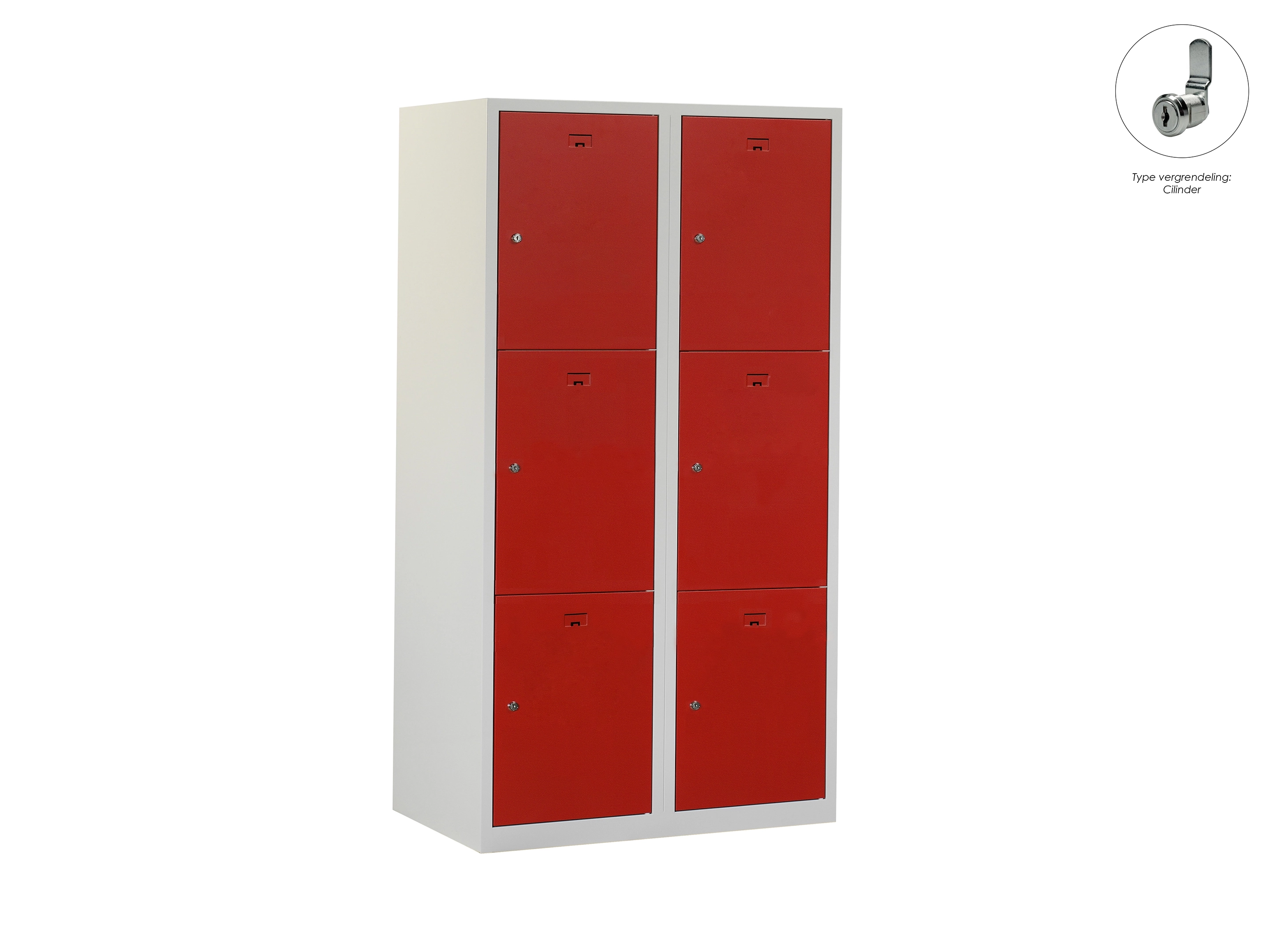 Locker PH - 2 kolomen, 6 deuren, 180x60x50 cm, grijs/rood, cilinder