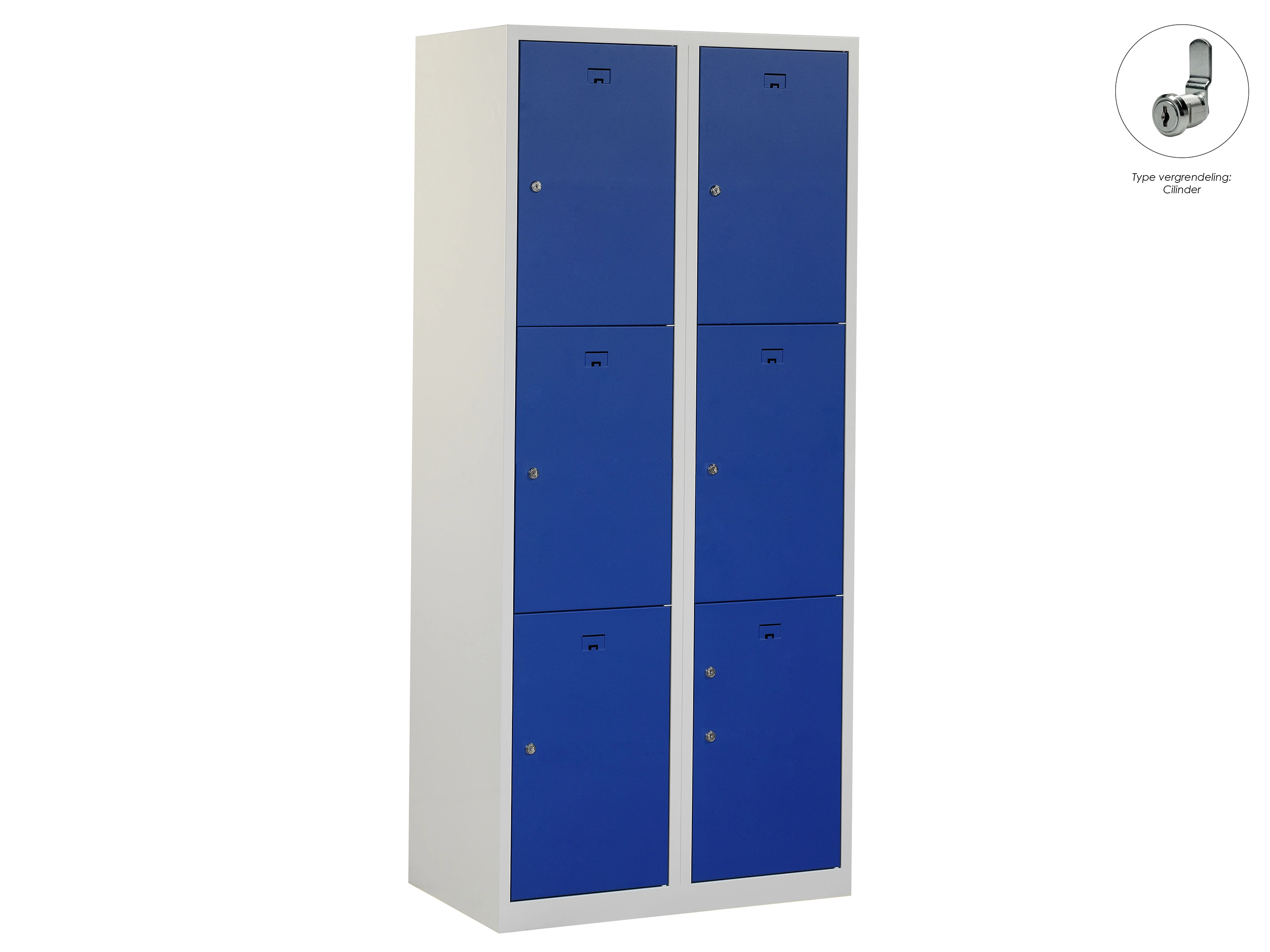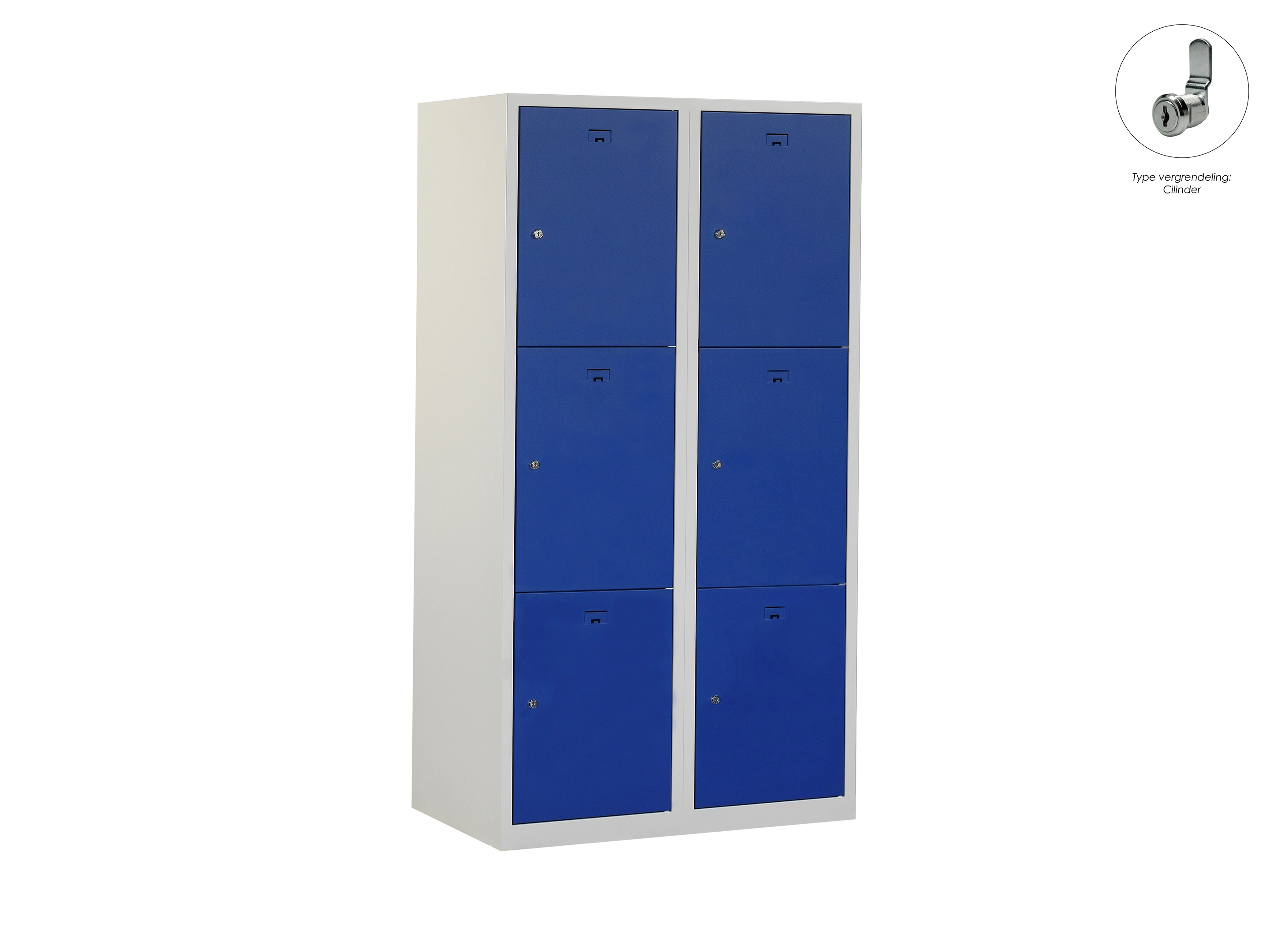 Locker PH - 2 kolomen, 6 deuren, 180x60x50 cm, grijs/blauw, cilinder