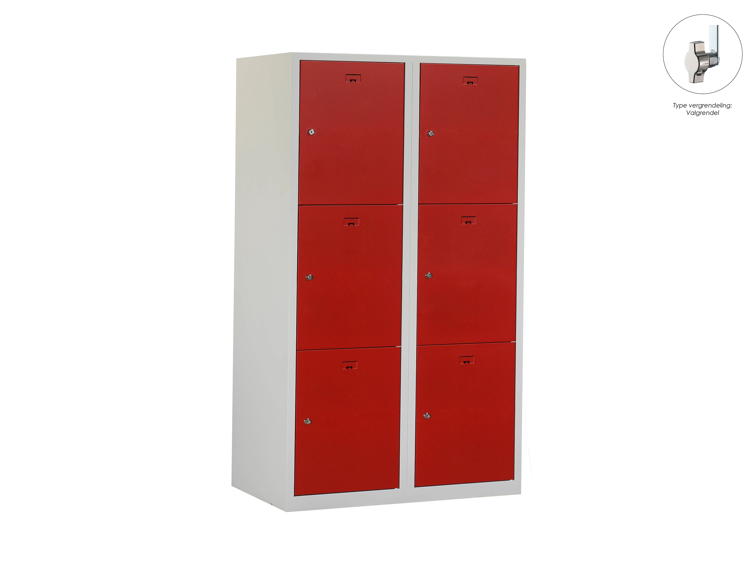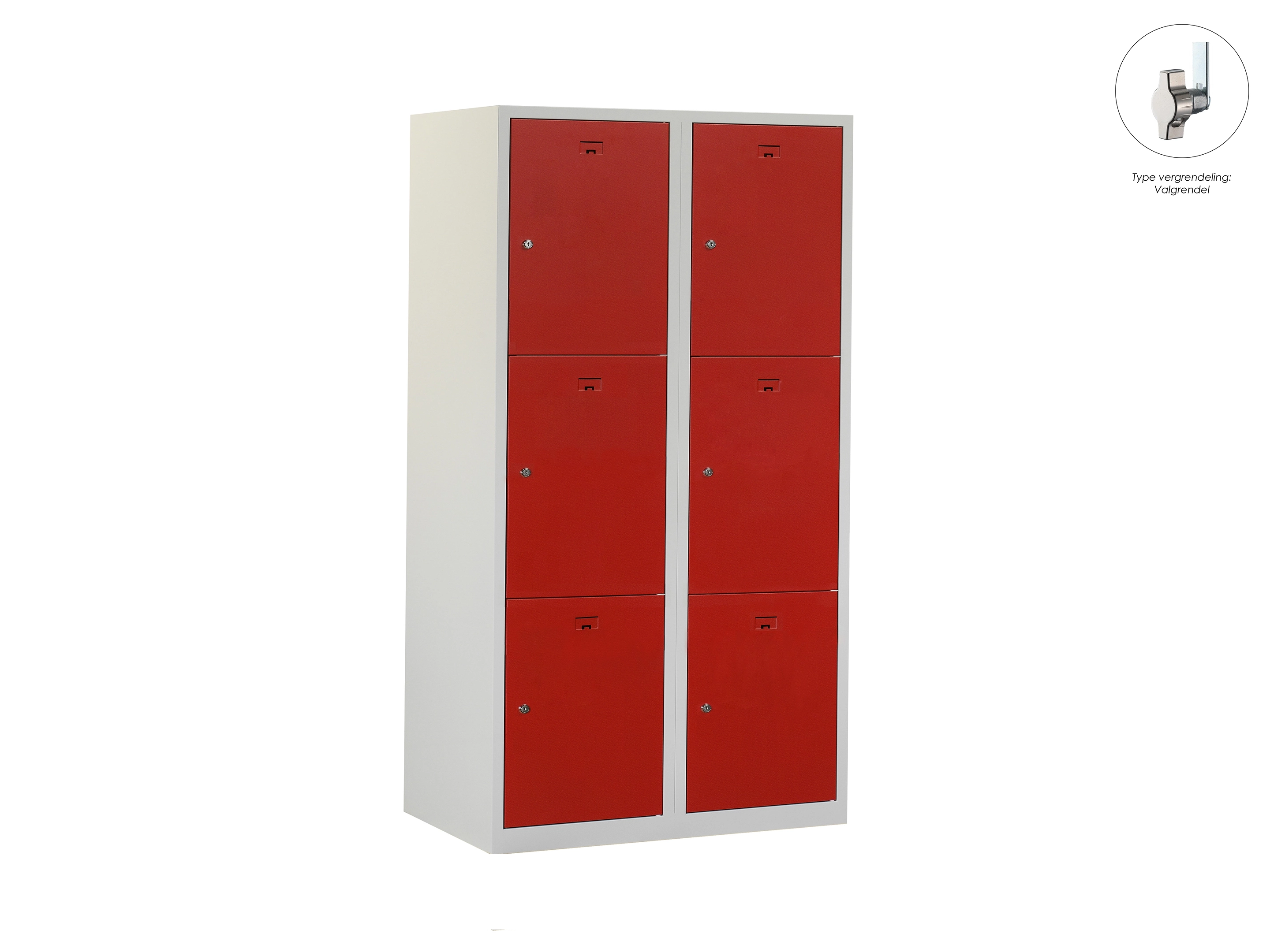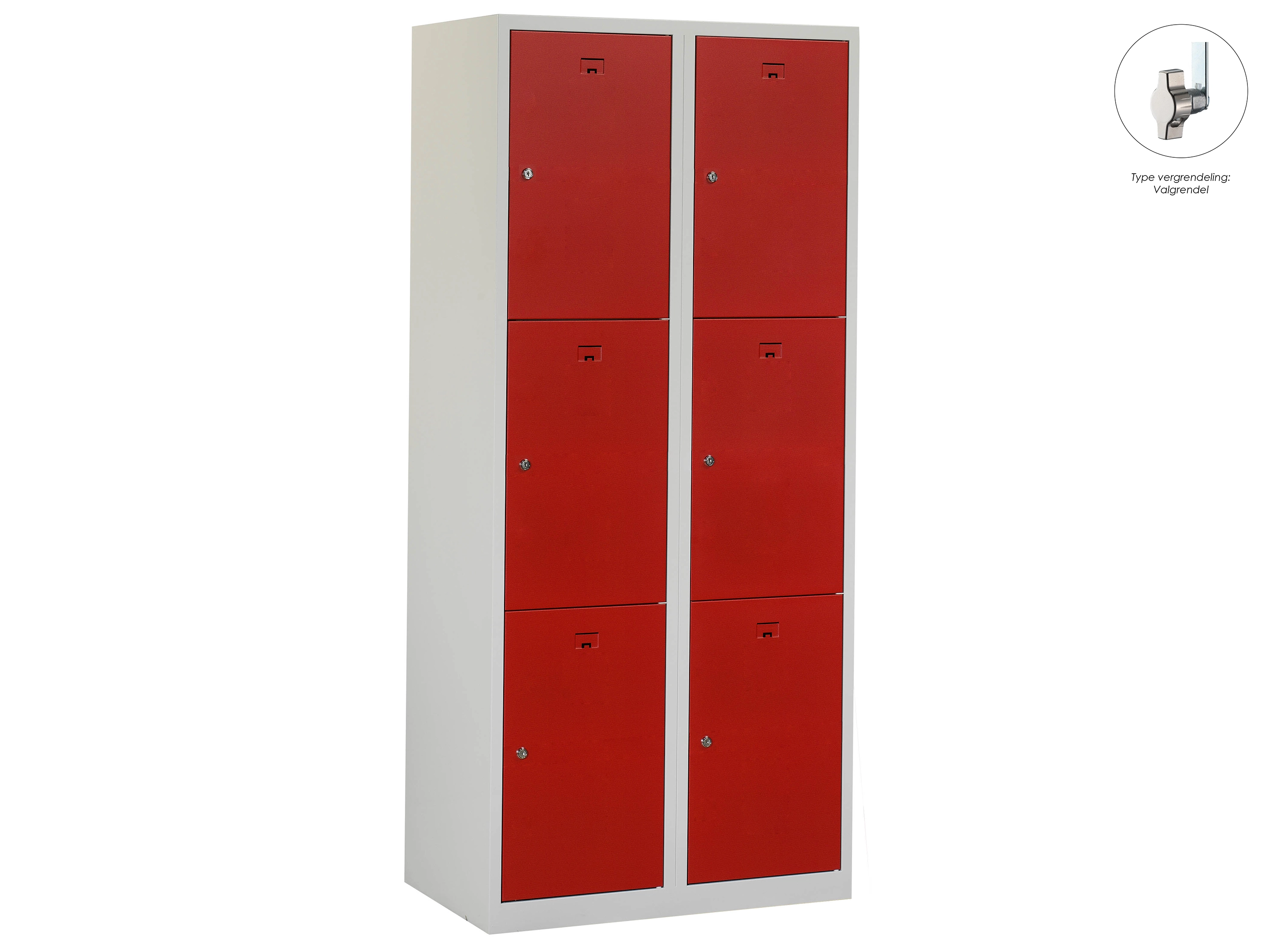 Locker PH - 2 kolomen, 6 deuren, 180x60x50 cm, grijs/rood, valgrendel