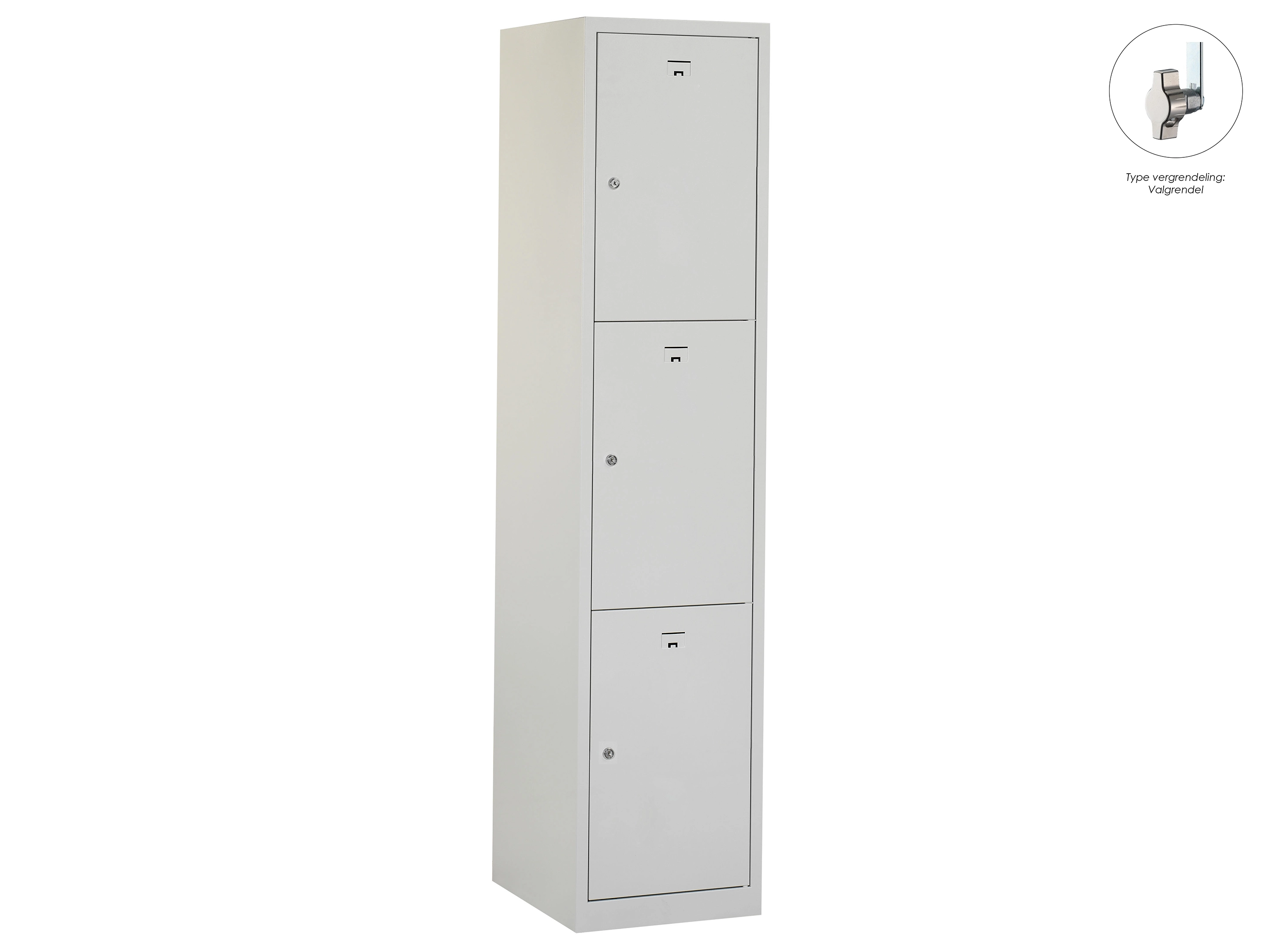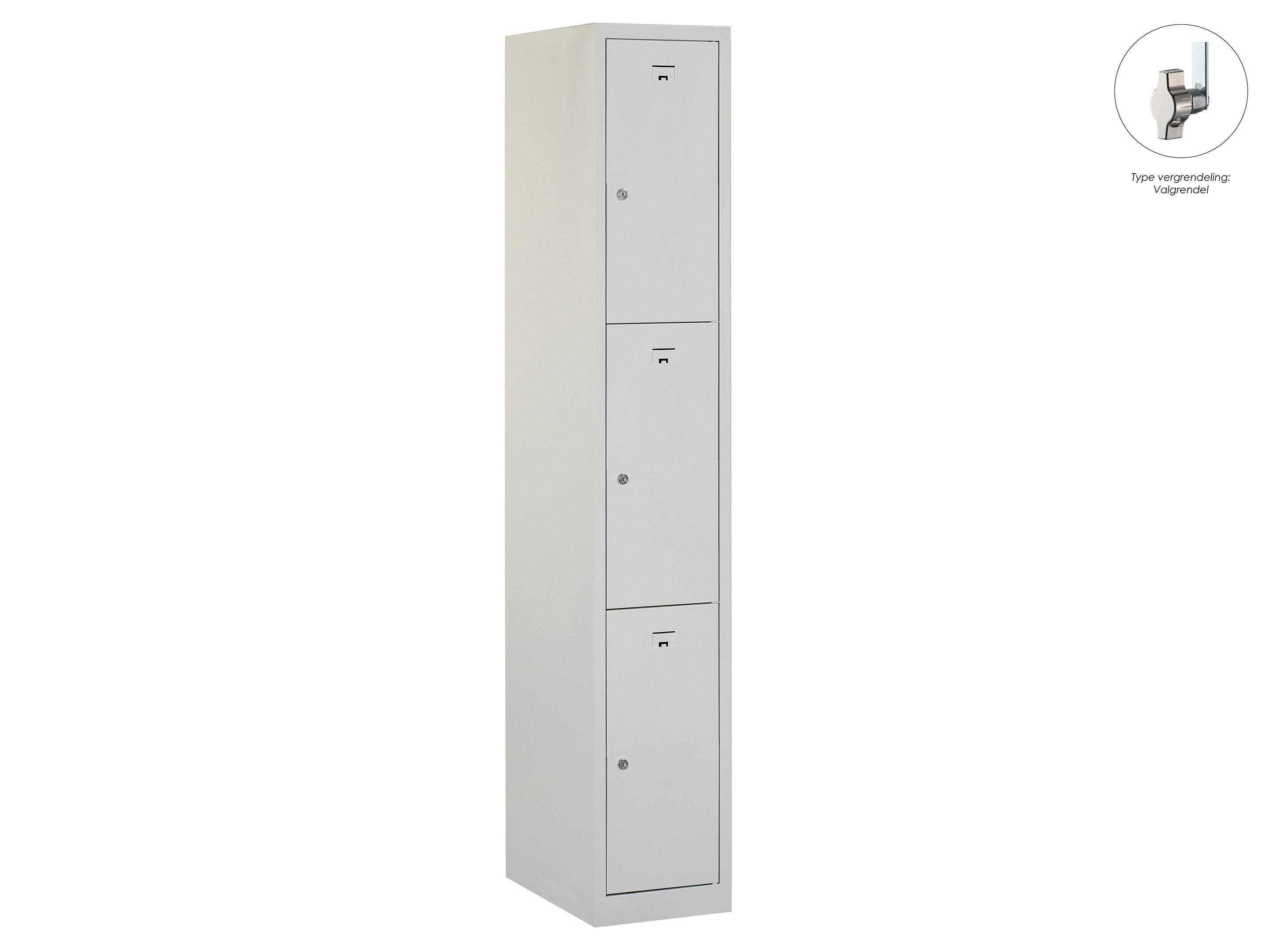 Locker PH - kolom, 3 deuren, 180x30x50 cm, grijs/grijs, valgrendel