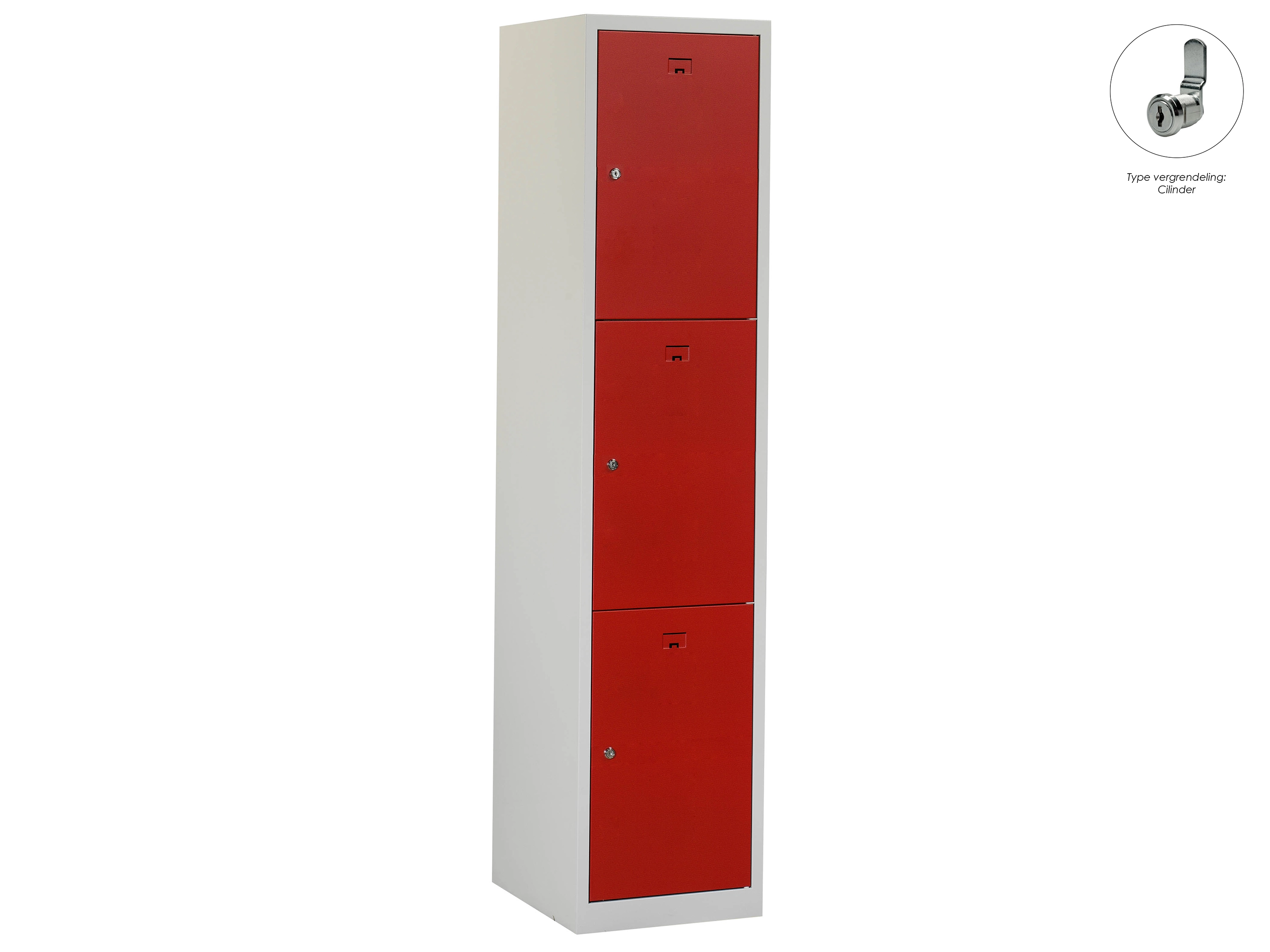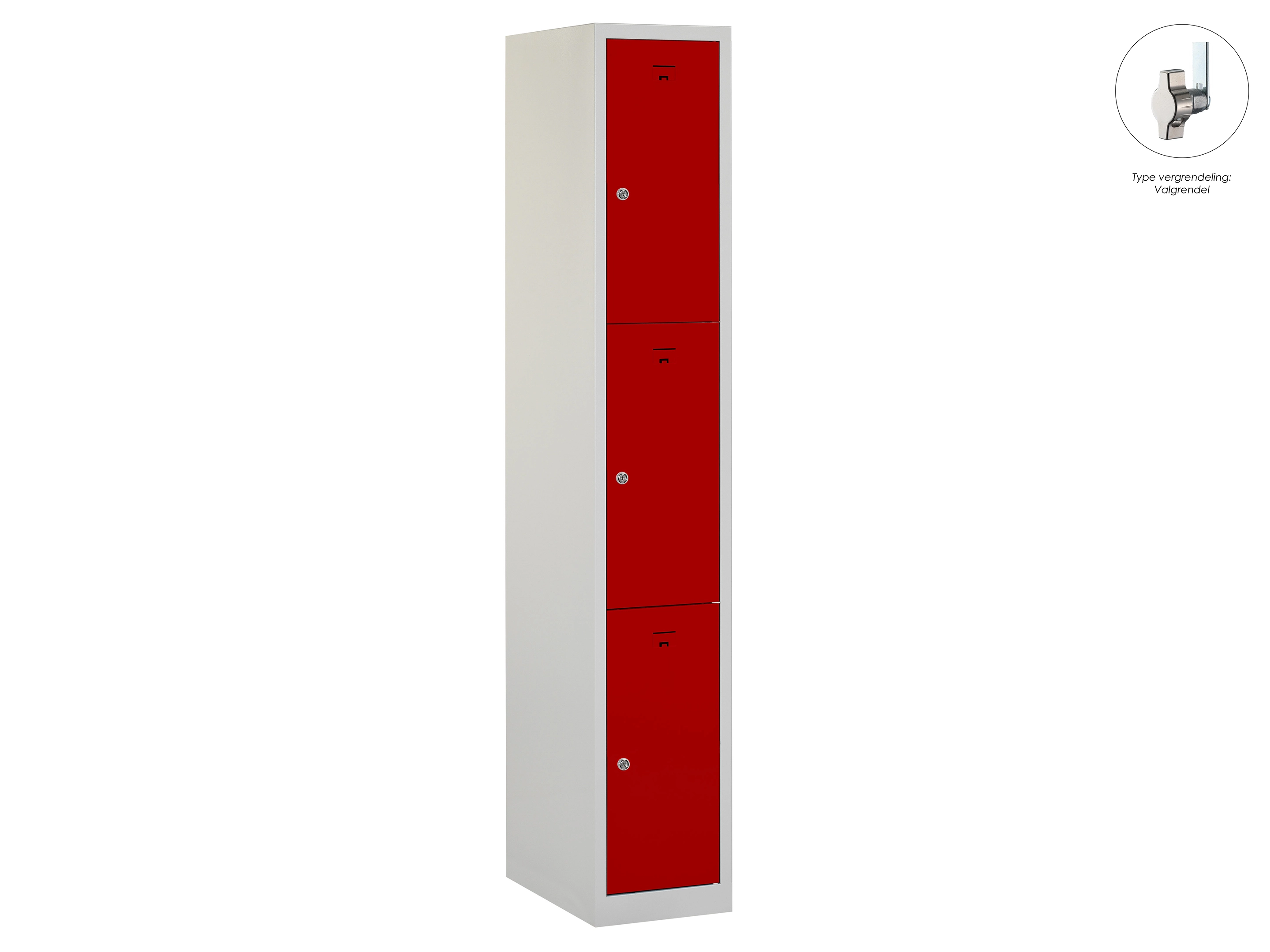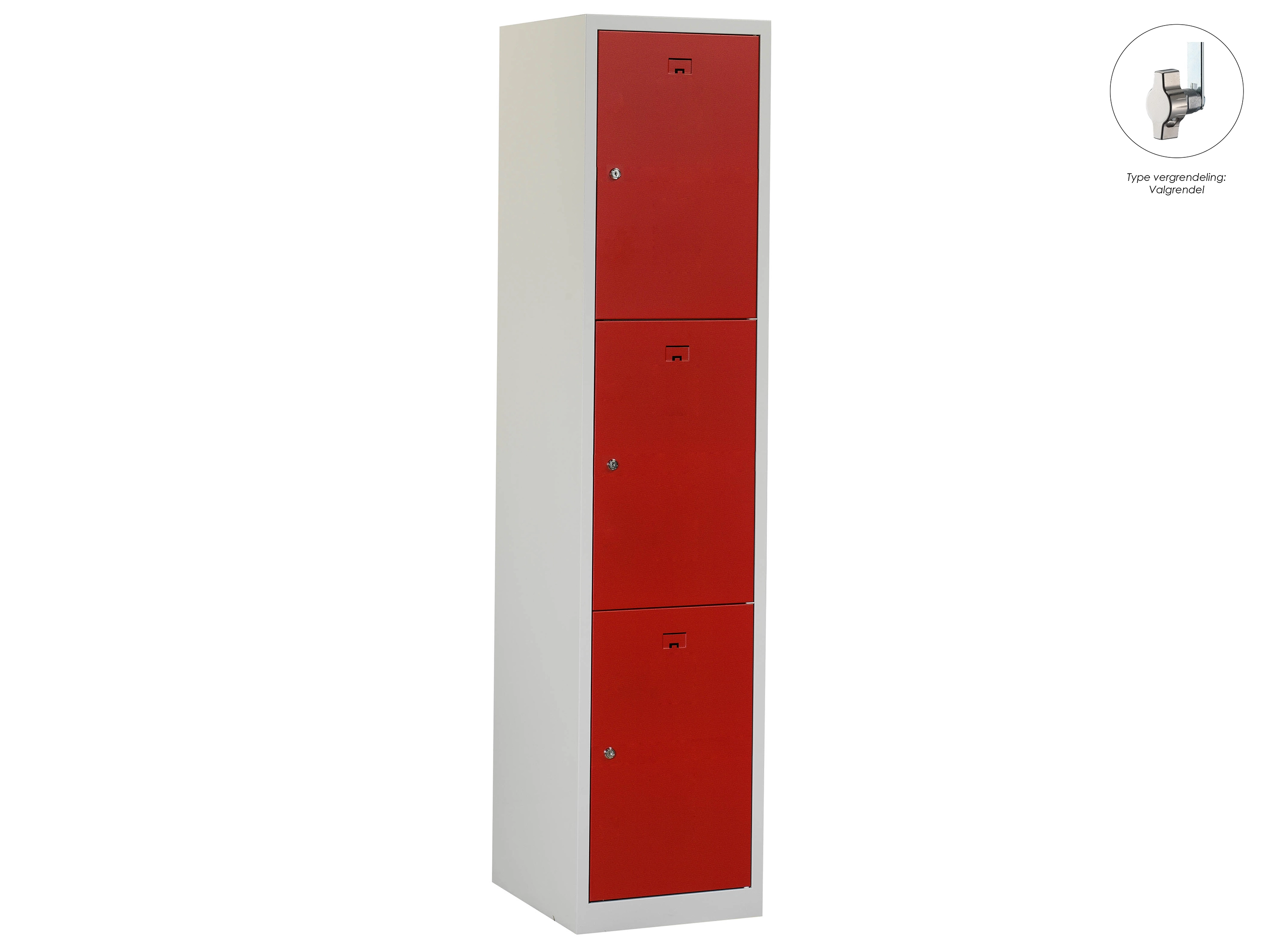 Locker PH - 1 kolom, 3 deuren, 180x40x50 cm, grijs/rood, valgrendel