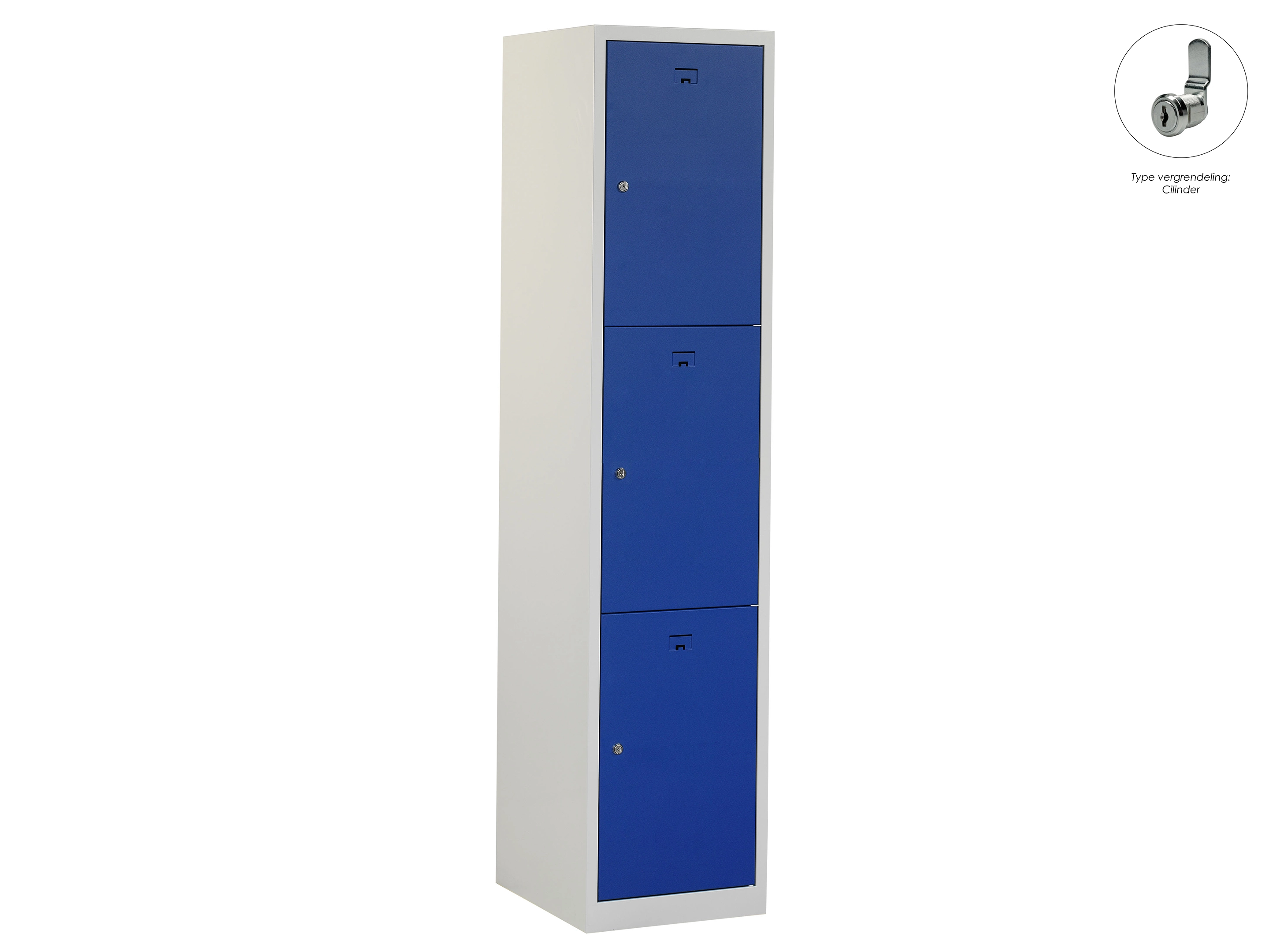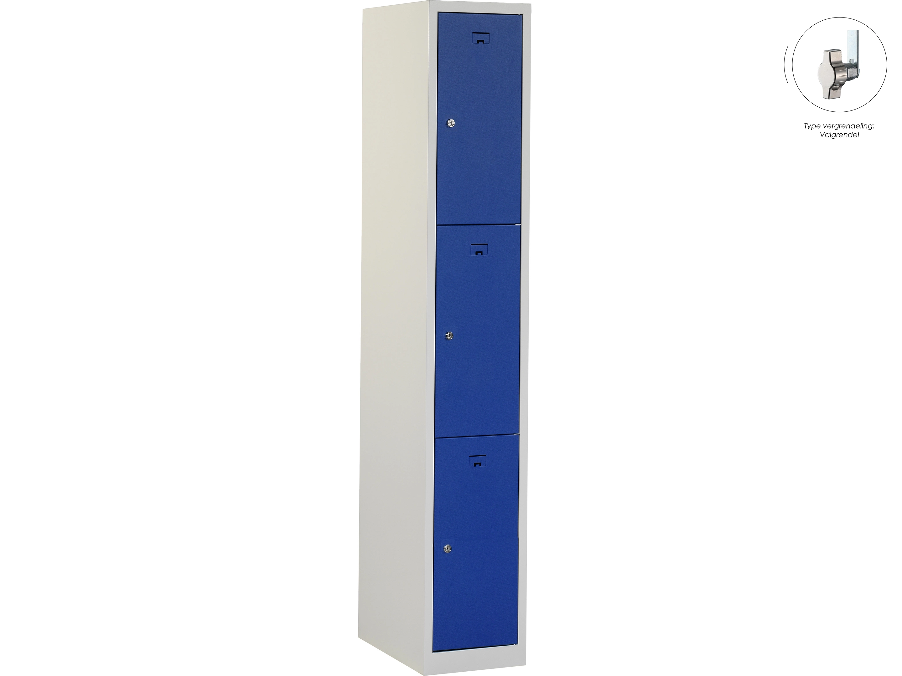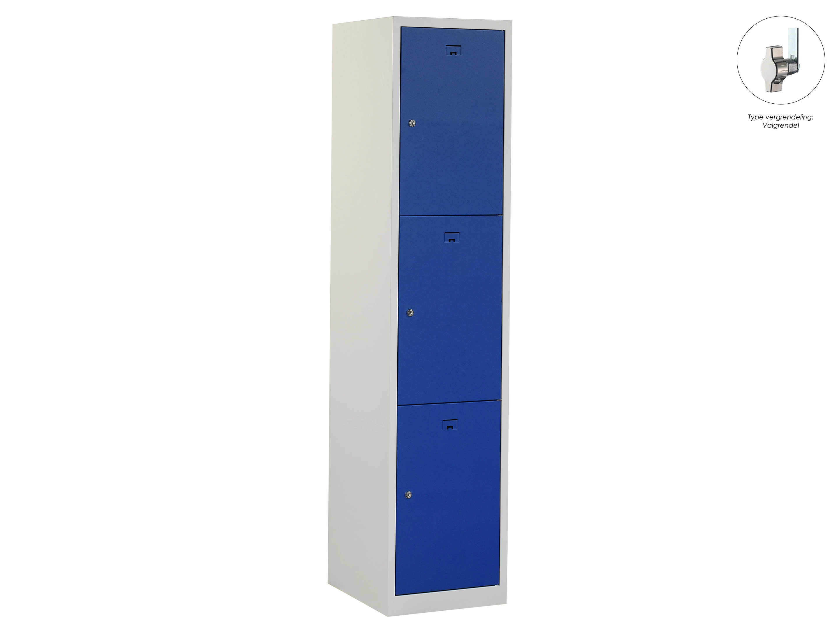 Locker PH - 1 kolom, 3 deuren, 180x40x50 cm, grijs/blauw, valgrendel