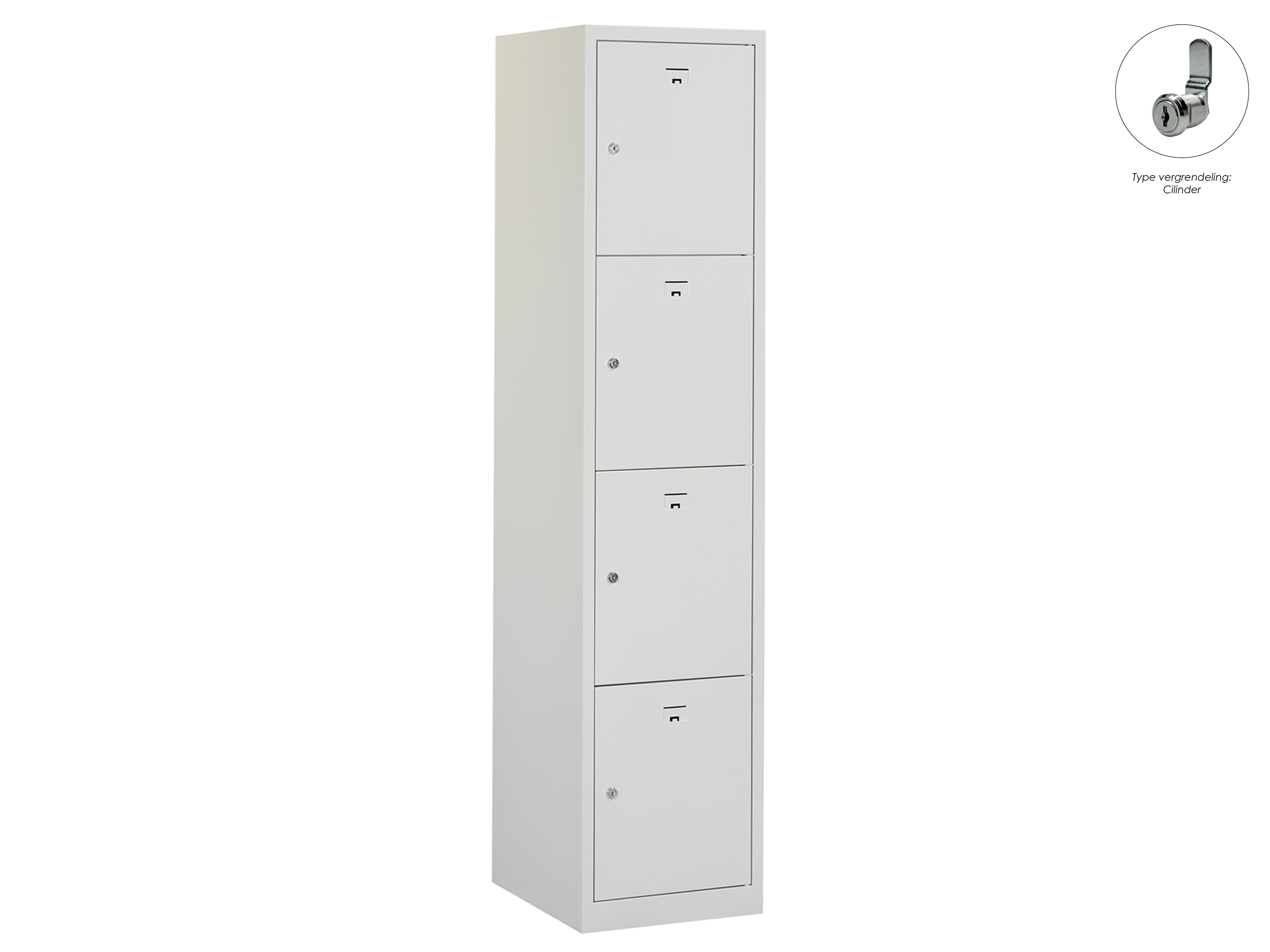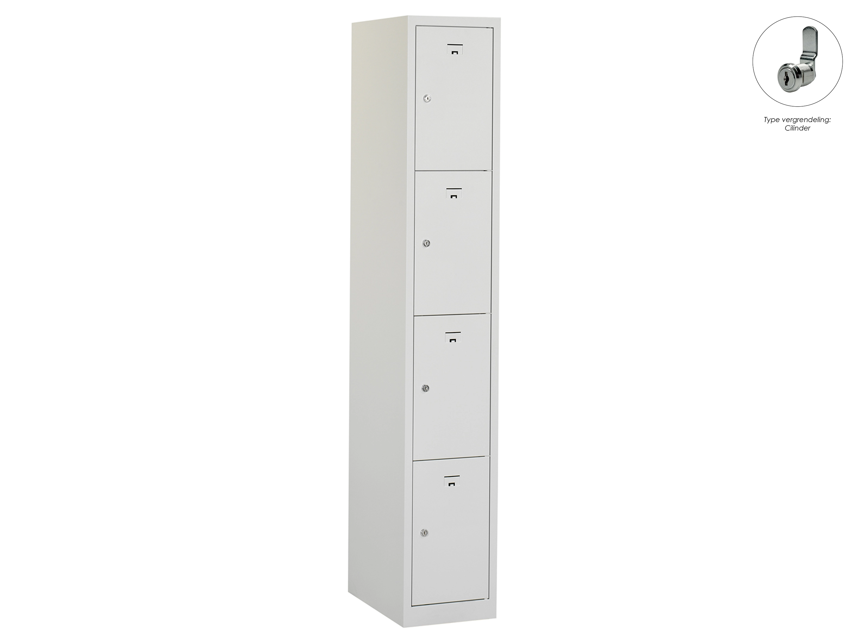 Locker PH - 1 kolom, 4 deuren, 180x40x50 cm, grijs/grijs, cilinder