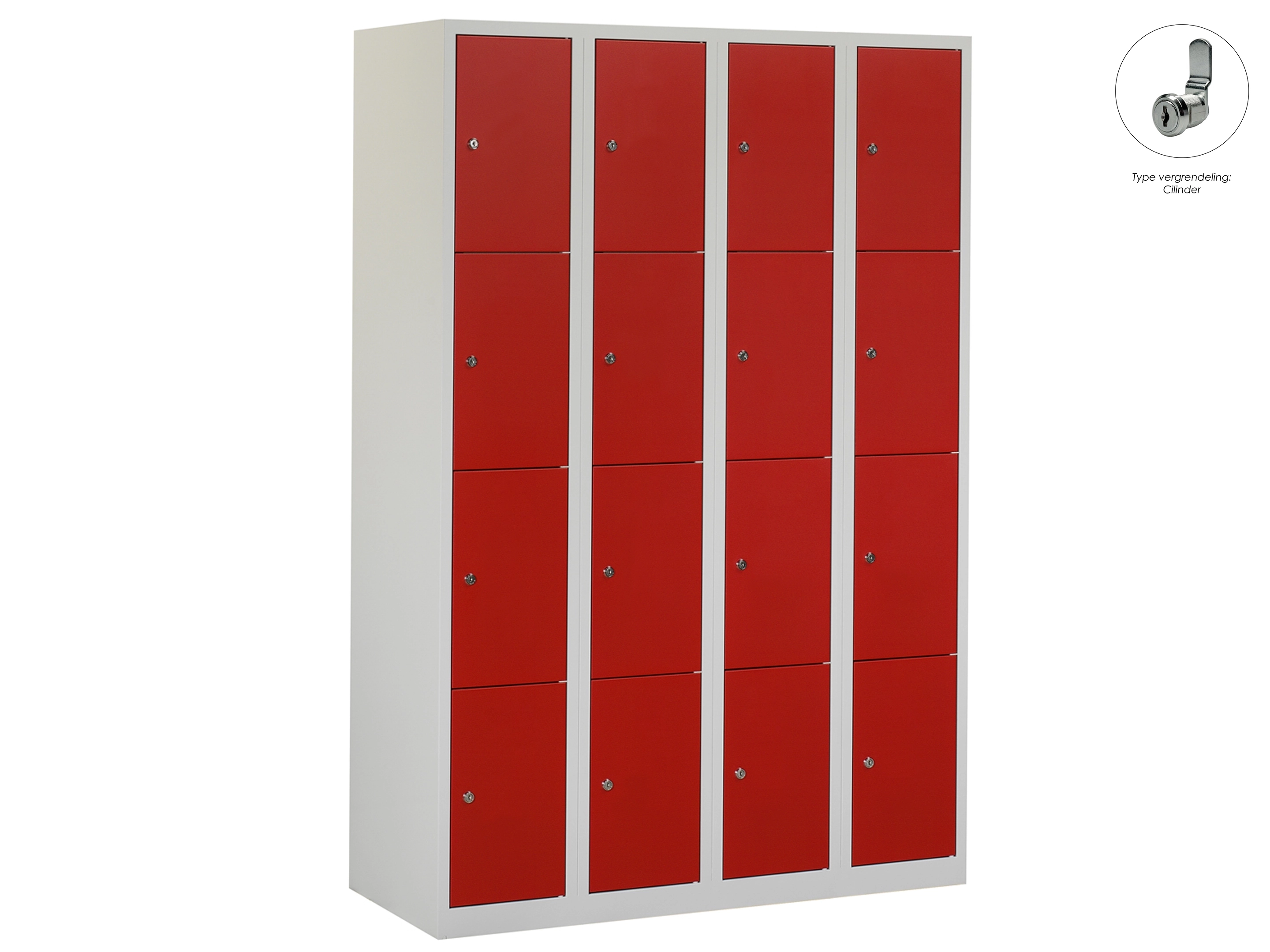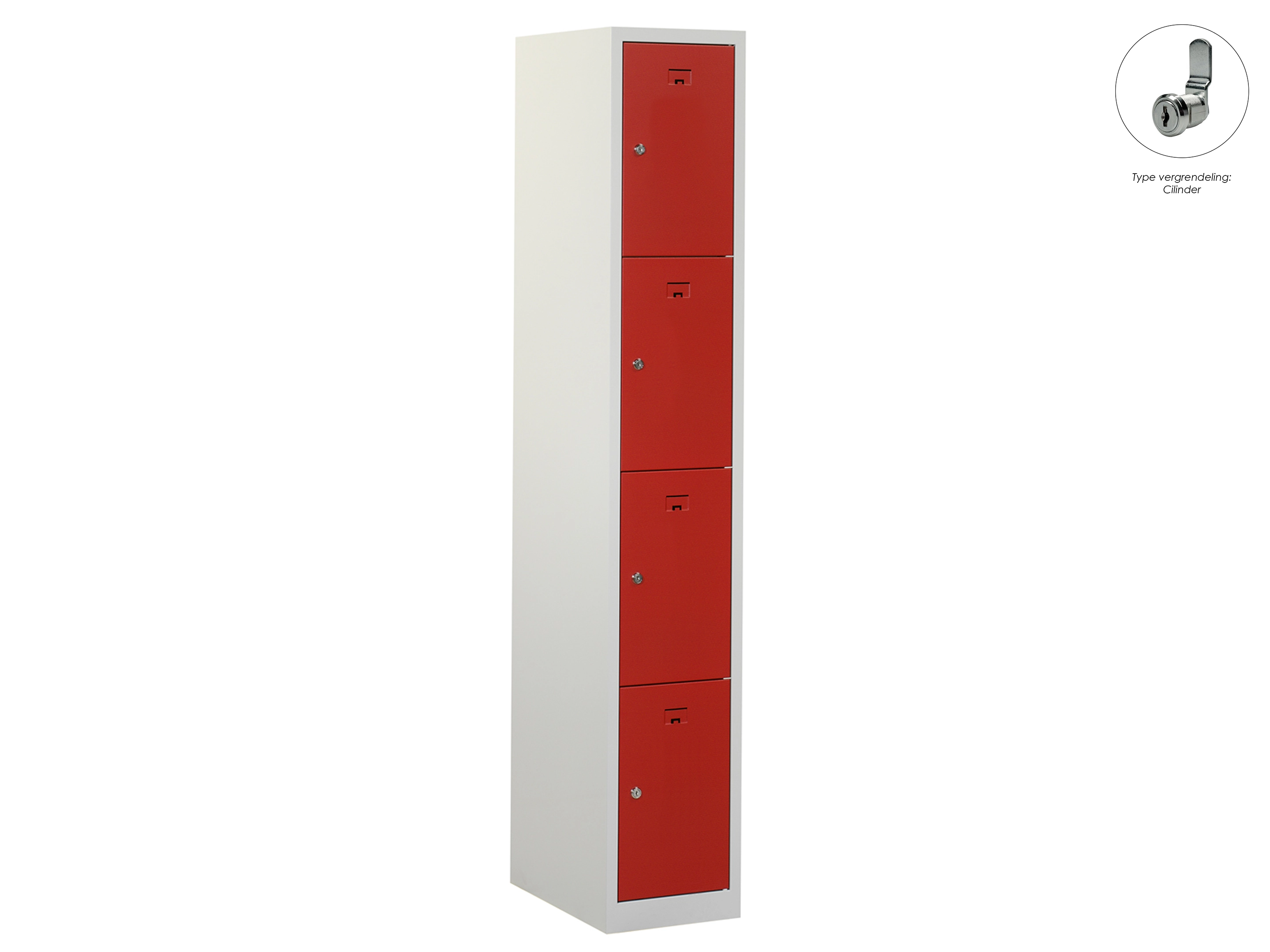 Locker PH - 1 kolom, 4 deuren, 180x40x50 cm, grijs/rood, cilinder