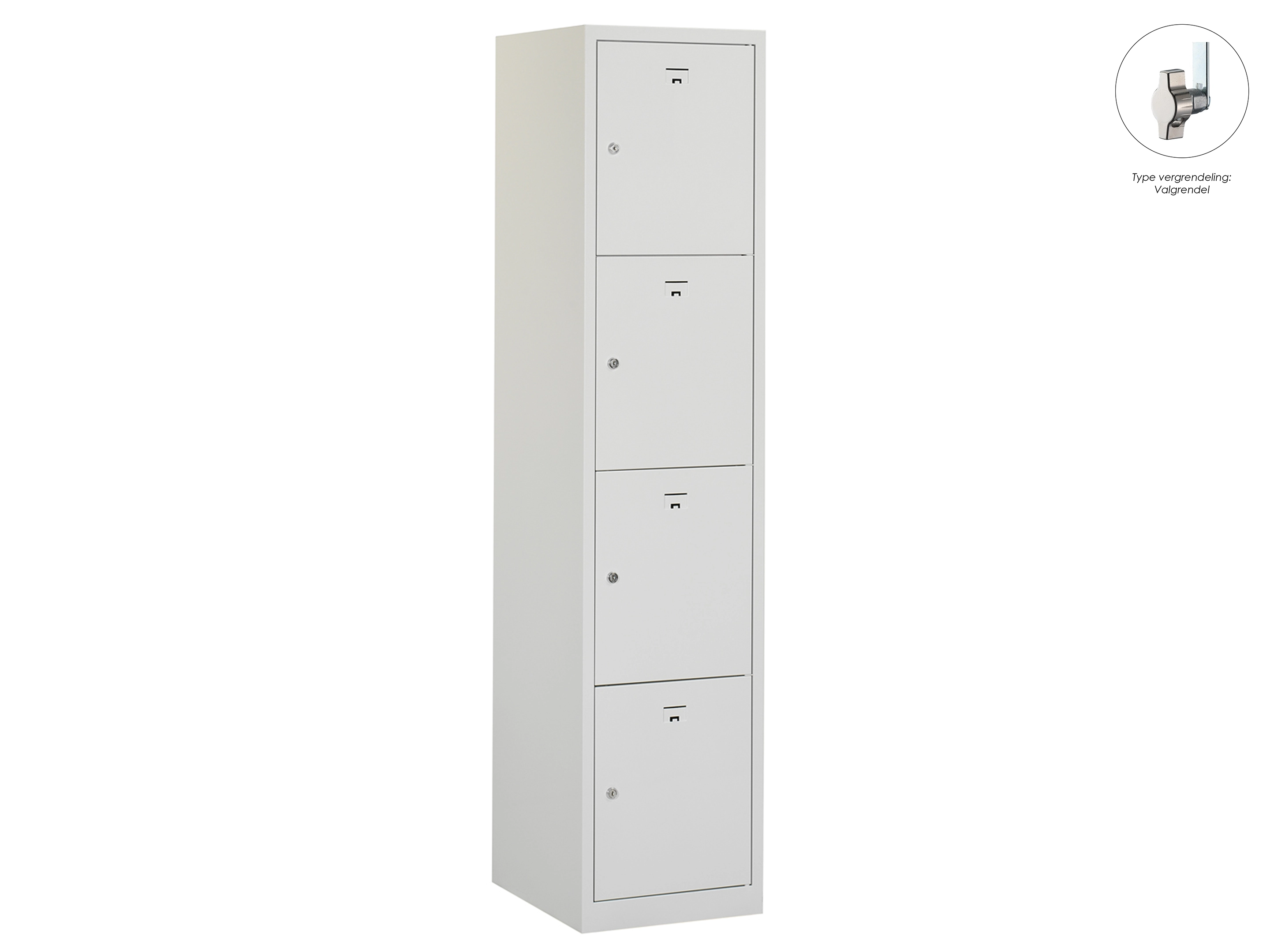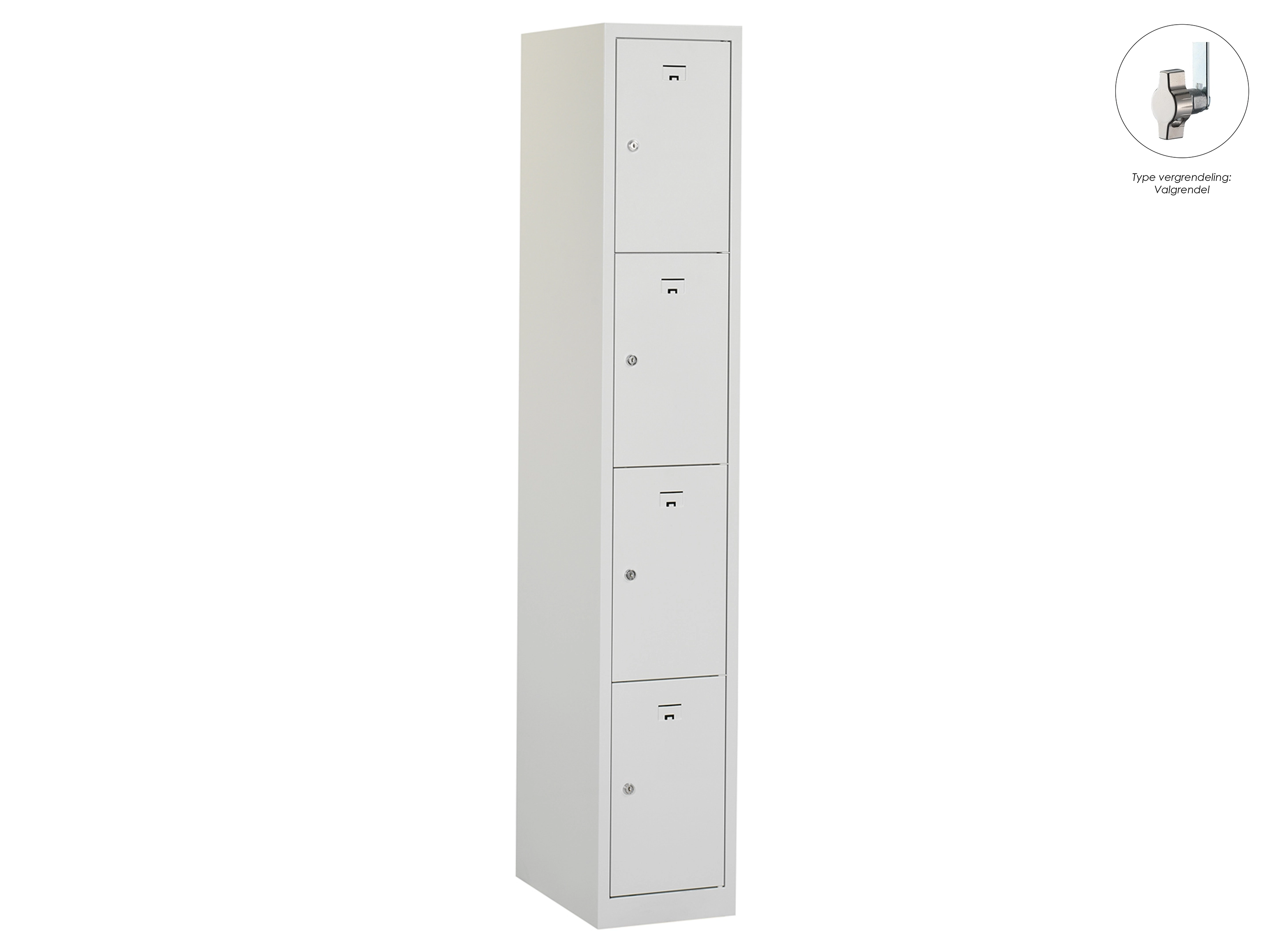 Locker PH - 1 kolom, 4 deuren, 180x40x50 cm, grijs/grijs, valgrendel