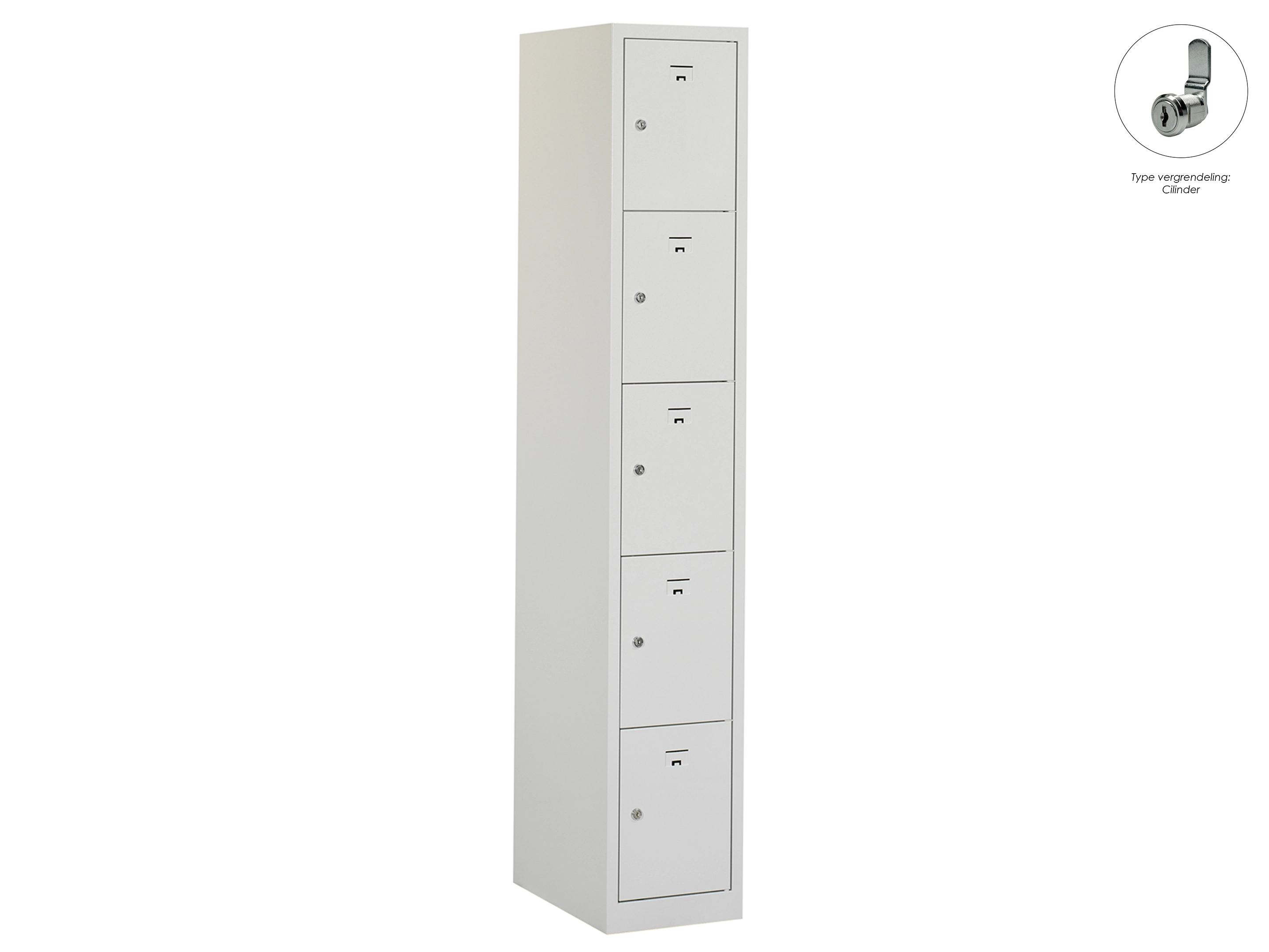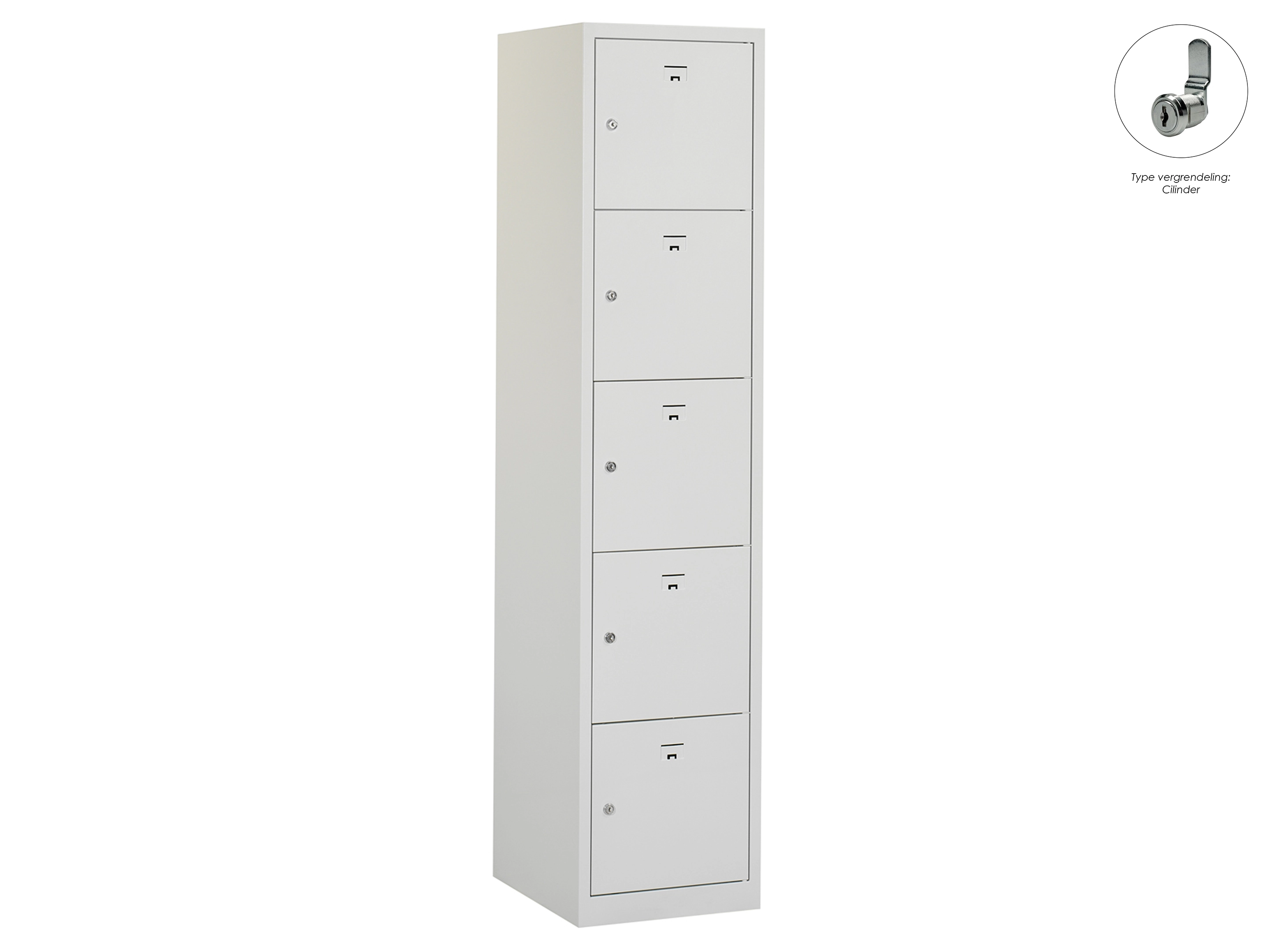 Locker PH - 1 kolom, 5 deuren, 180x40x50 cm, grijs/grijs, cilinder