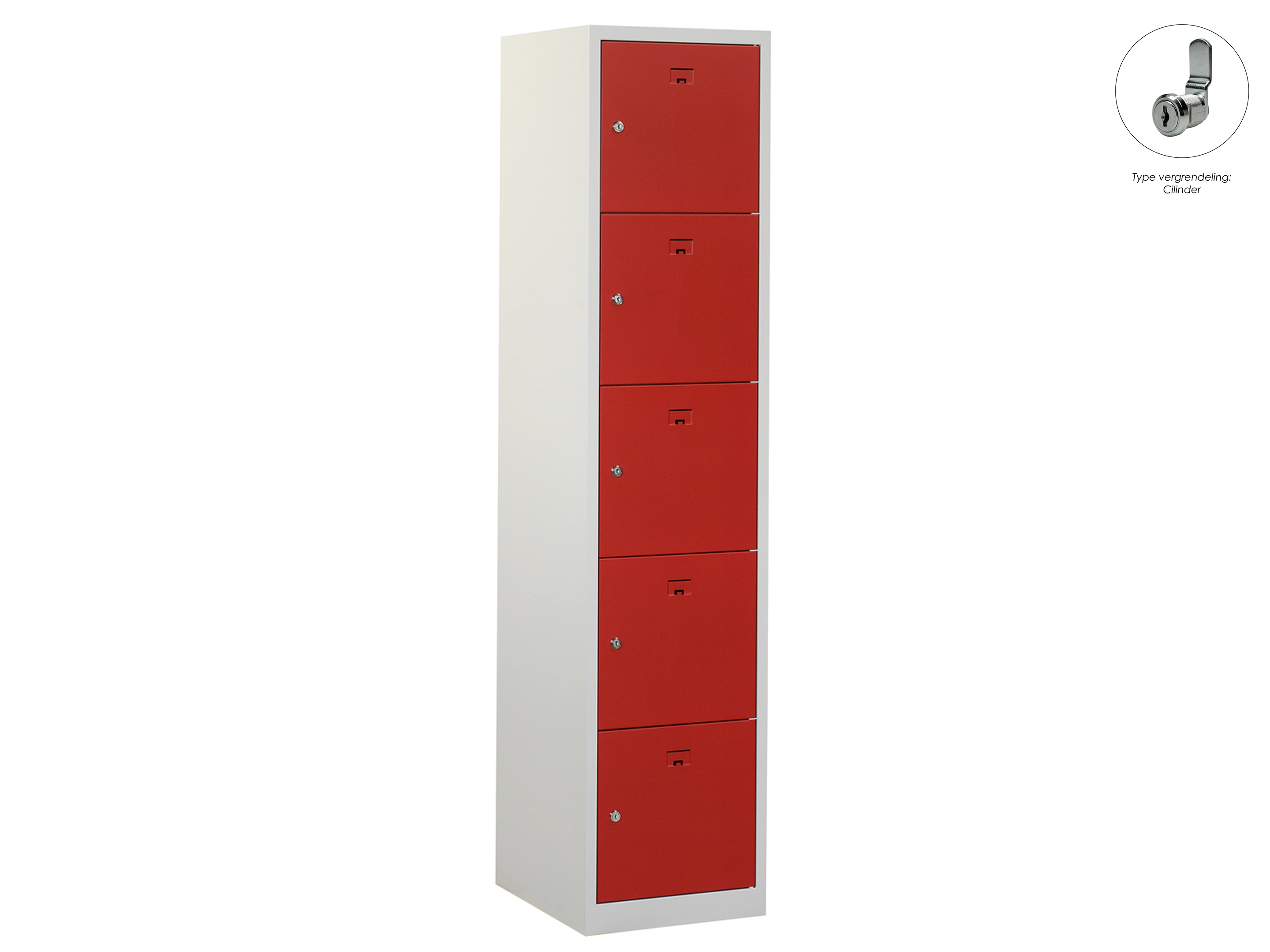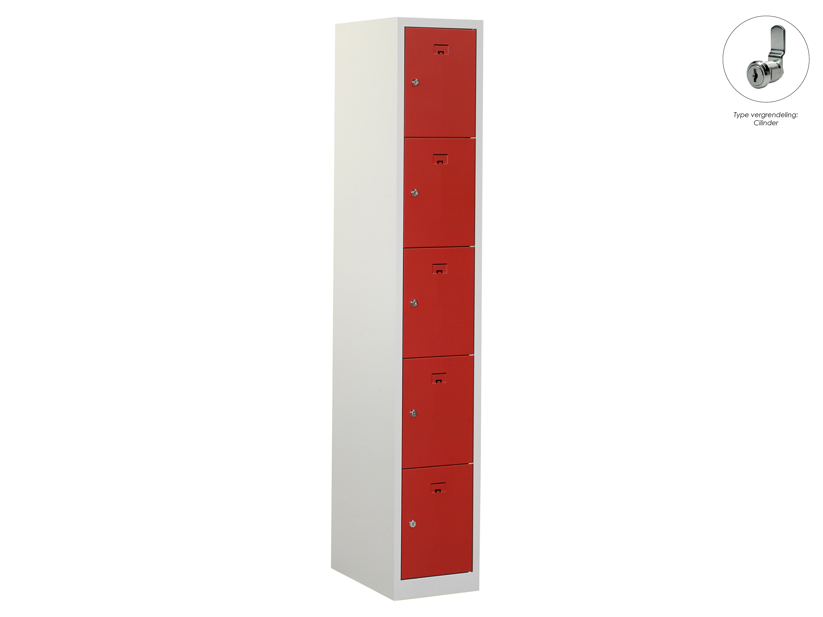Locker PH - 1 kolom, 5 deuren, 180x40x50 cm, grijs/rood, cilinder