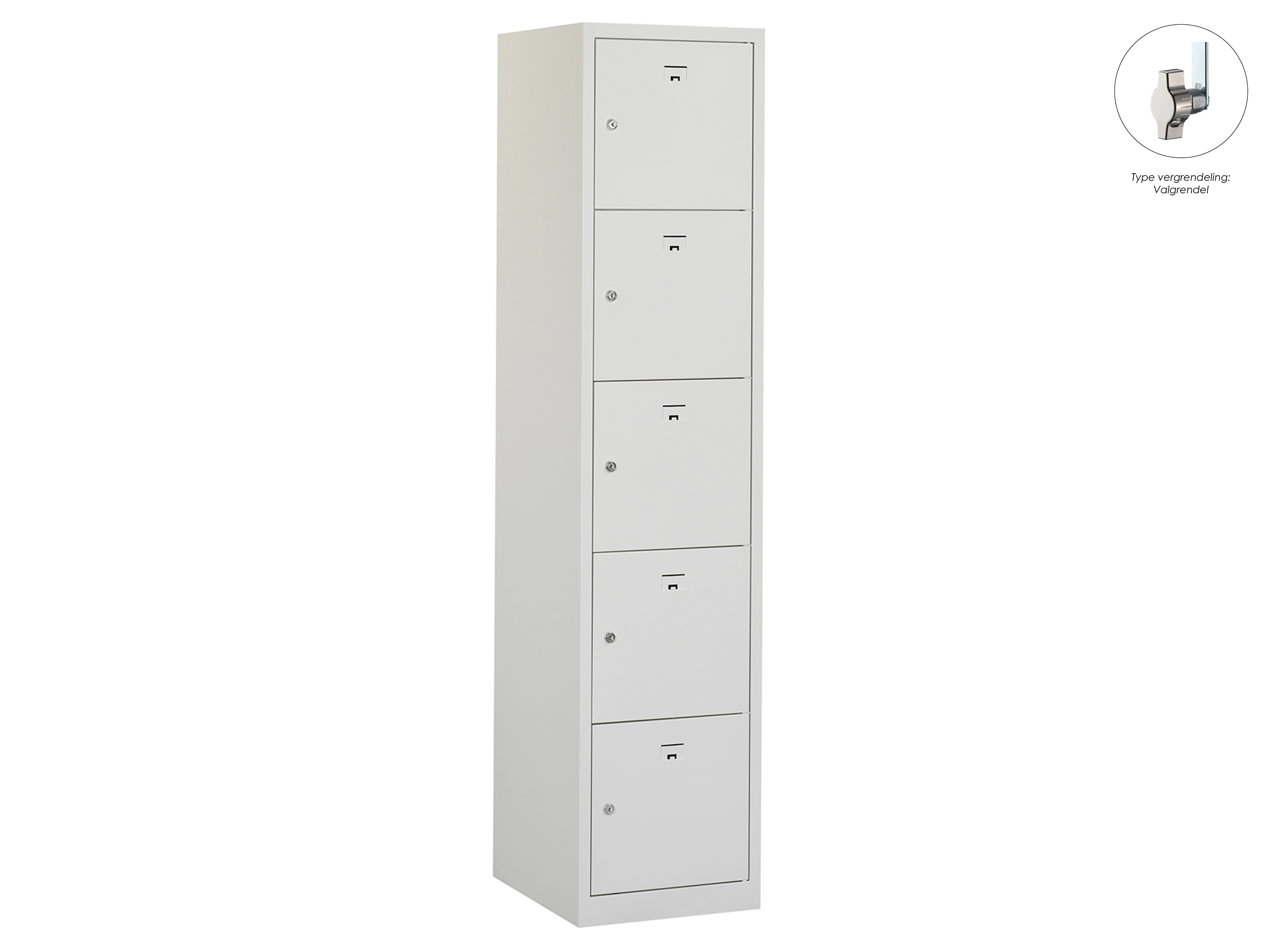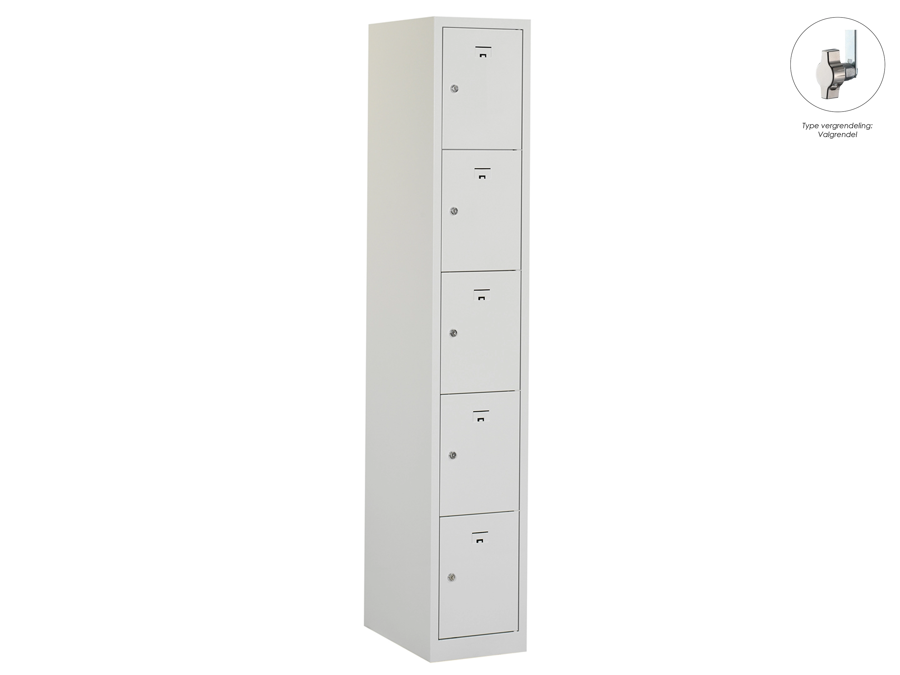 Locker PH - 1 kolom, 5 deuren, 180x40x50 cm, grijs/grijs, valgrendel