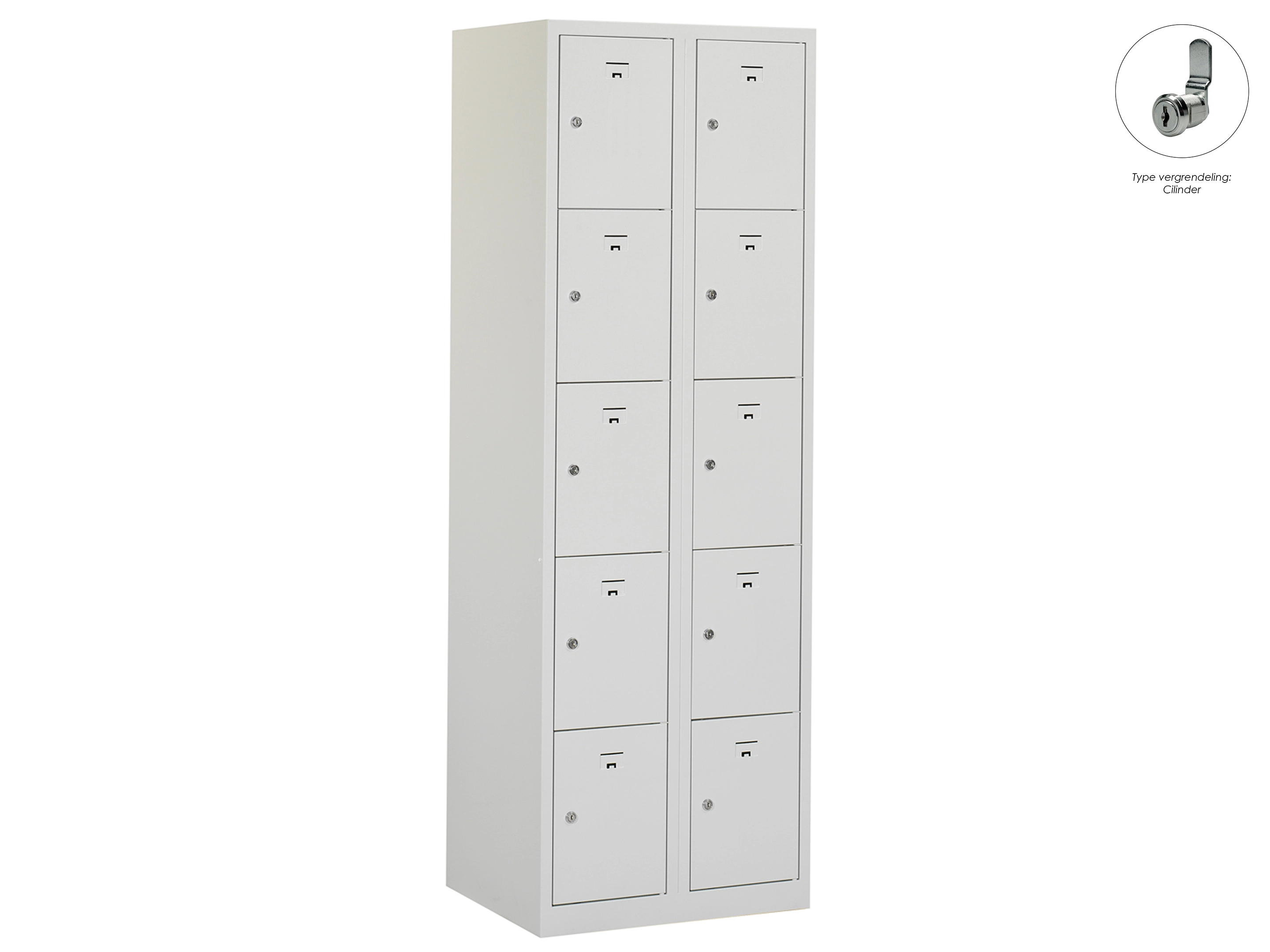 Locker PH - 2 kolomen, 10 deuren, 180x60x50 cm, grijs/grijs, cilinder