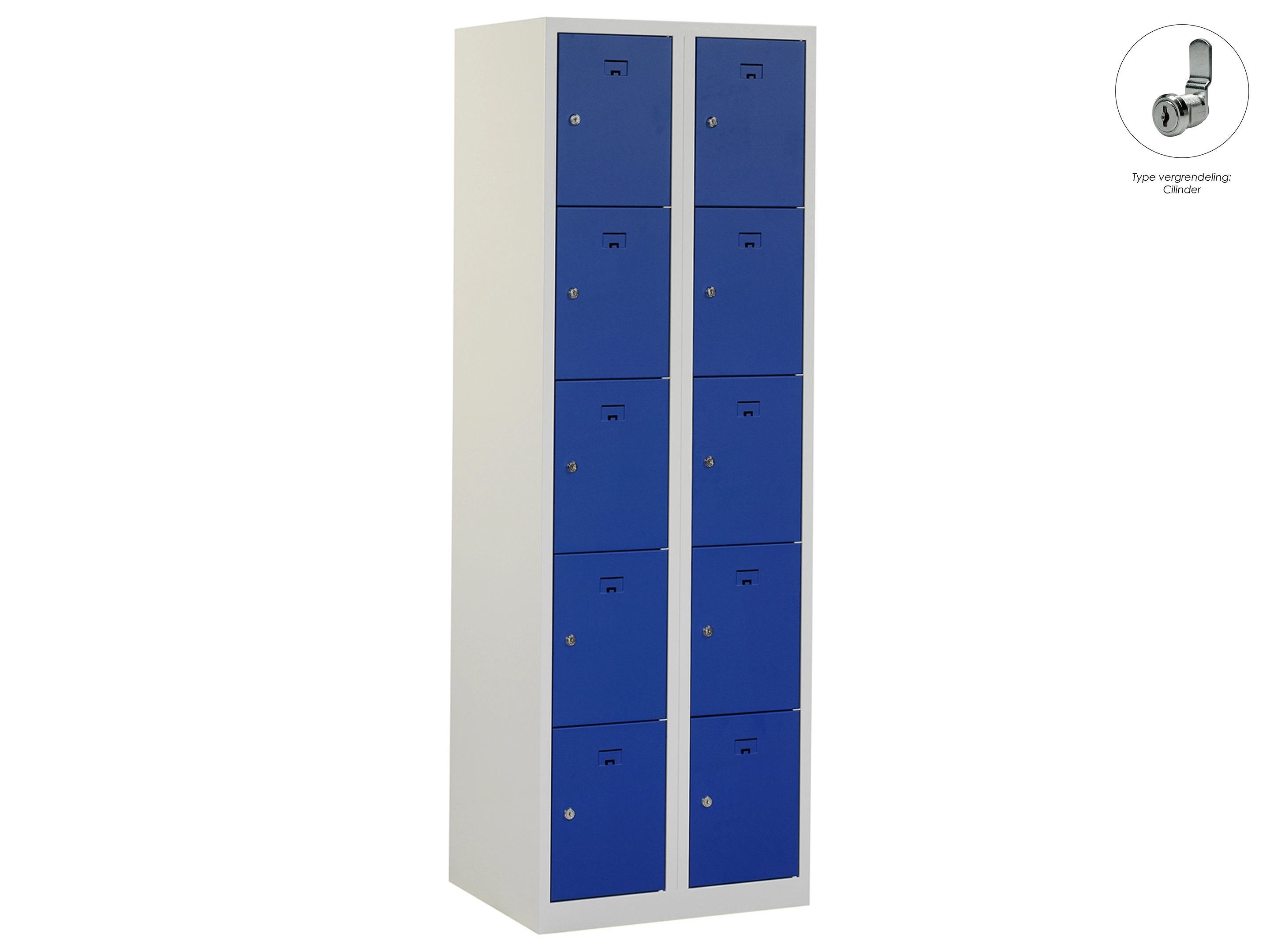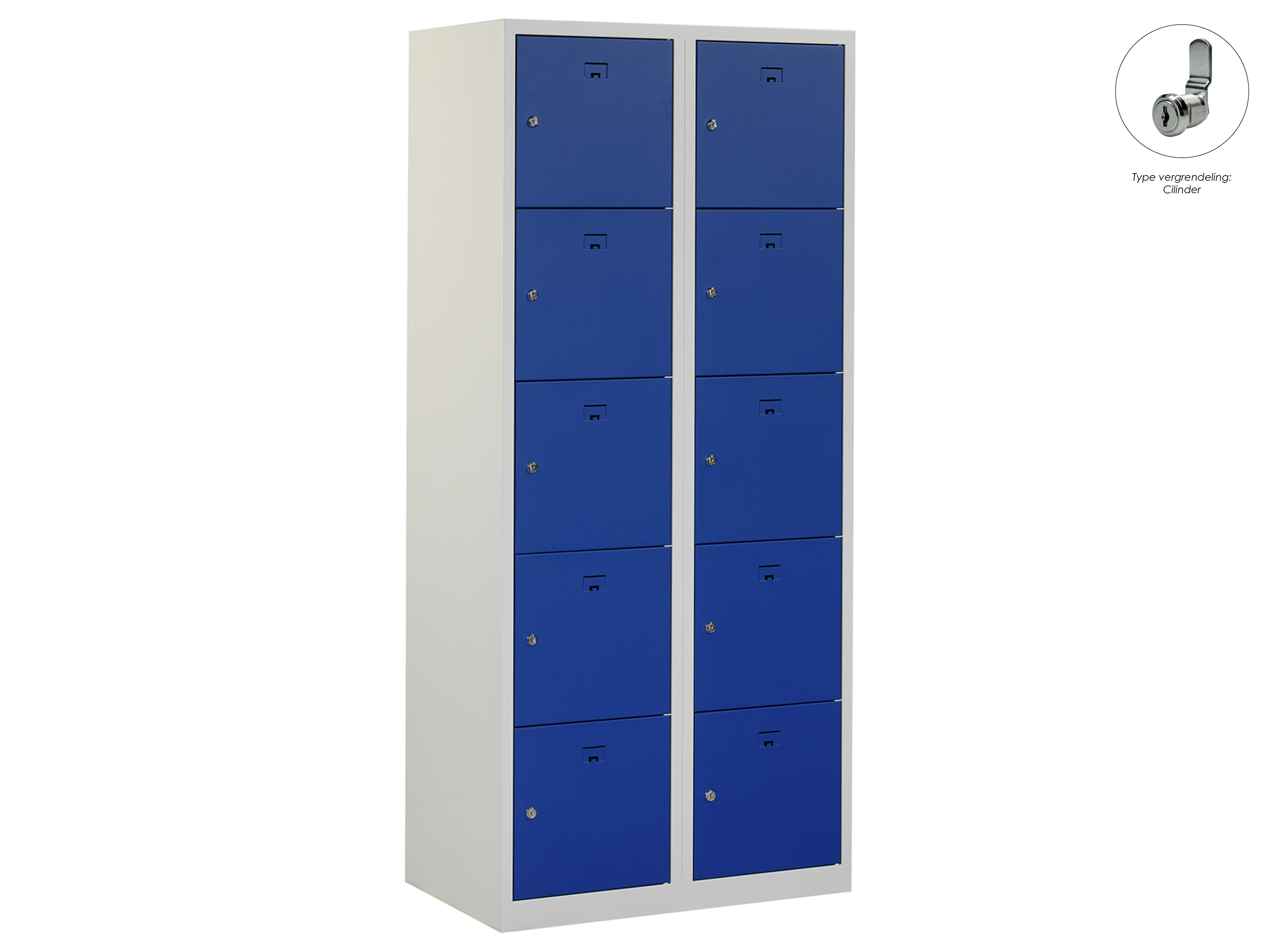Locker PH - 2 kolomen, 10 deuren, 180x60x50 cm, grijs/blauw, cilinder