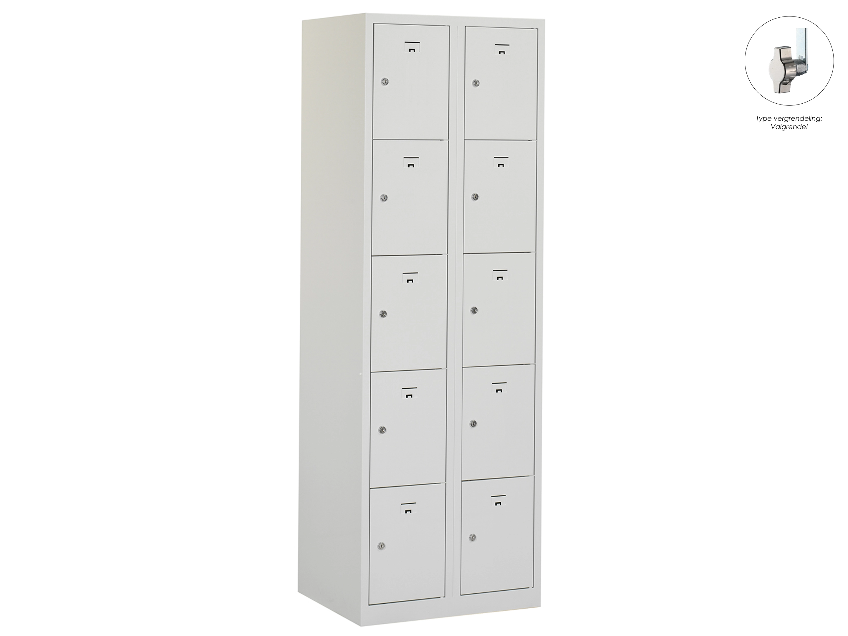 Locker PH - 2 kolomen, 10 deuren, 180x60x50 cm, grijs/grijs, valgrendel