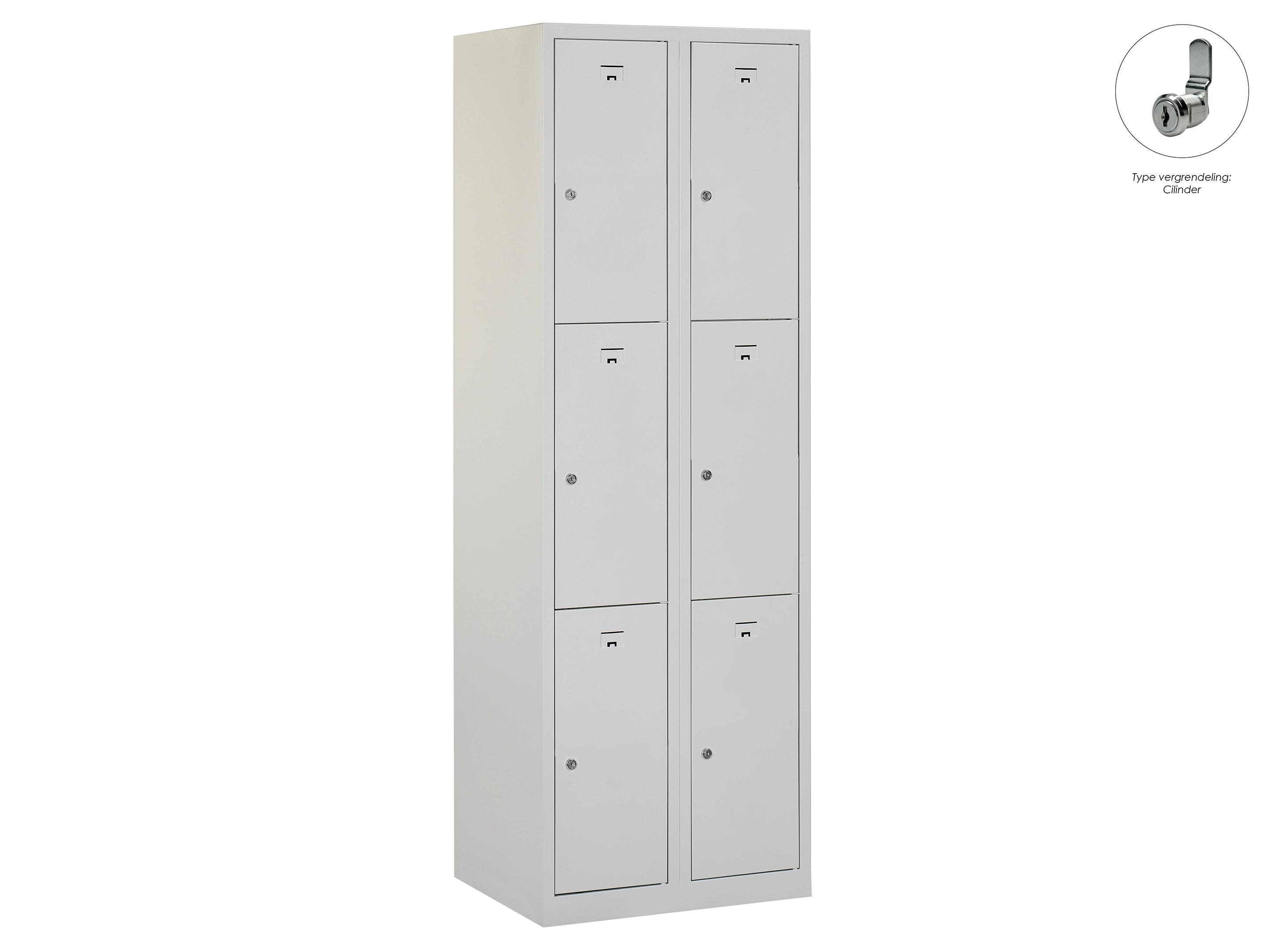 Locker PH - 2 kolomen, 6 deuren, 180x60x50 cm, grijs/grijs, cilinder