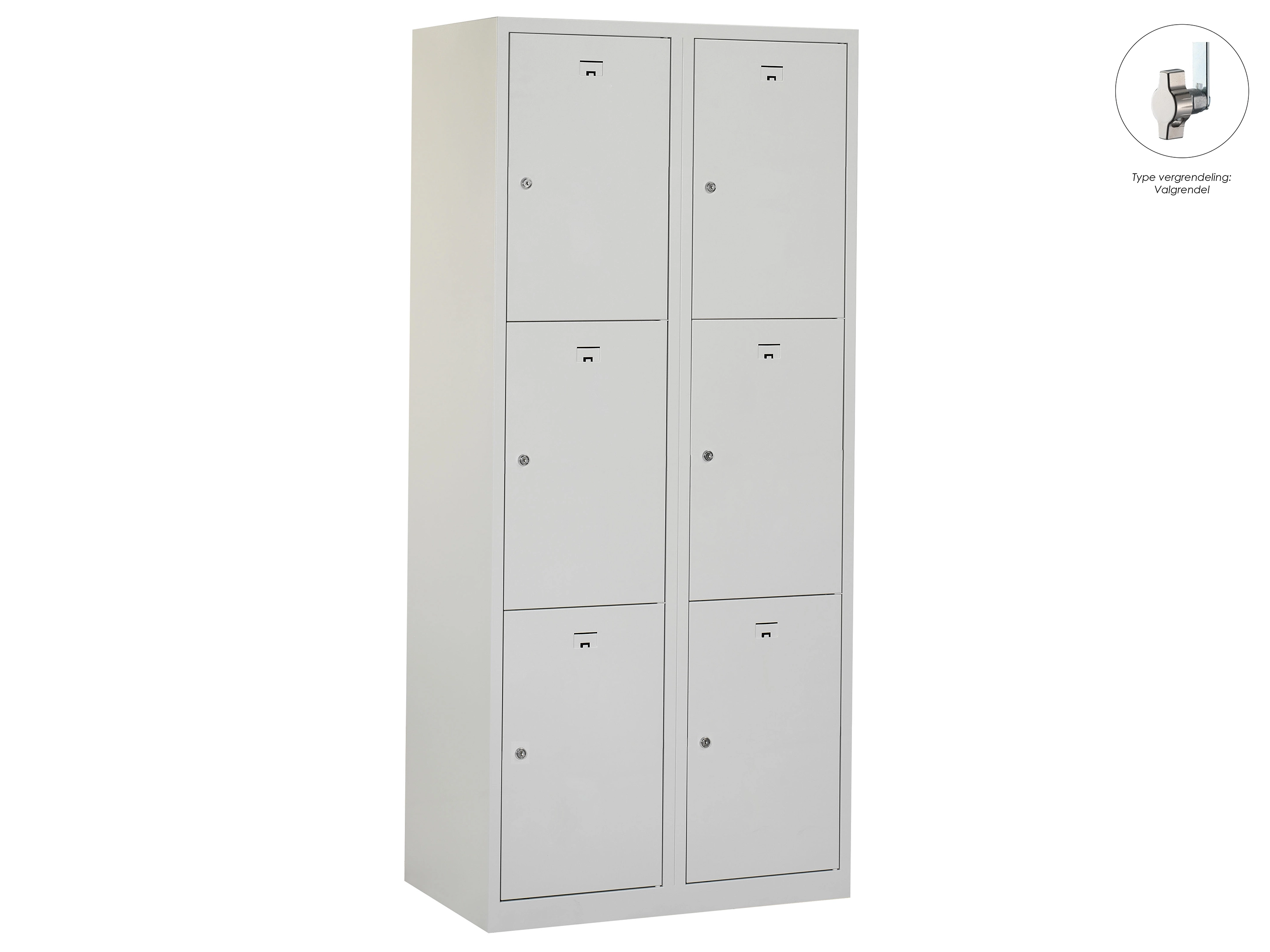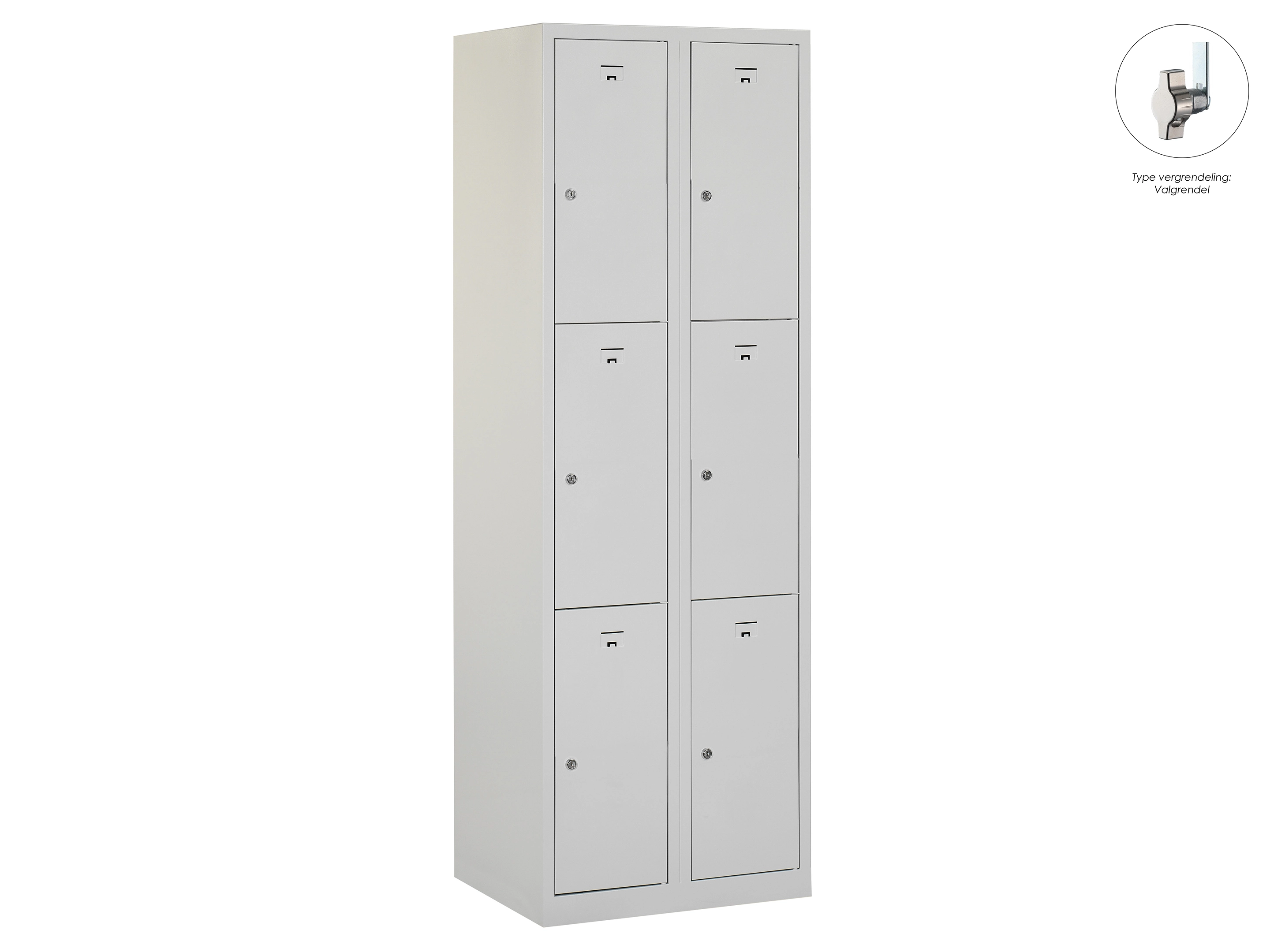 Locker PH - 2 kolomen, 6 deuren, 180x60x50 cm, grijs/grijs, valgrendel