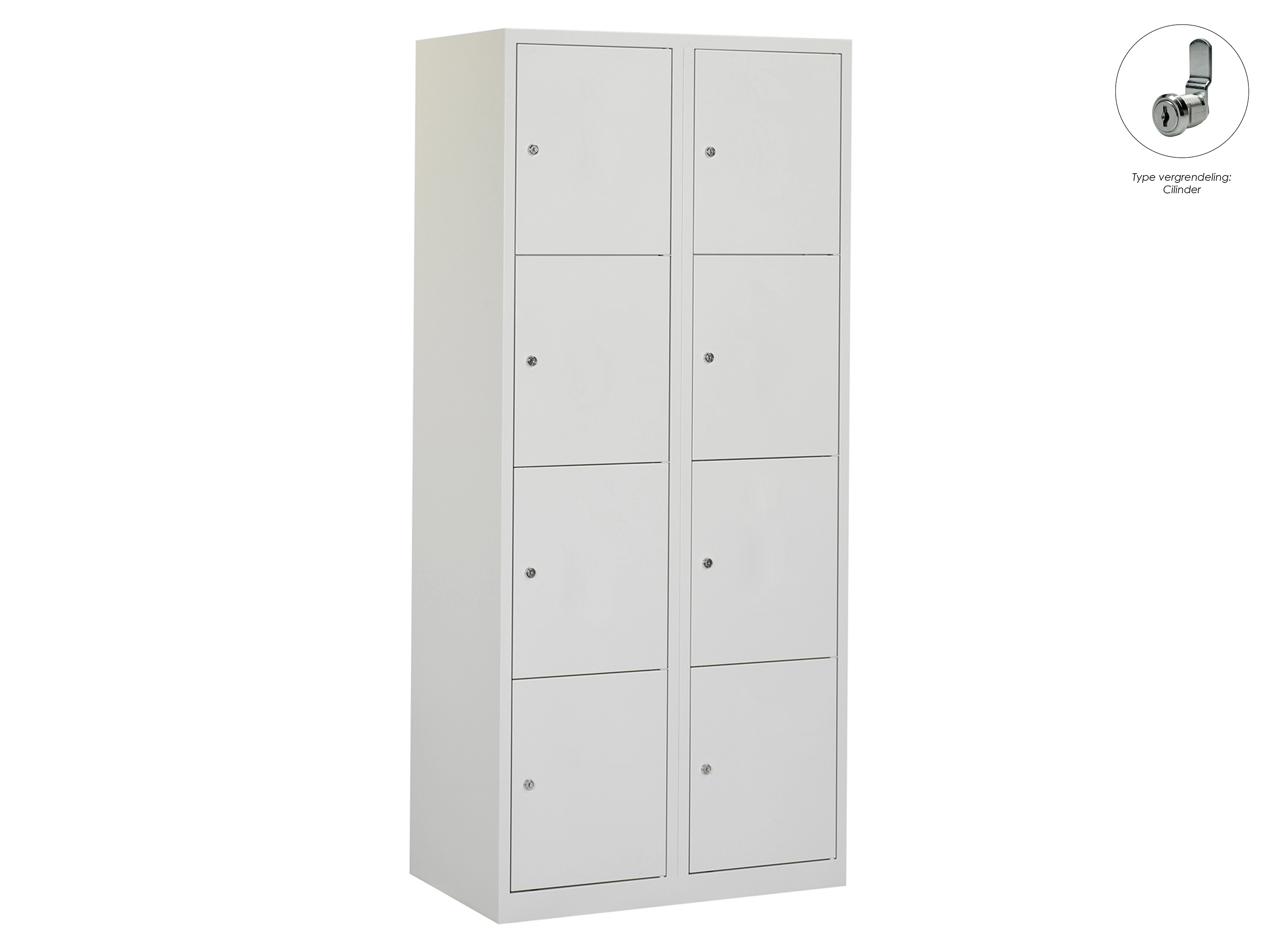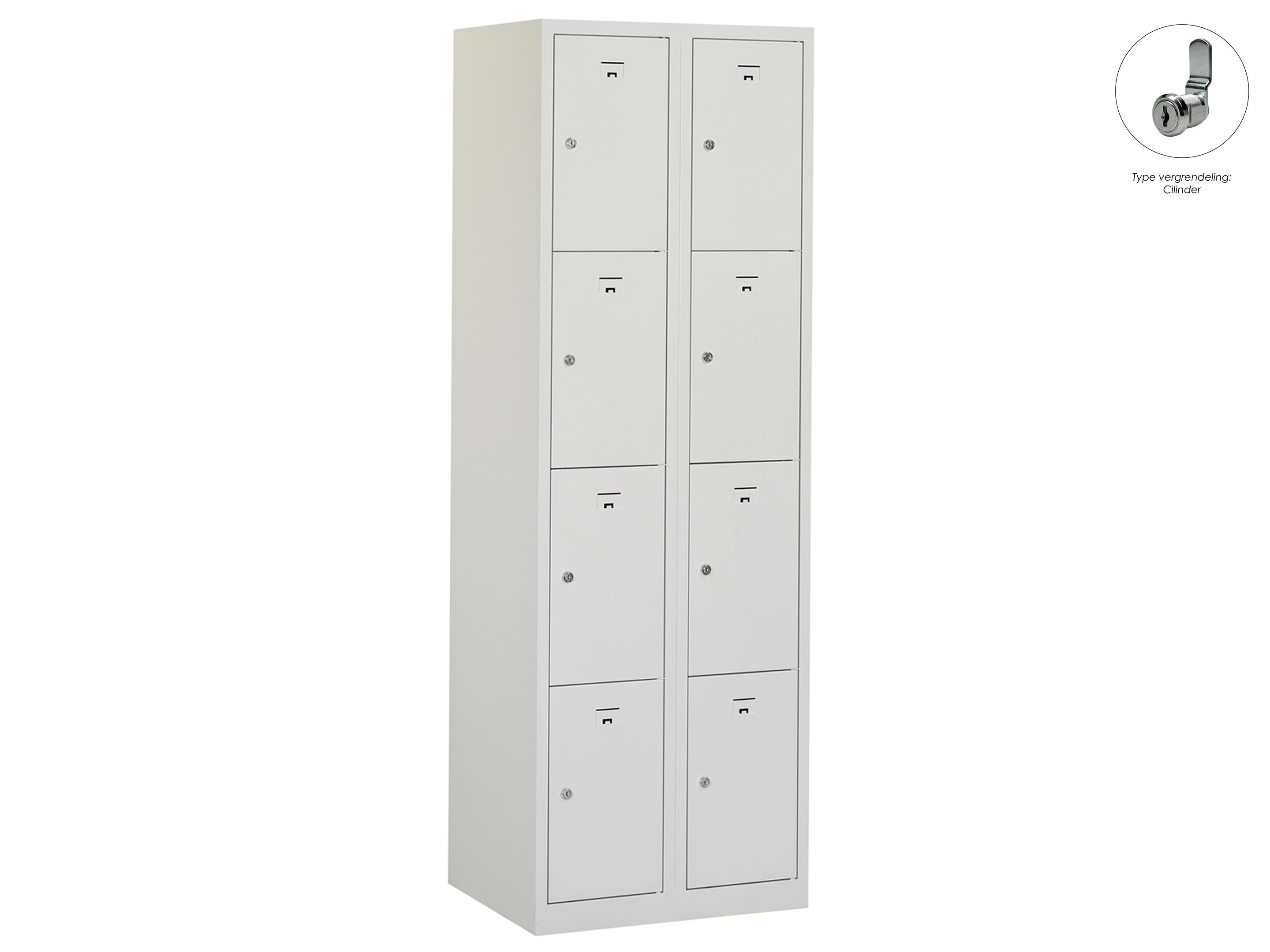 Locker PH - 2 kolomen, 8 deuren, 180x60x50 cm, grijs/grijs, cilinder