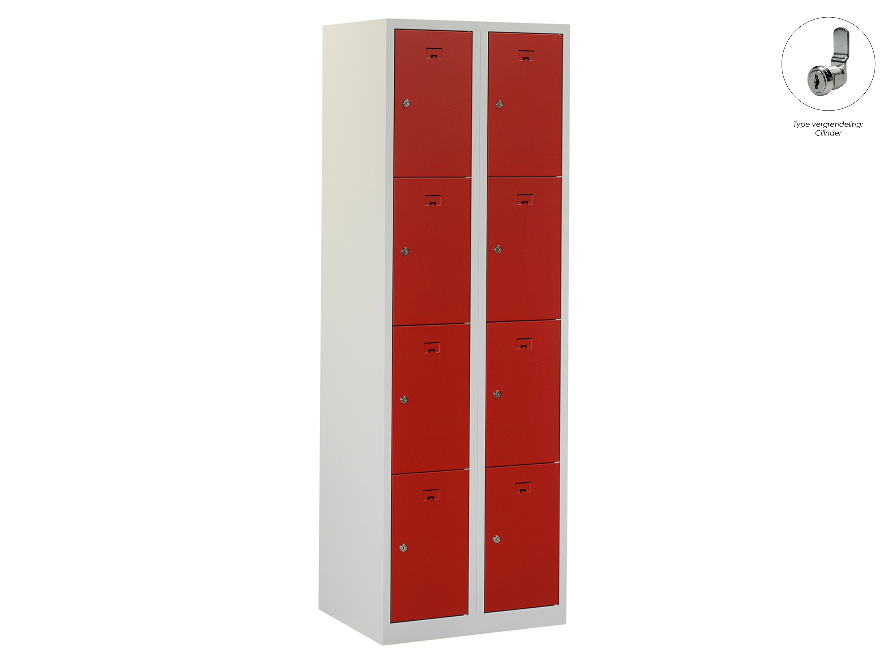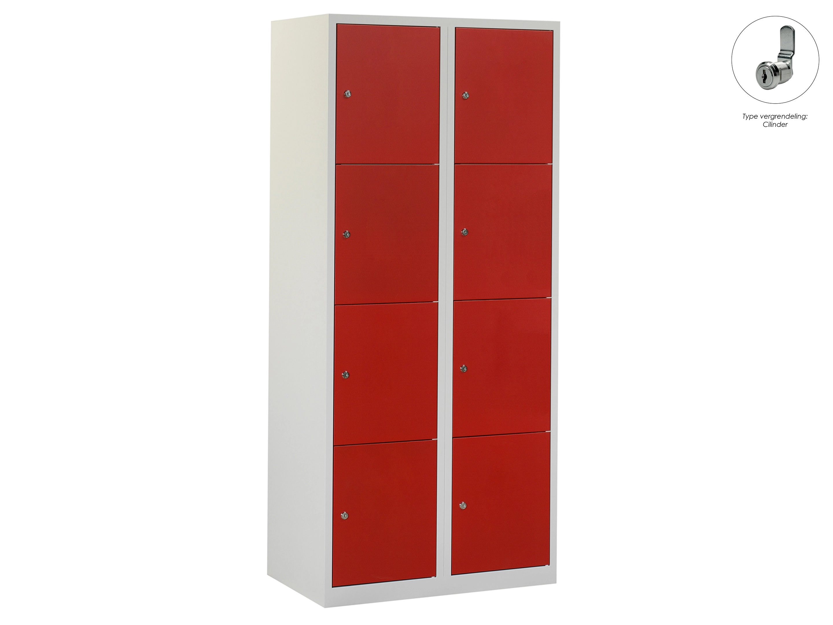 Locker PH - 2 kolomen, 8 deuren, 180x80x50 cm, grijs/rood, cilinder