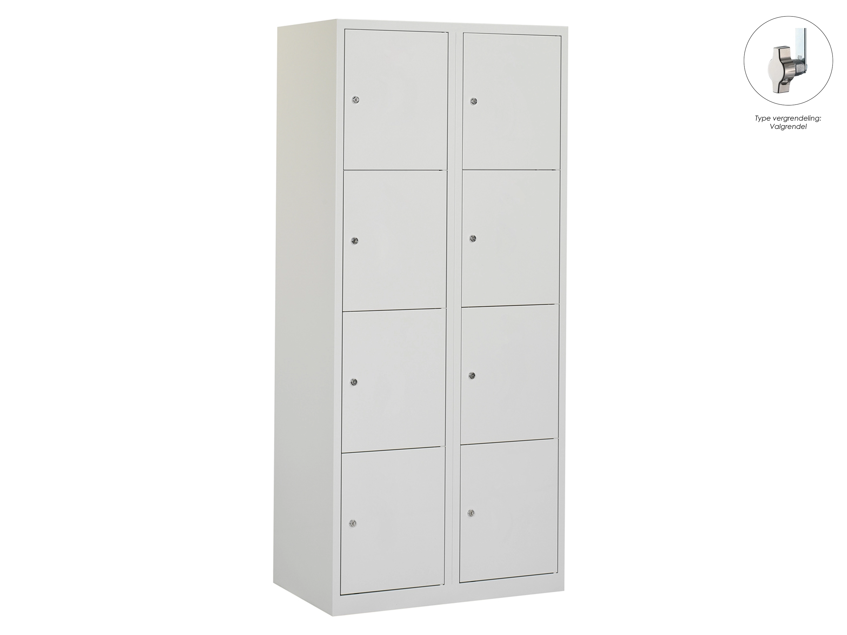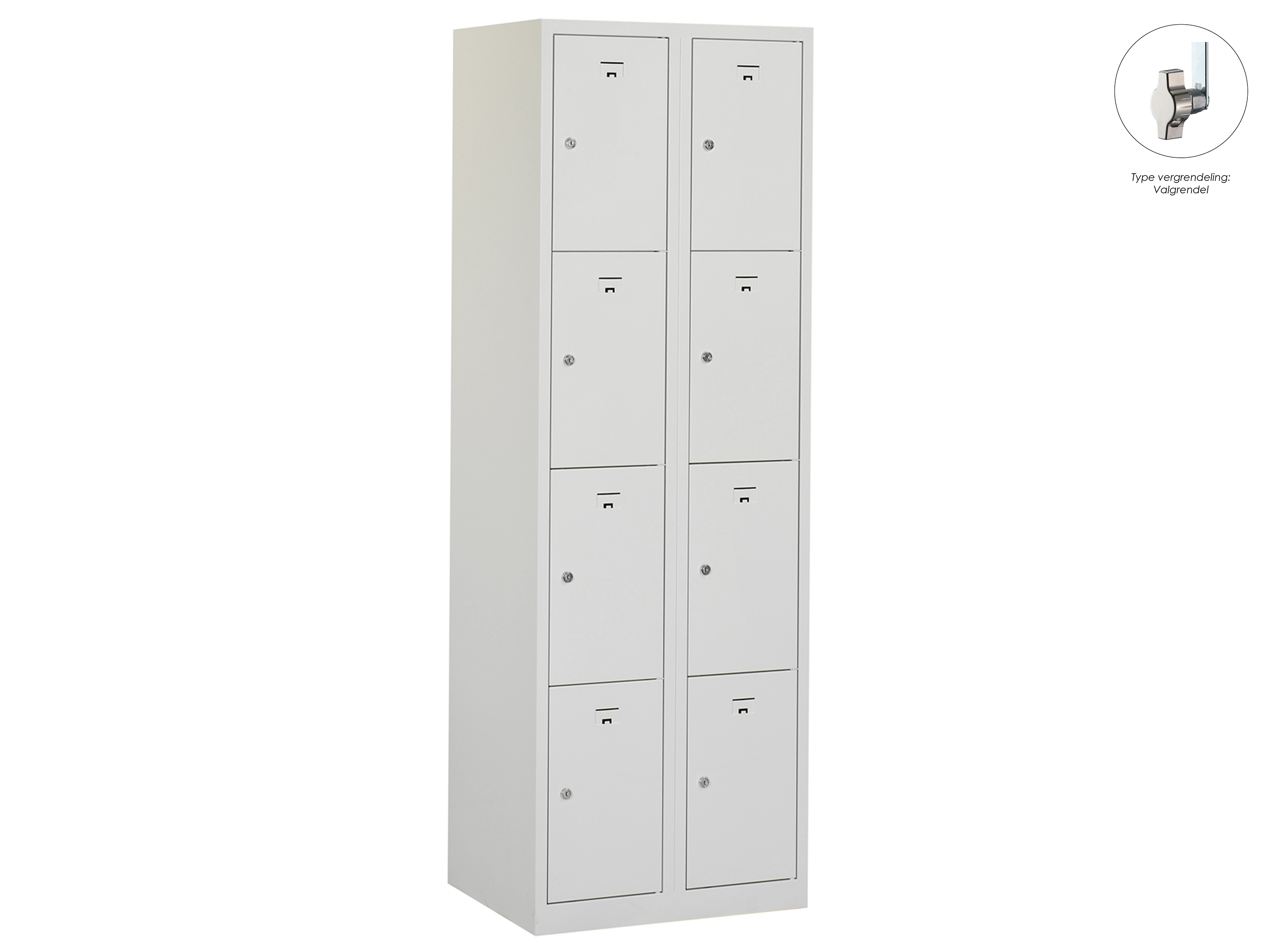 Locker PH - 2 kolomen, 8 deuren, 180x80x50 cm, grijs/grijs, valgrendel