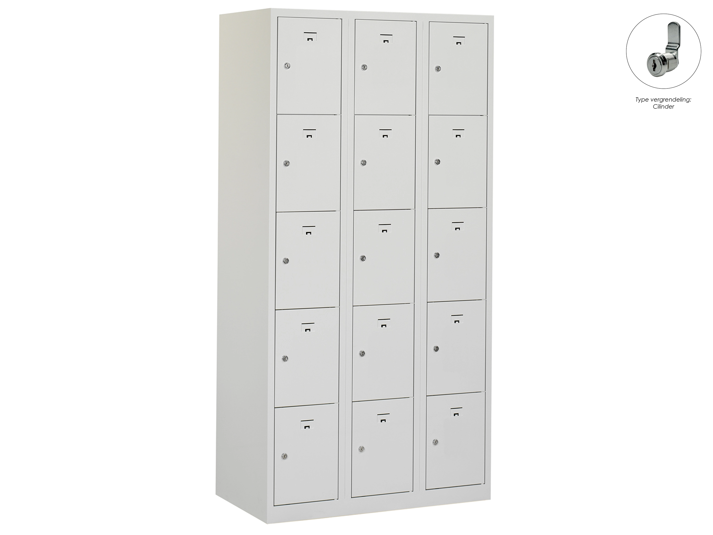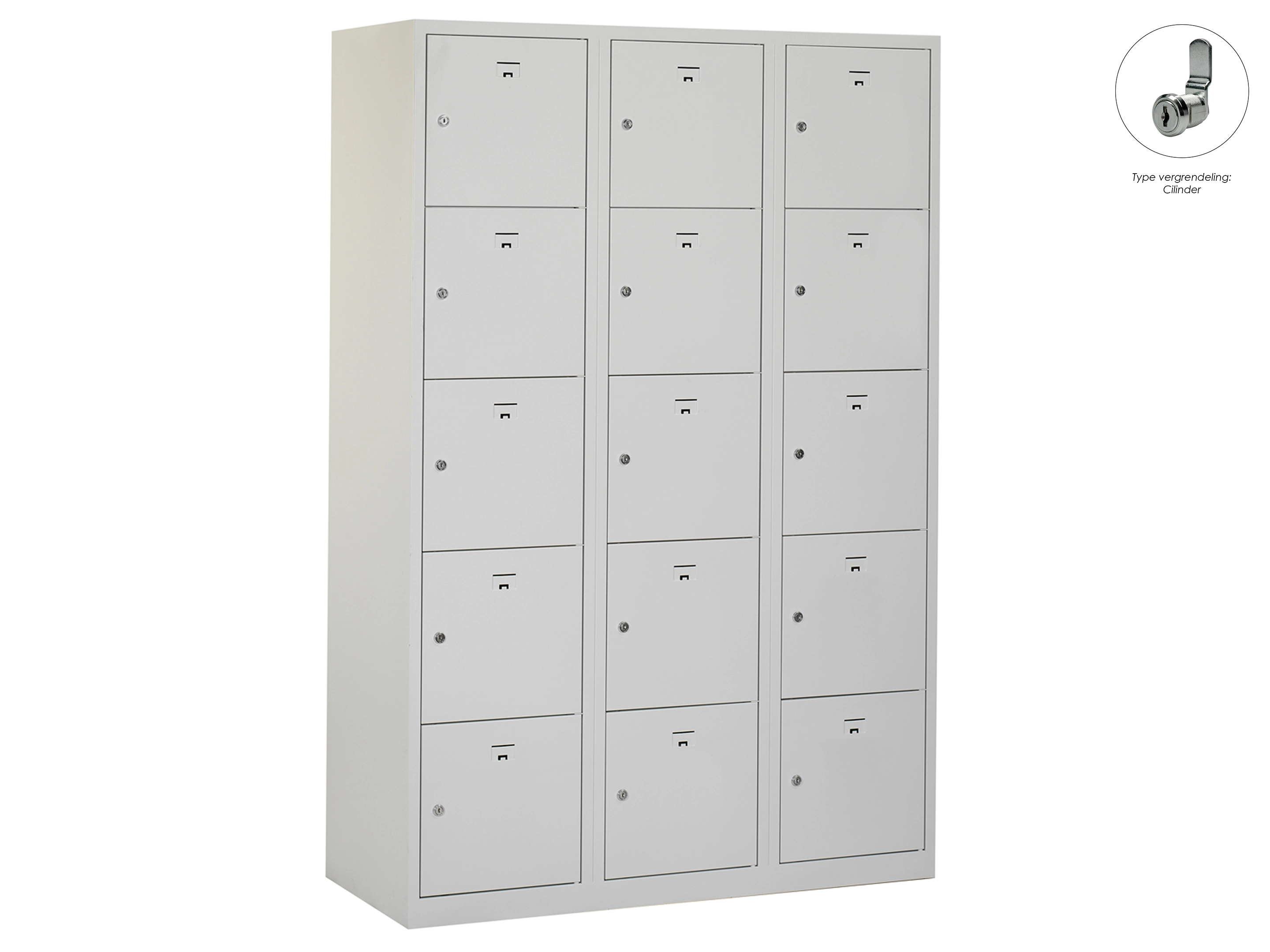 Locker PH - 3 kolomen, 15 deuren, 180x120x50 cm, grijs/grijs, cilinder