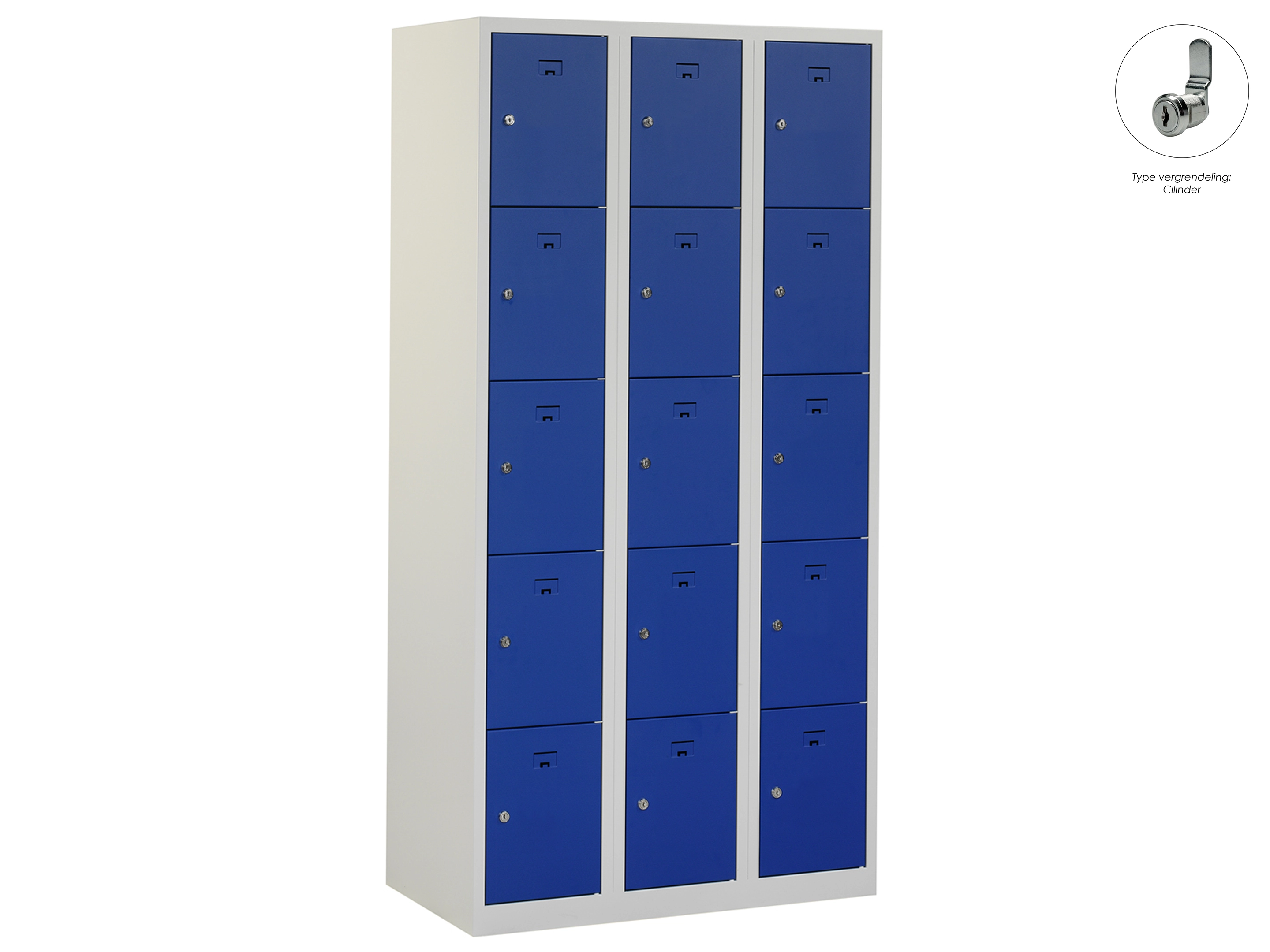 Locker PH - 3 kolomen, 15 deuren, 180x120x50 cm, grijs/blauw, cilinder