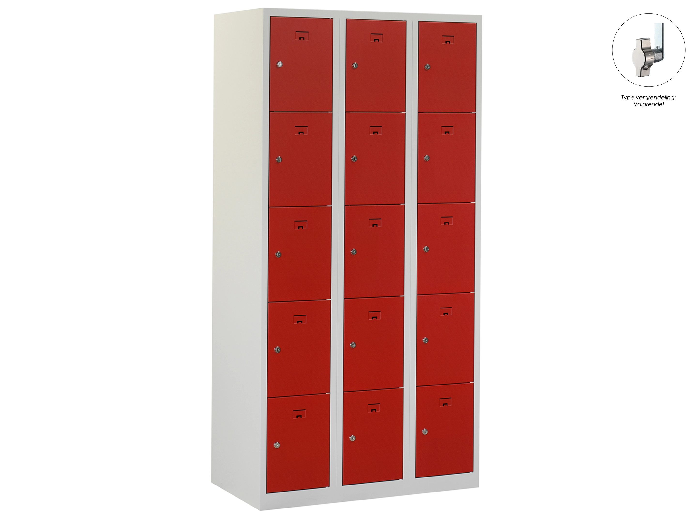 Locker PH - 3 kolomen, 15 deuren, 180x120x50 cm, grijs/rood, valgrendel