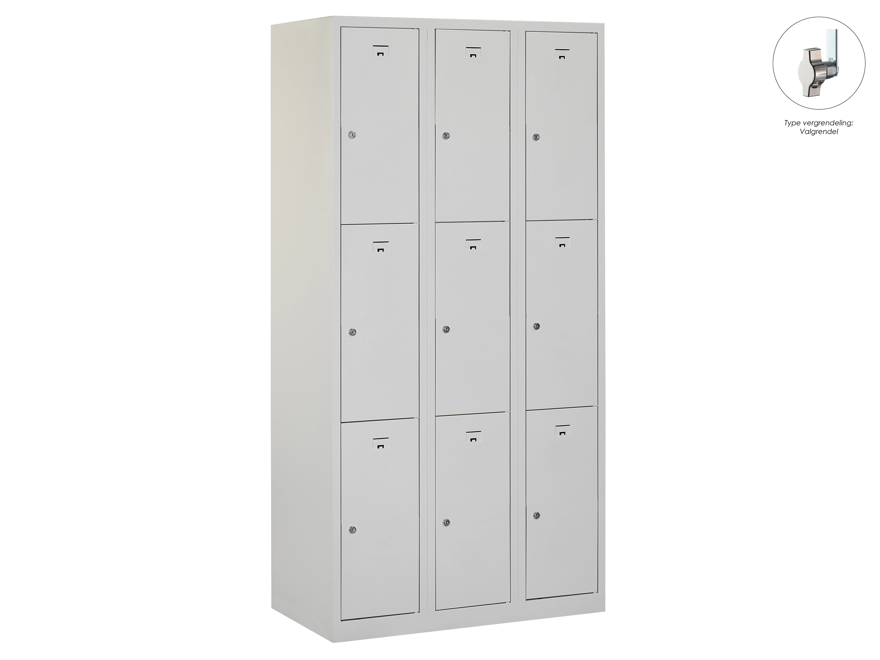 Locker PH - 3 kolomen, 9 deuren, 111,6x90x50 cm, grijs/grijs, valgrendel