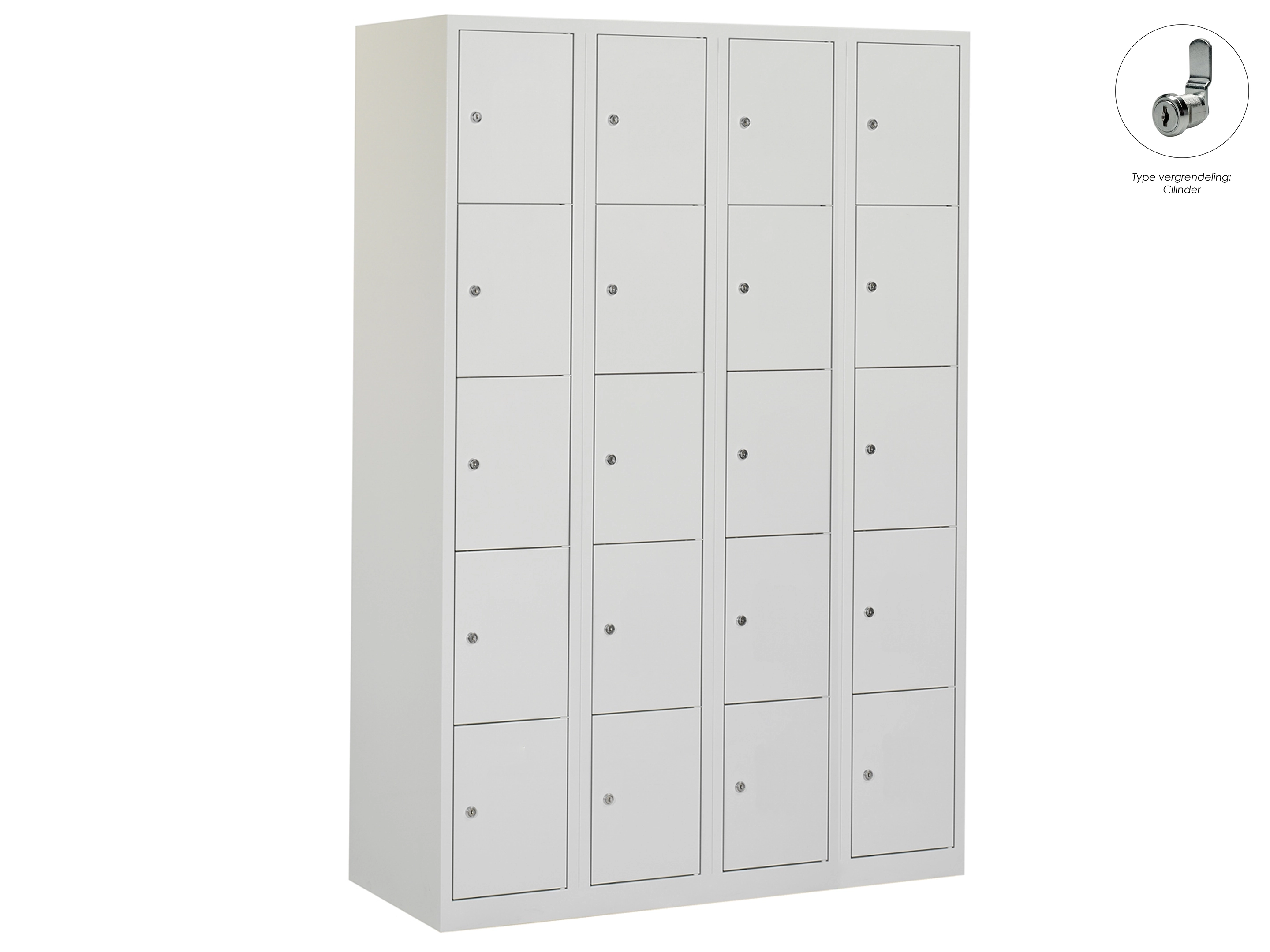 Type deuren: glad zonder naamkaarthouder, type slot: cilinderslot. Kleur romp: grijs (RAL7035), kleur deuren: grijs (RAL7035) . Afmeting: 180x120x50 cm (HxBxD). Netto doorsteek: 549x312x468mm. Aantal sleutels per slot: 2.