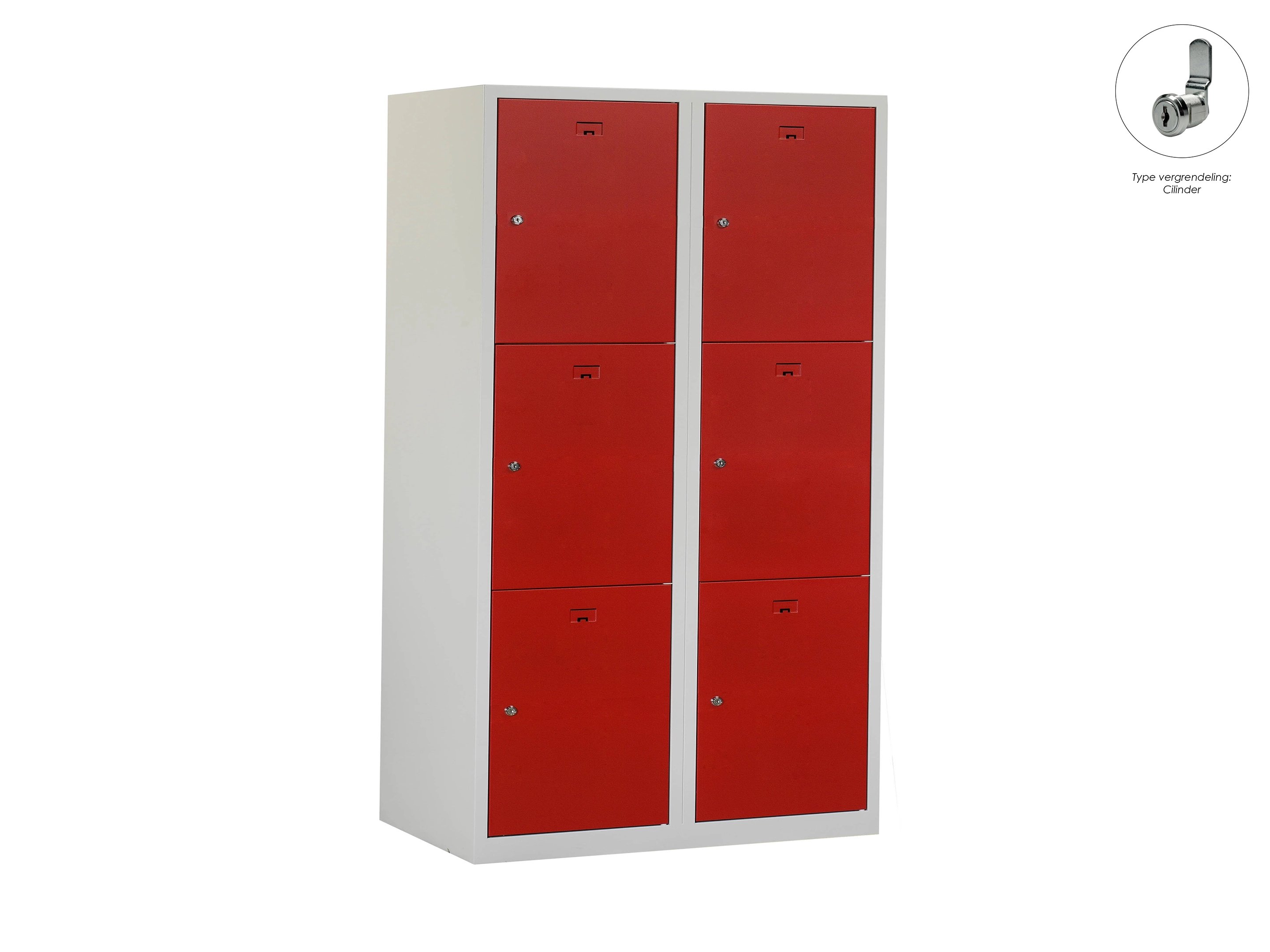 Locker PH - 2 kolomen, 6 deuren, 111,6x90x50 cm, grijs/rood, cilinder