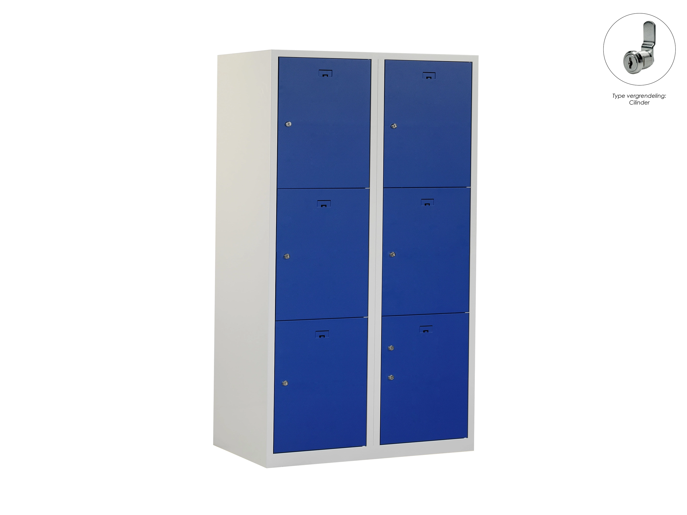 Locker PH - 2 kolomen, 6 deuren, 111,6x90x50 cm, grijs/blauw, cilinder