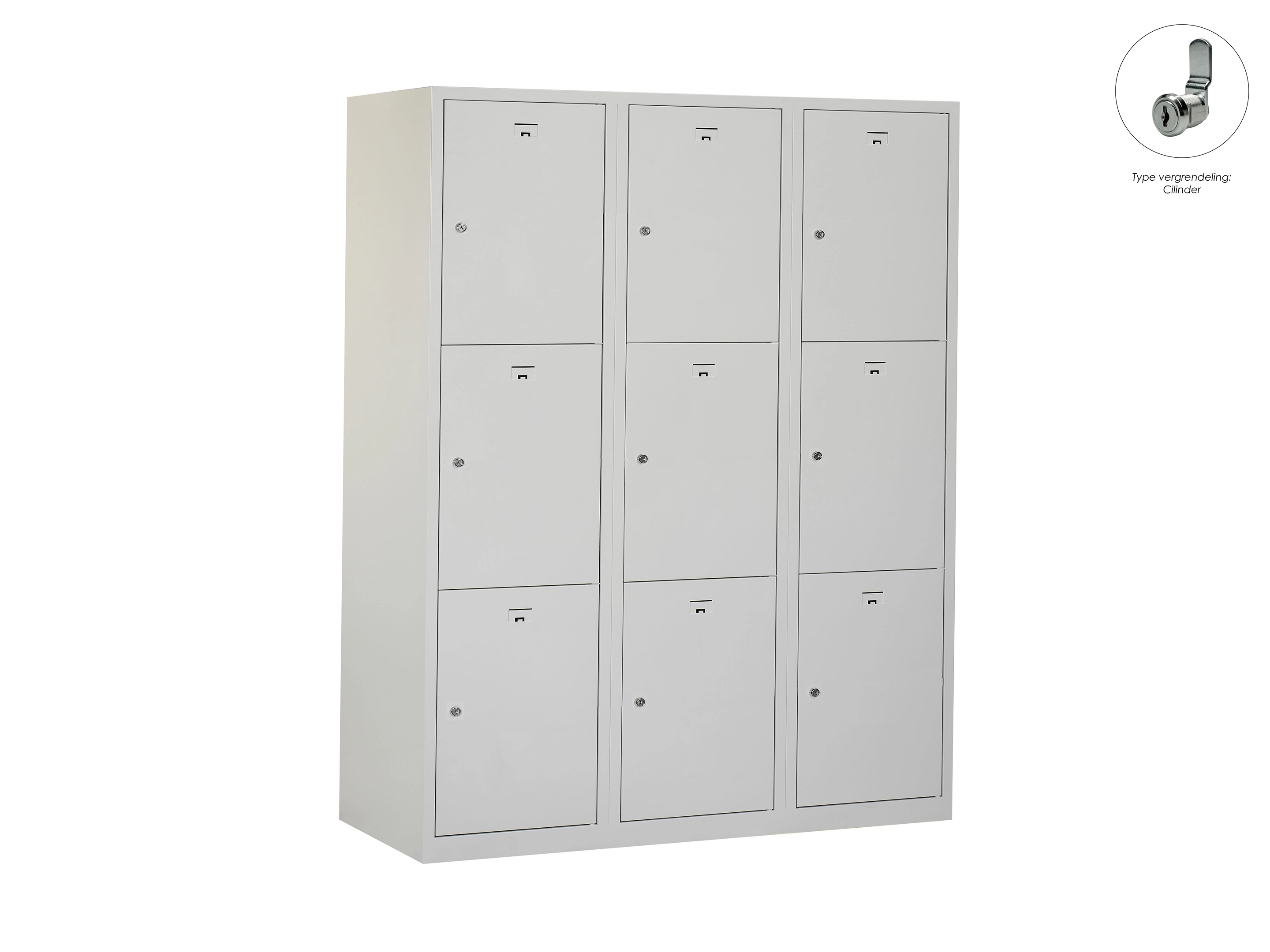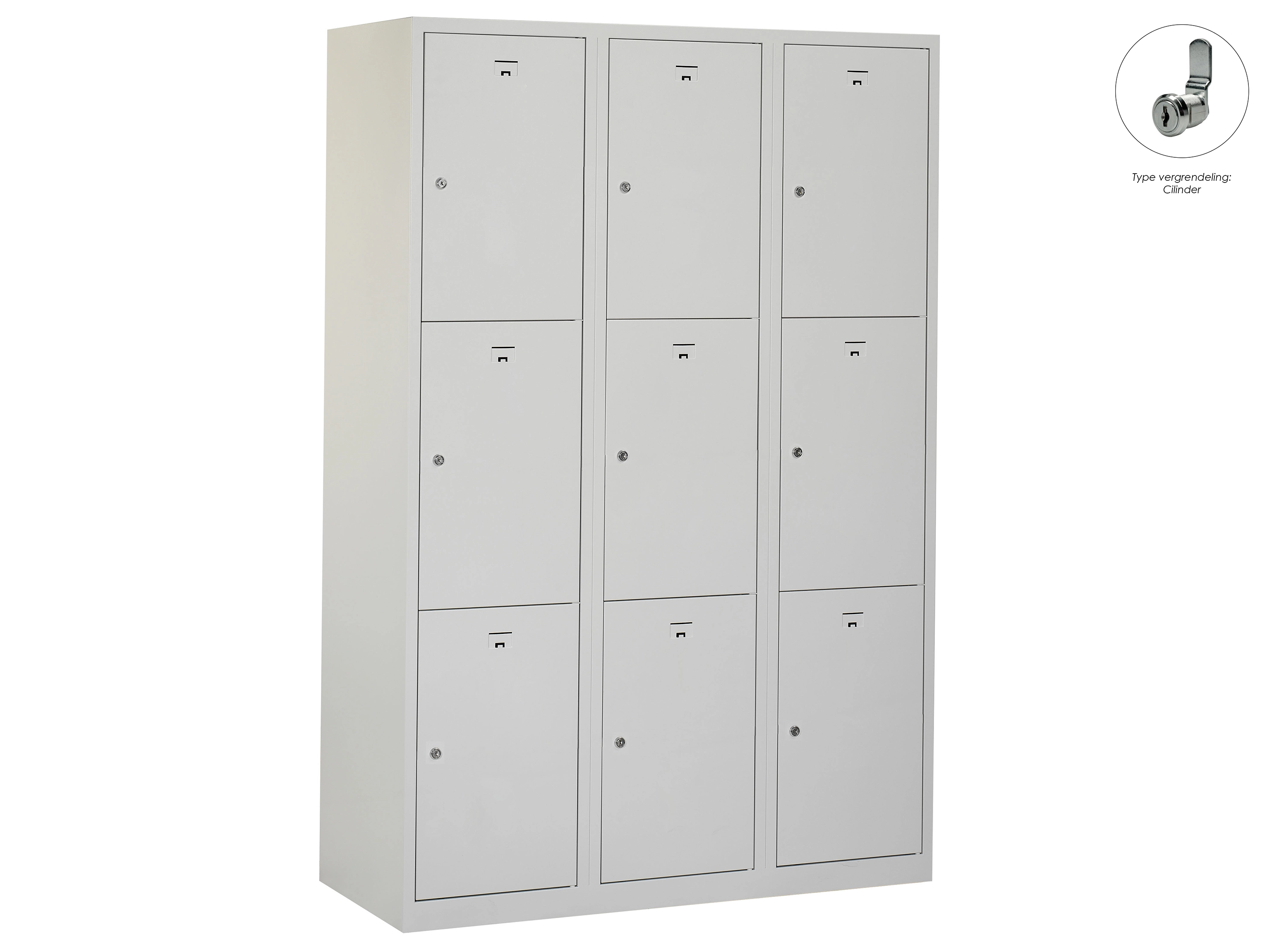 Locker PH - 3 kolomen, 9 deuren, 111,6x90x50 cm, grijs/grijs, cilinder
