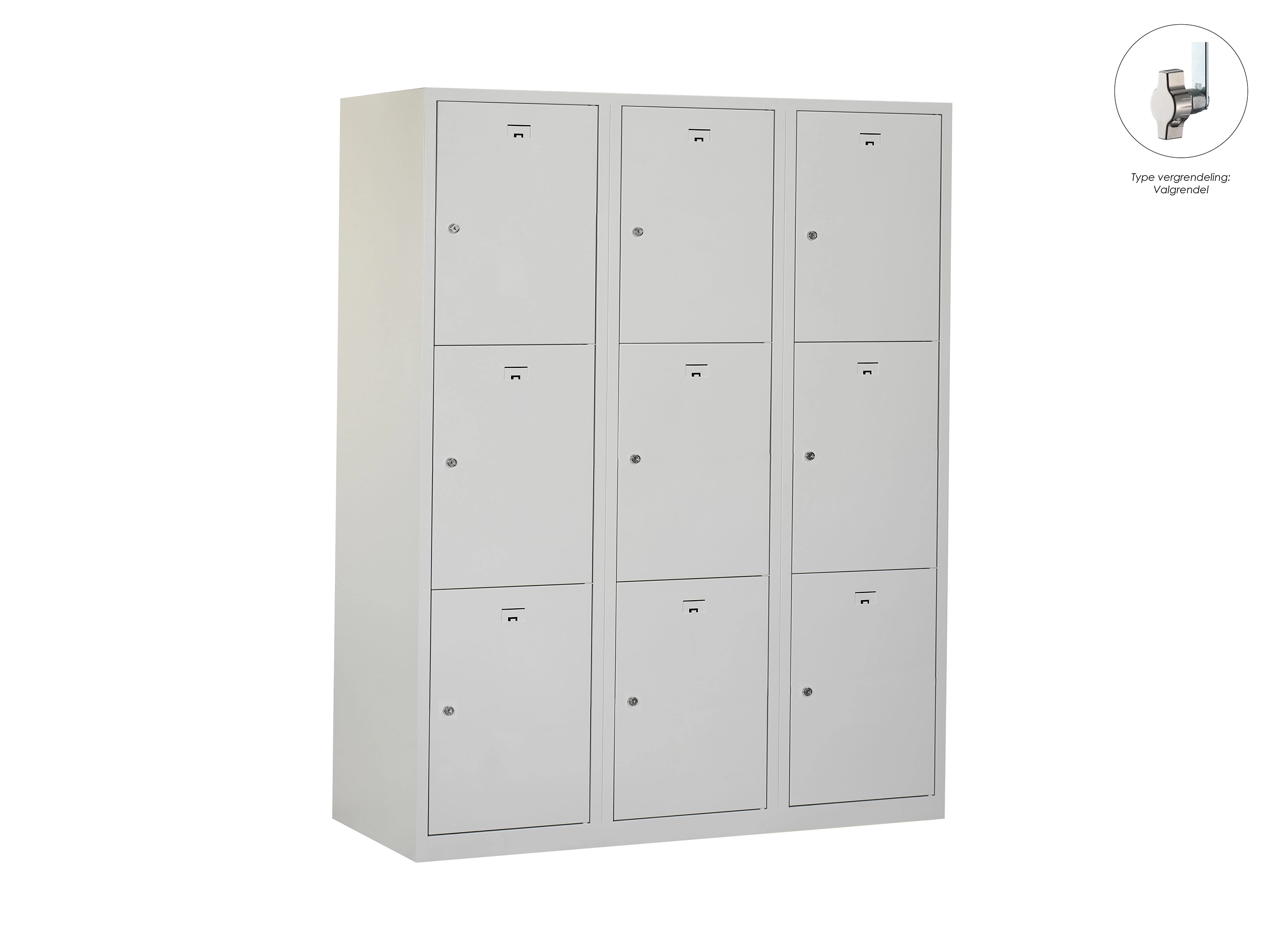 Locker PH - 3 kolomen, 9 deuren, 180x120x50 cm, grijs/grijs, valgrendel