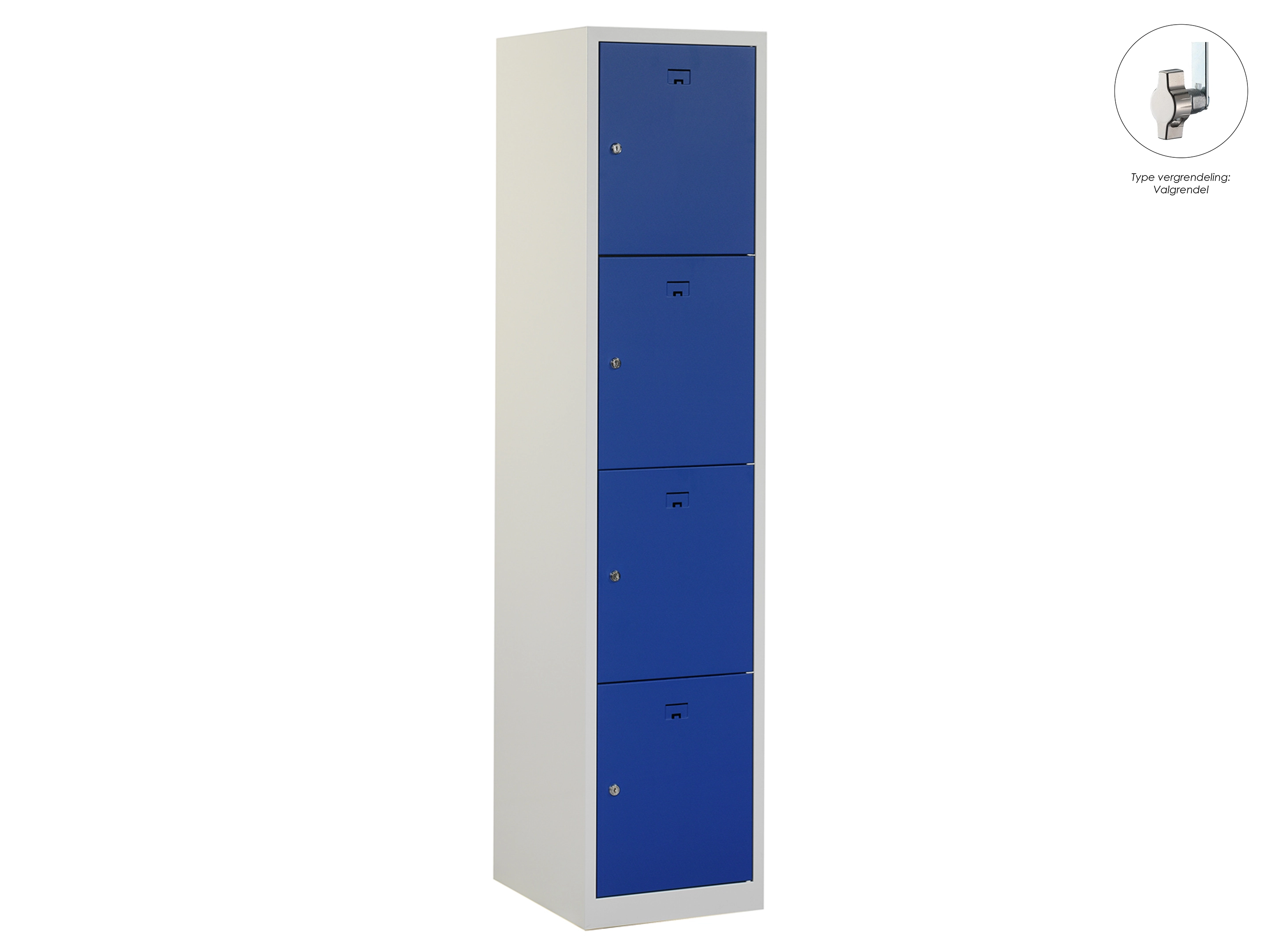 Locker PH - 1 kolom, 4 deuren, 180x40x50 cm, grijs/blauw, valgrendel