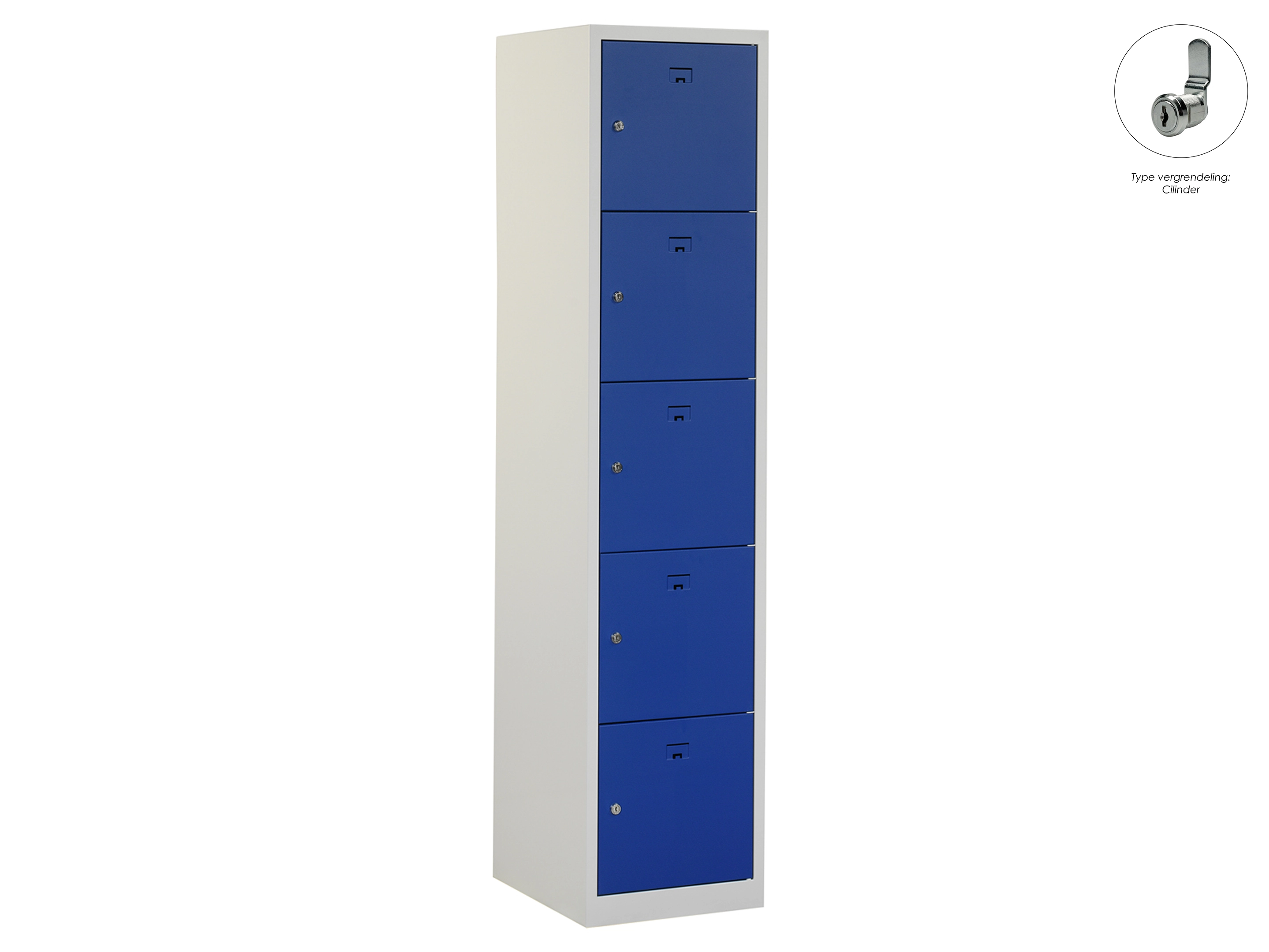 Locker PH - 1 kolom, 5 deuren, 180x40x50 cm, grijs/blauw, cilinder